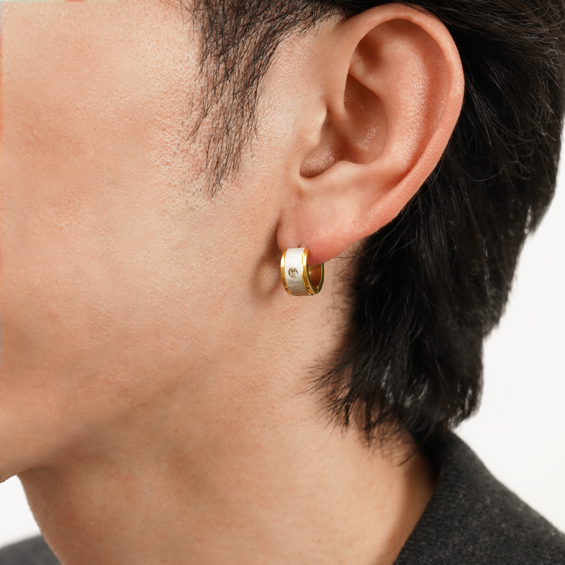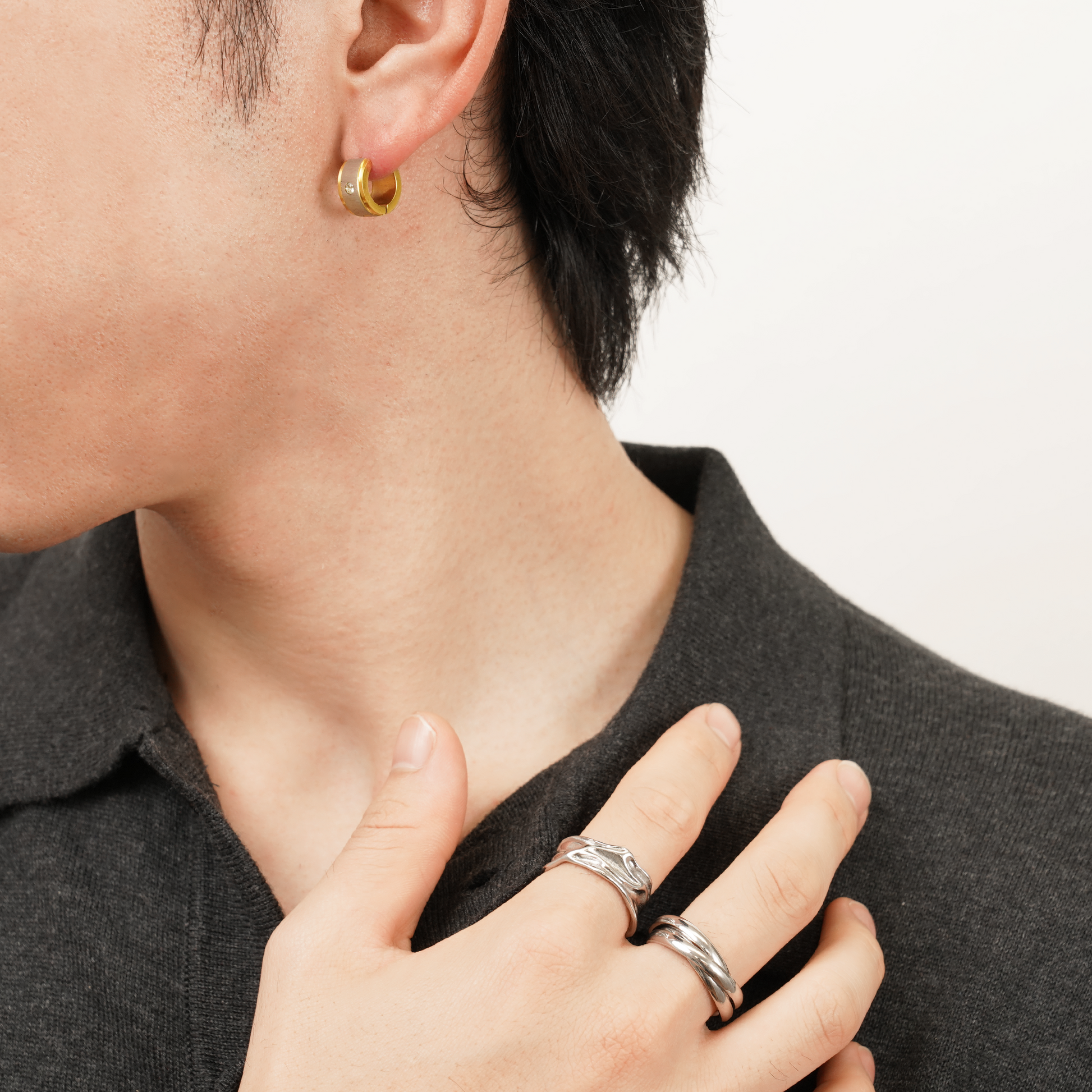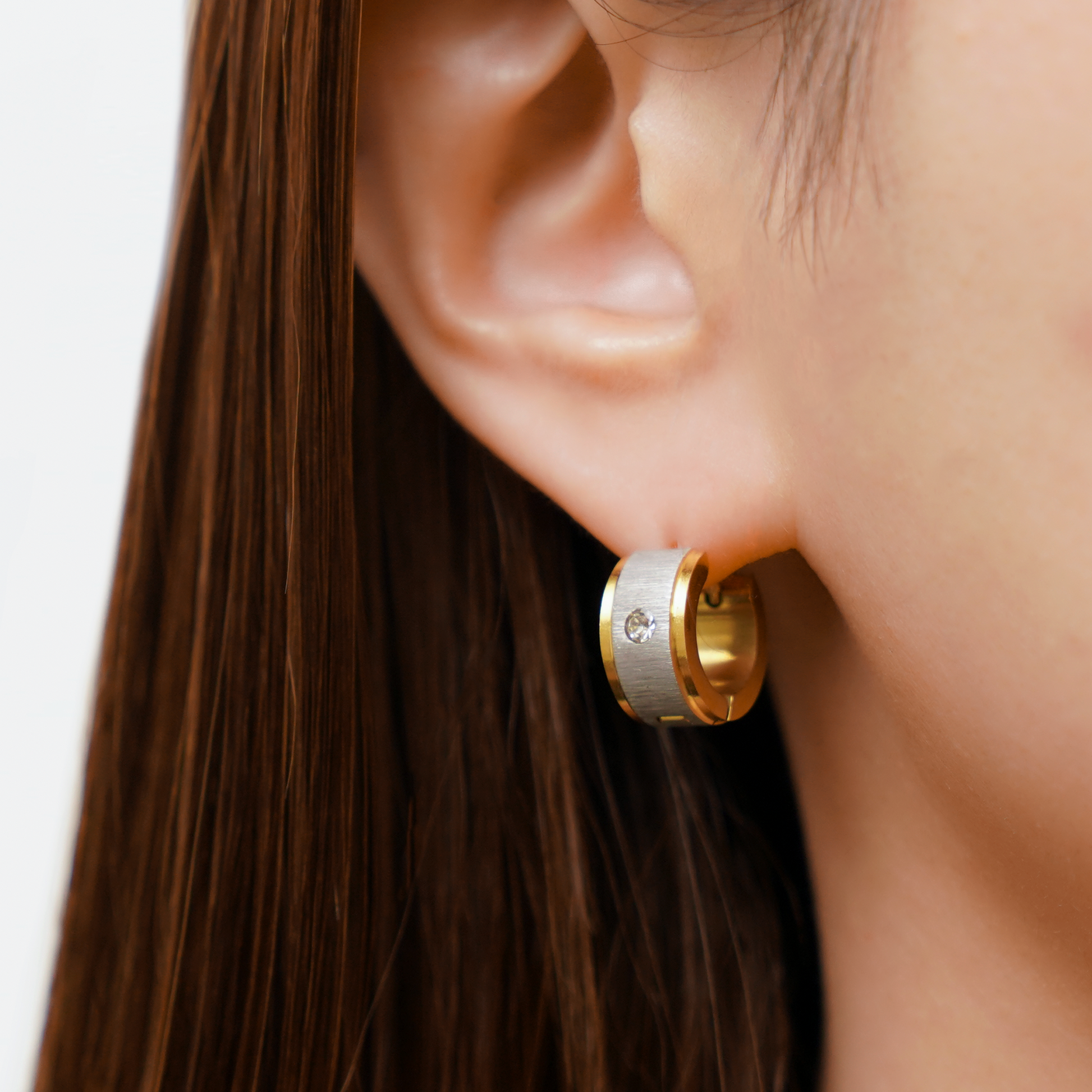 ワンポイントのジルコニアがキラリと輝くフープピアス。