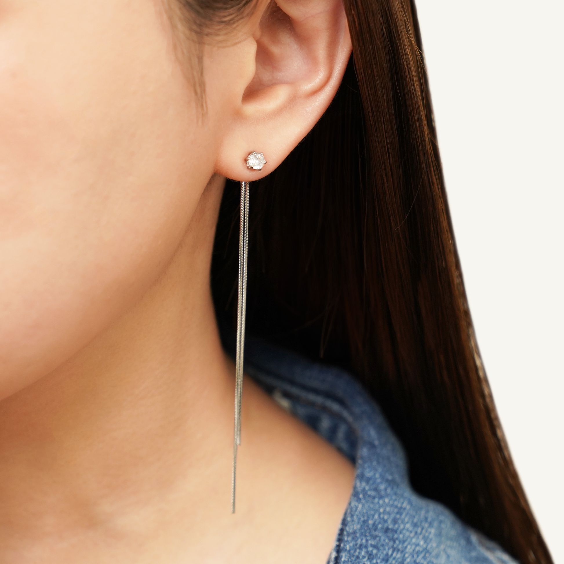 キラリと輝くジルコニアと繊細なチェーンが魅力的なピアス。