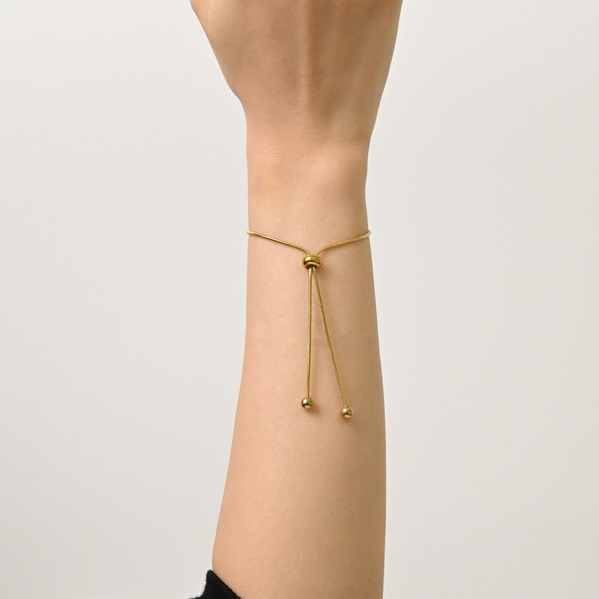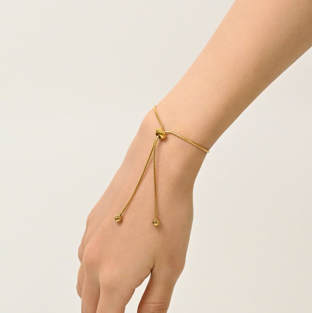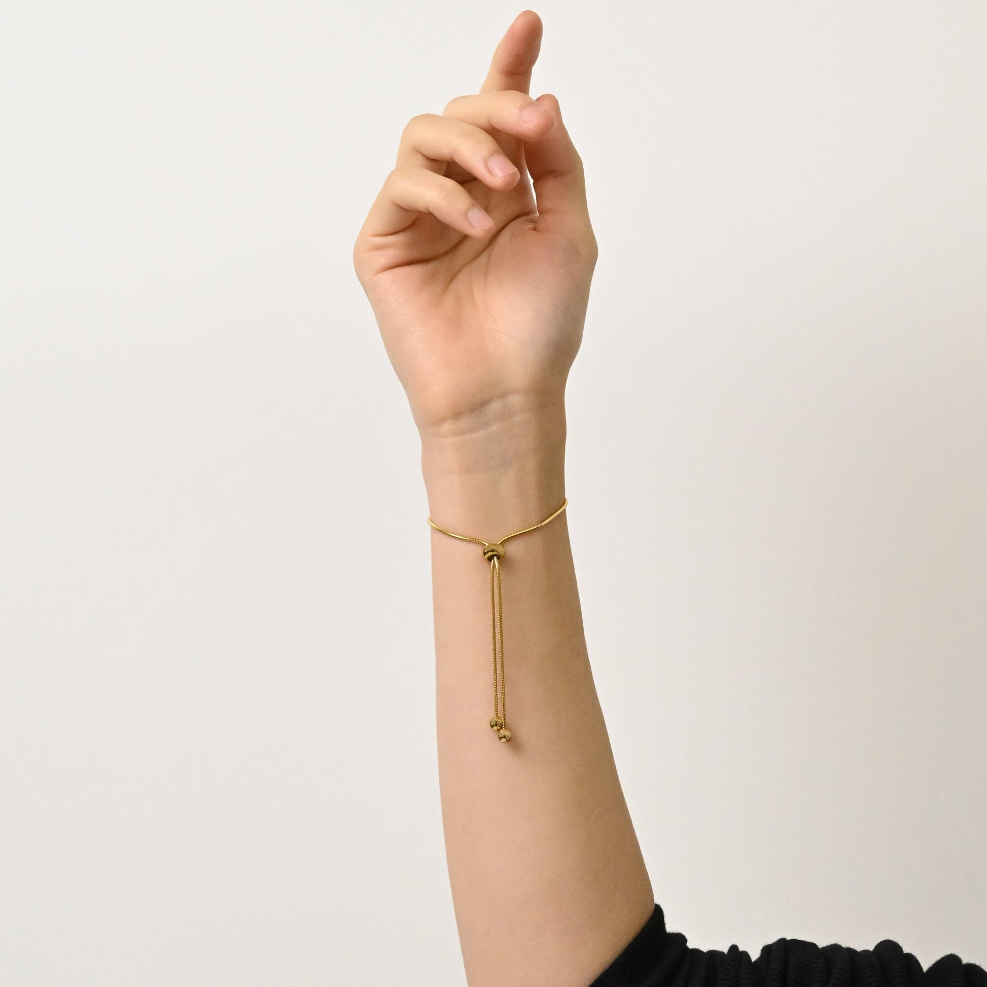 流れるようなラインが肌に馴染むドットチェーンブレスレット。