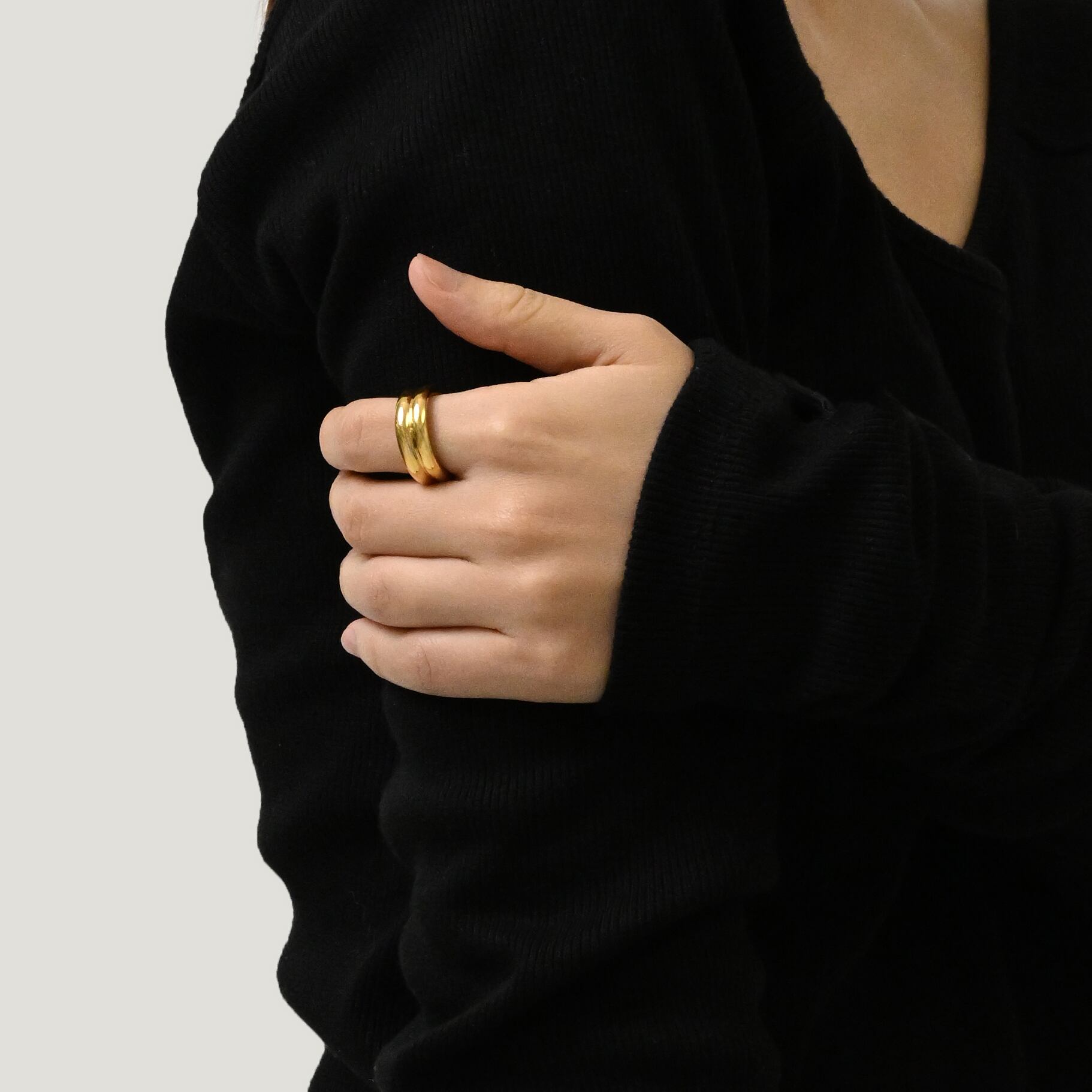 艶やかな光沢が存在感抜群のダブルビッグフープリング。