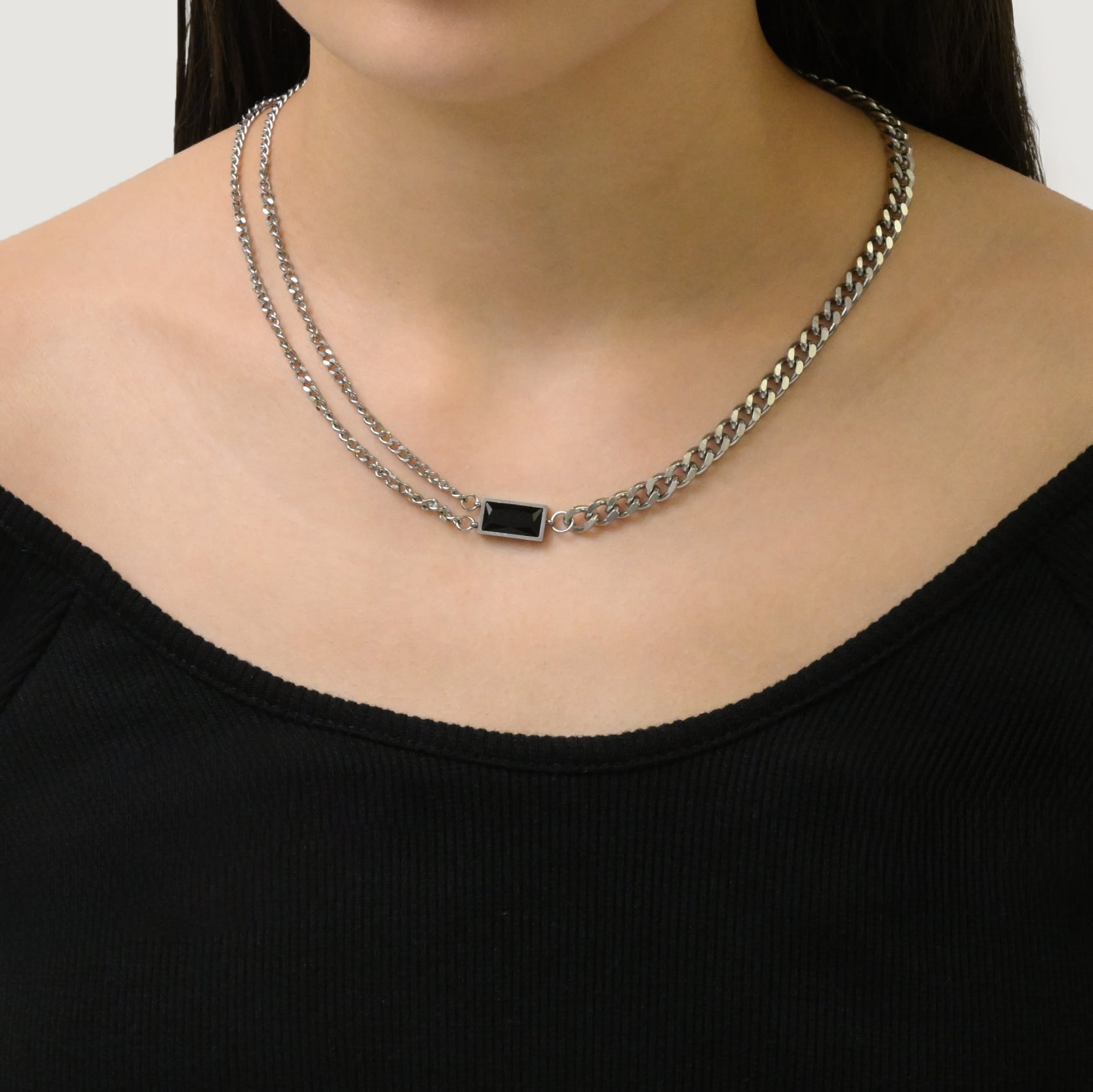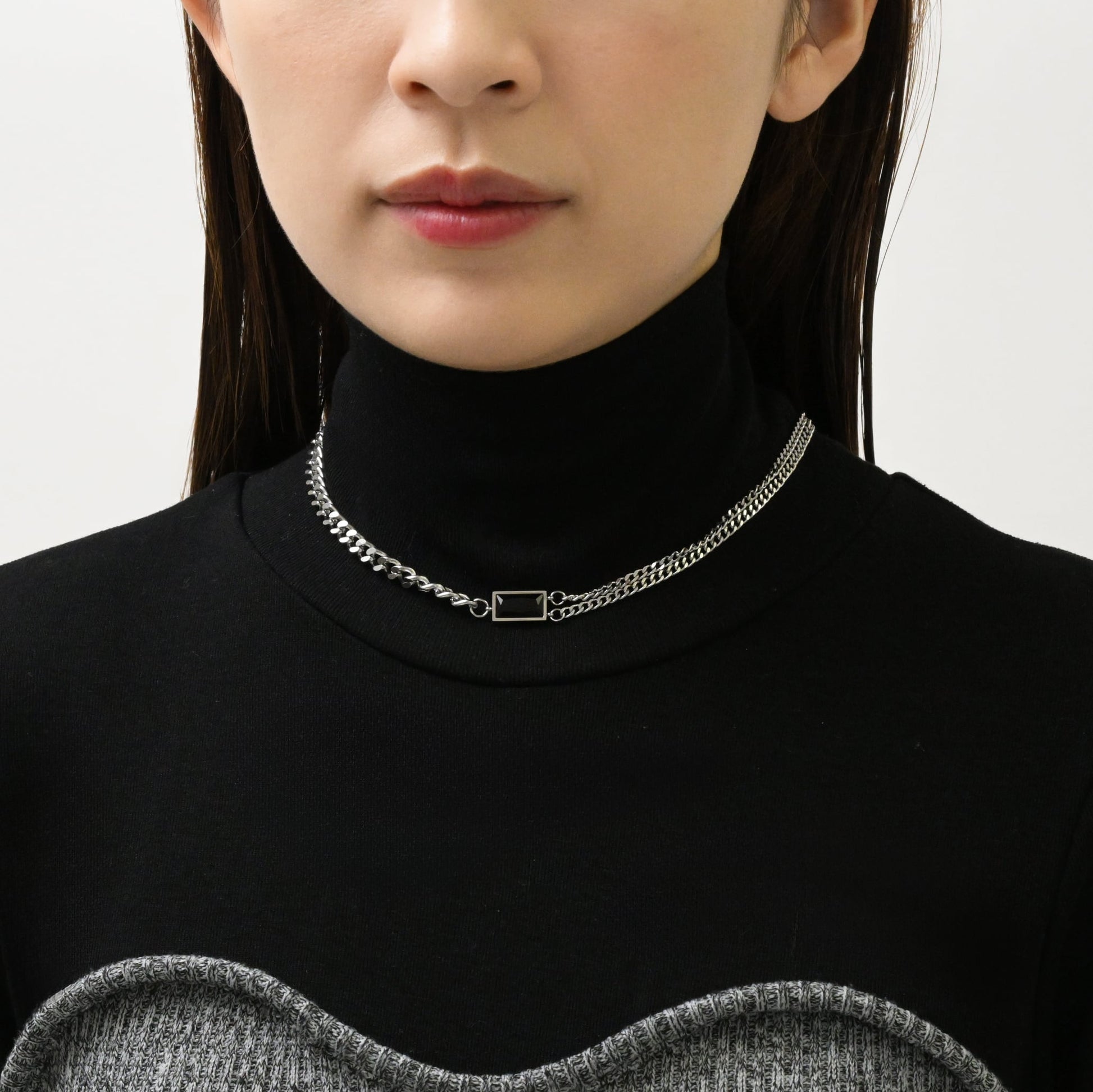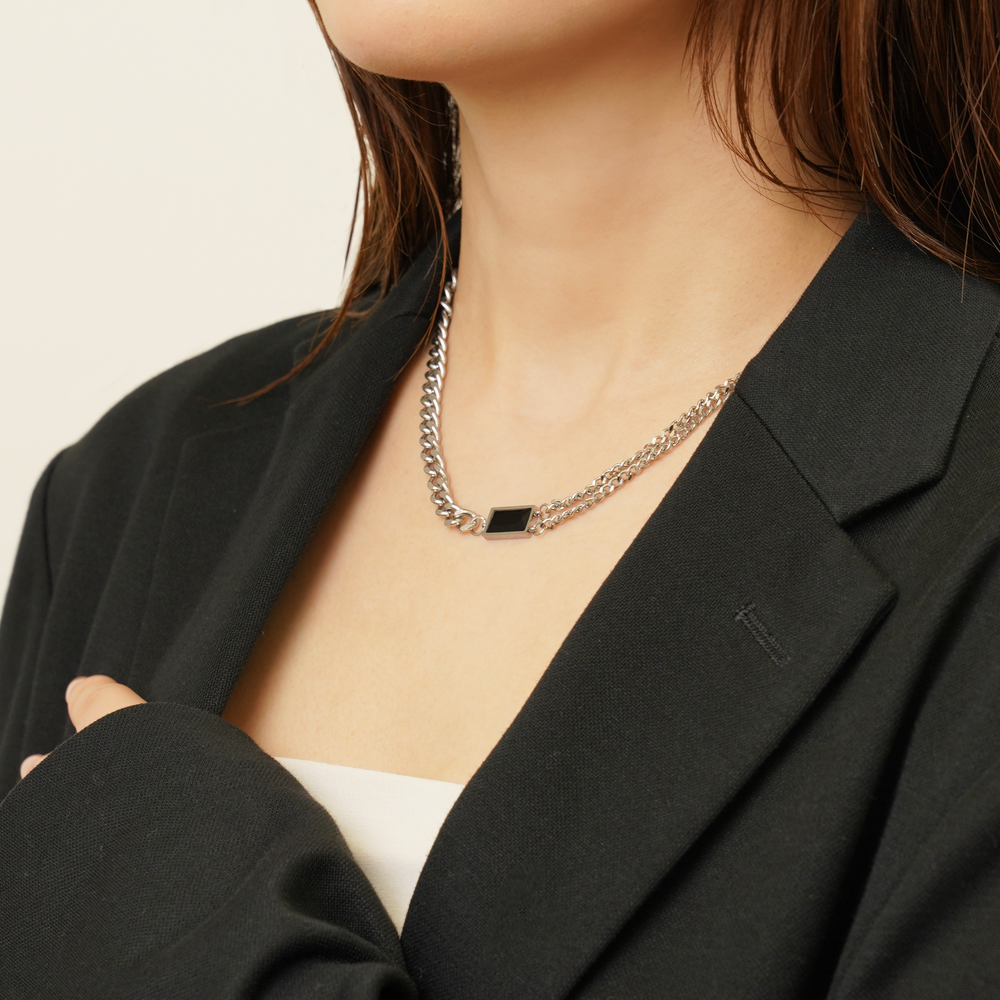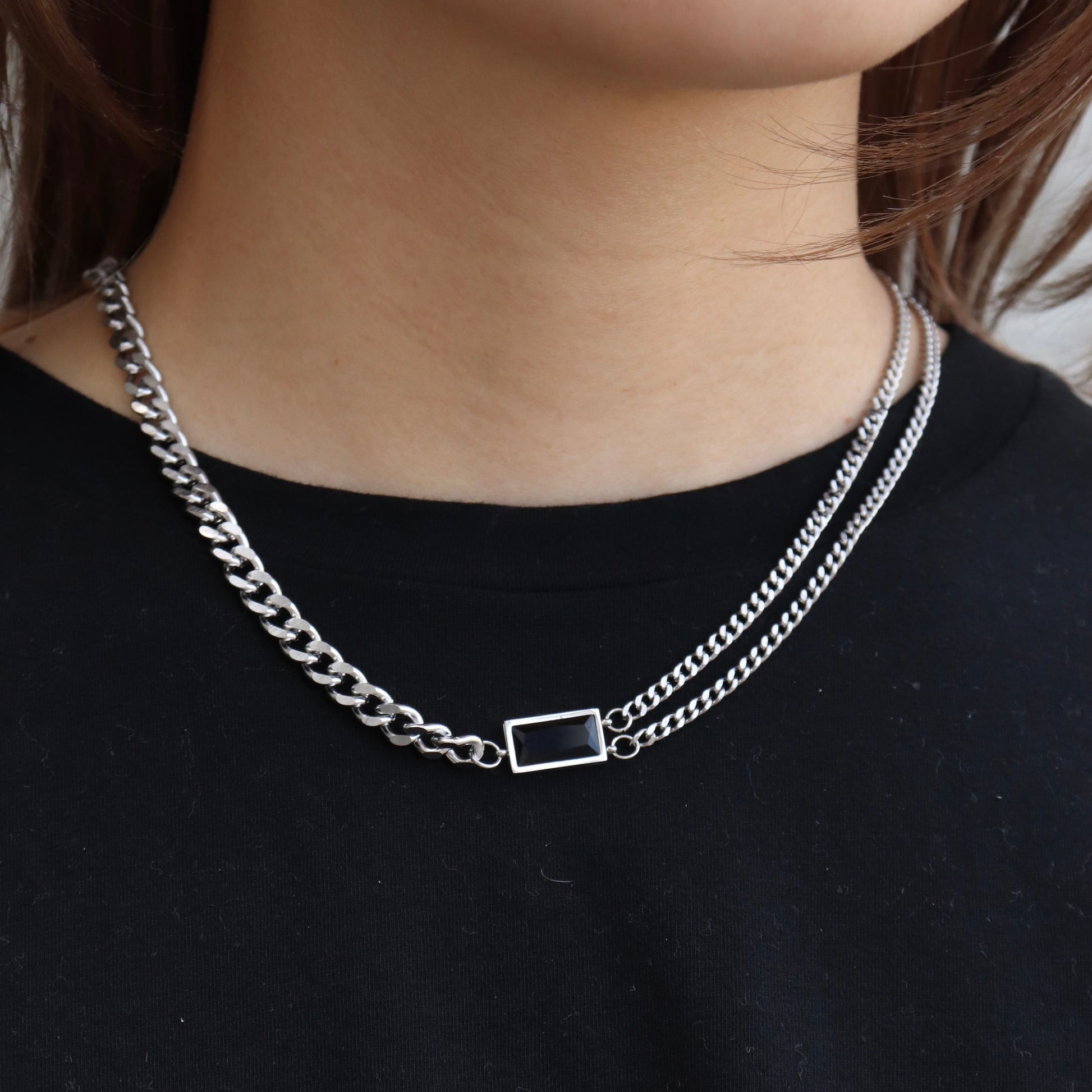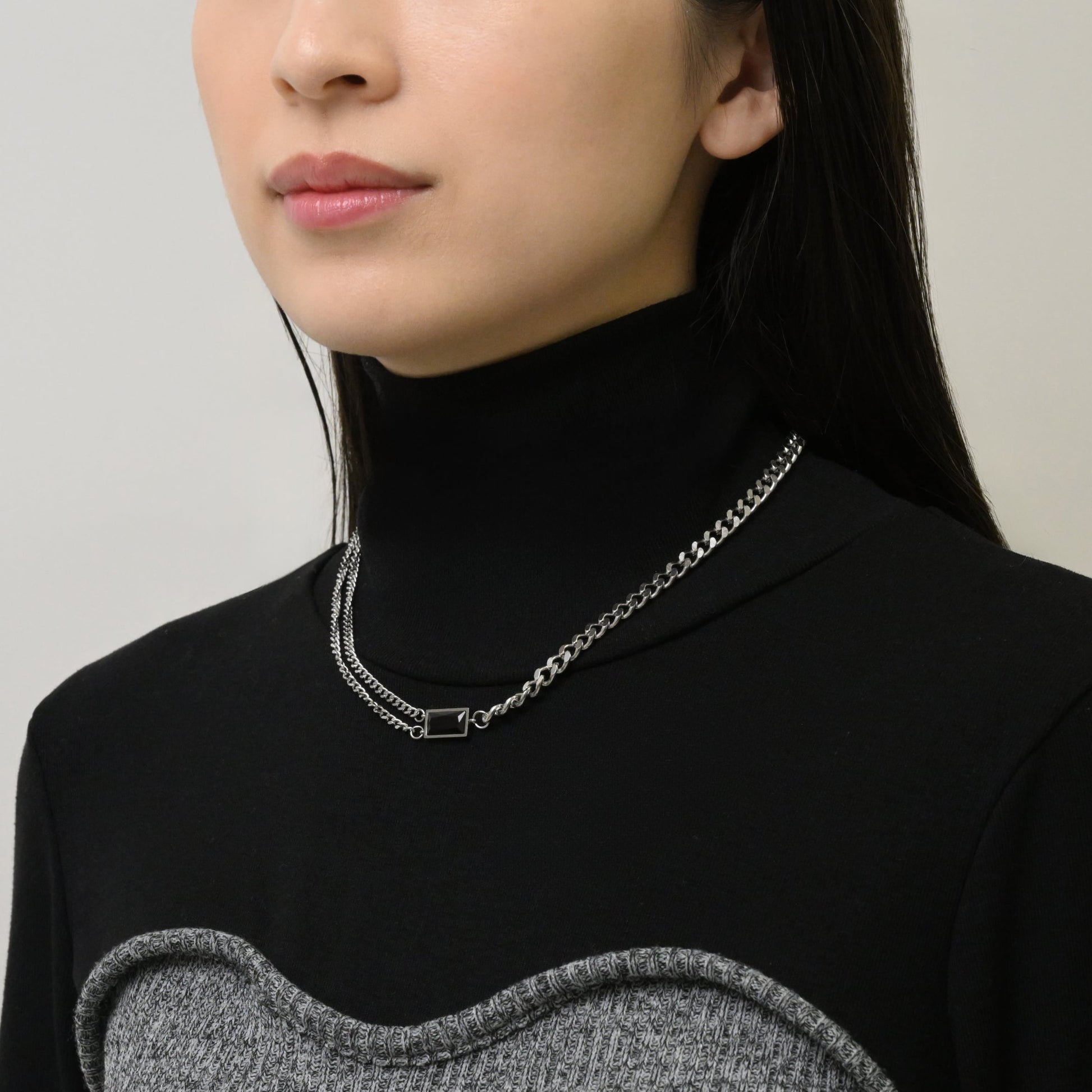 アシンメトリーなチェーンが魅力のダブルチェーンネックレス。
