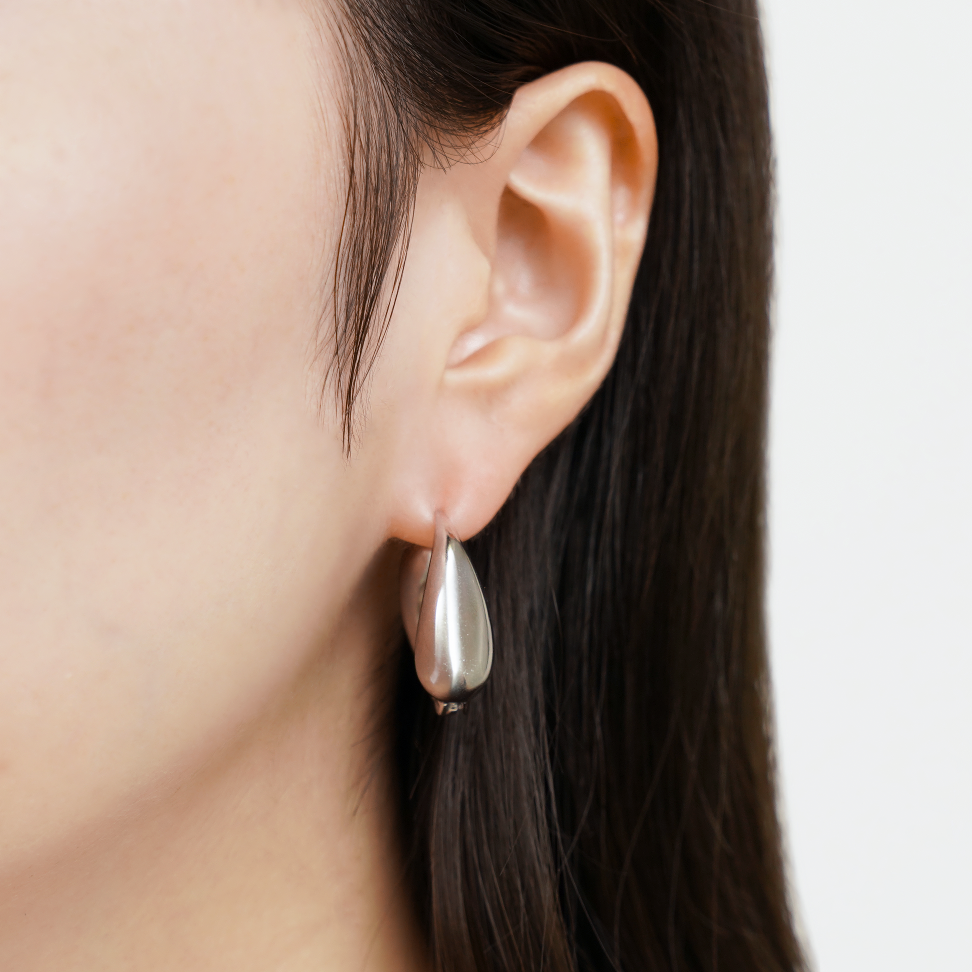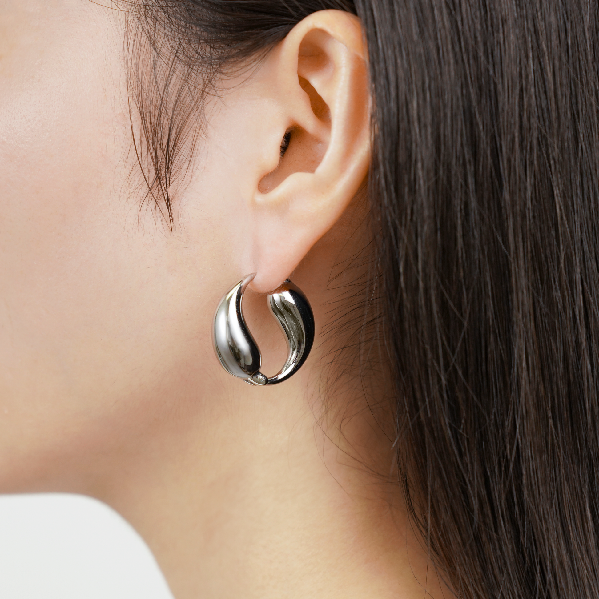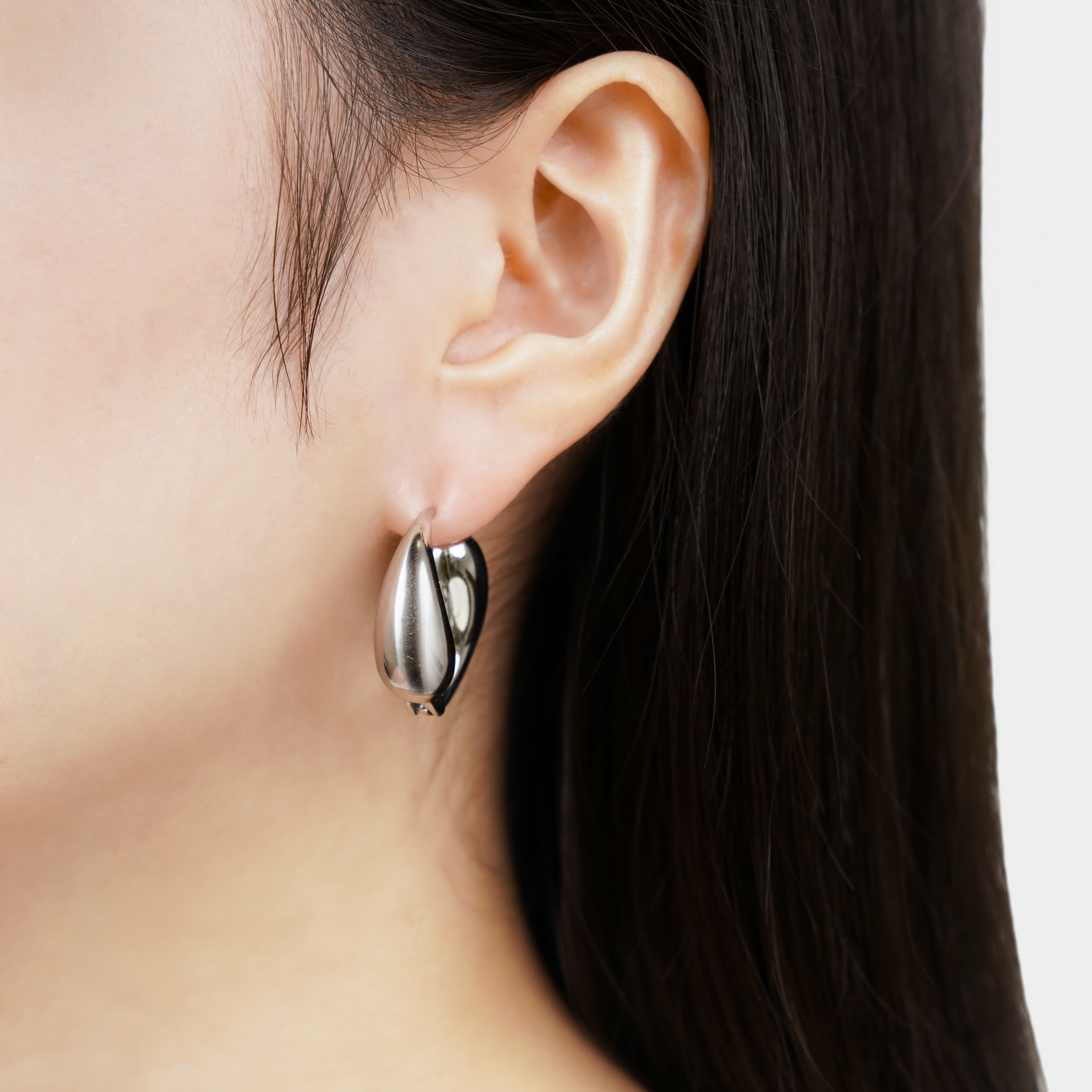 2つのドロップが繋がったような立体的フォルムが、個性的でおしゃれなピアスです。