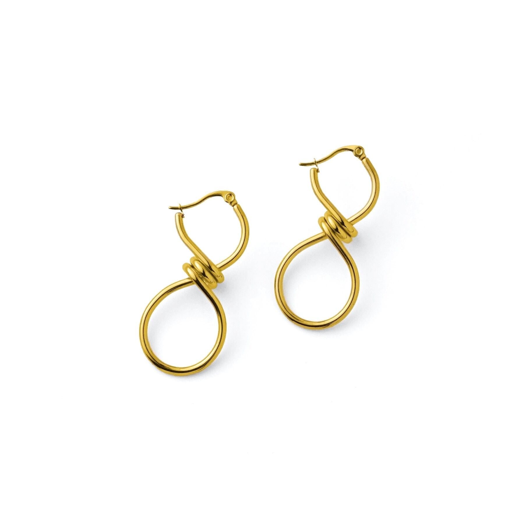 動く度に不規則に揺れる様子が美しい、ダブルループピアス。