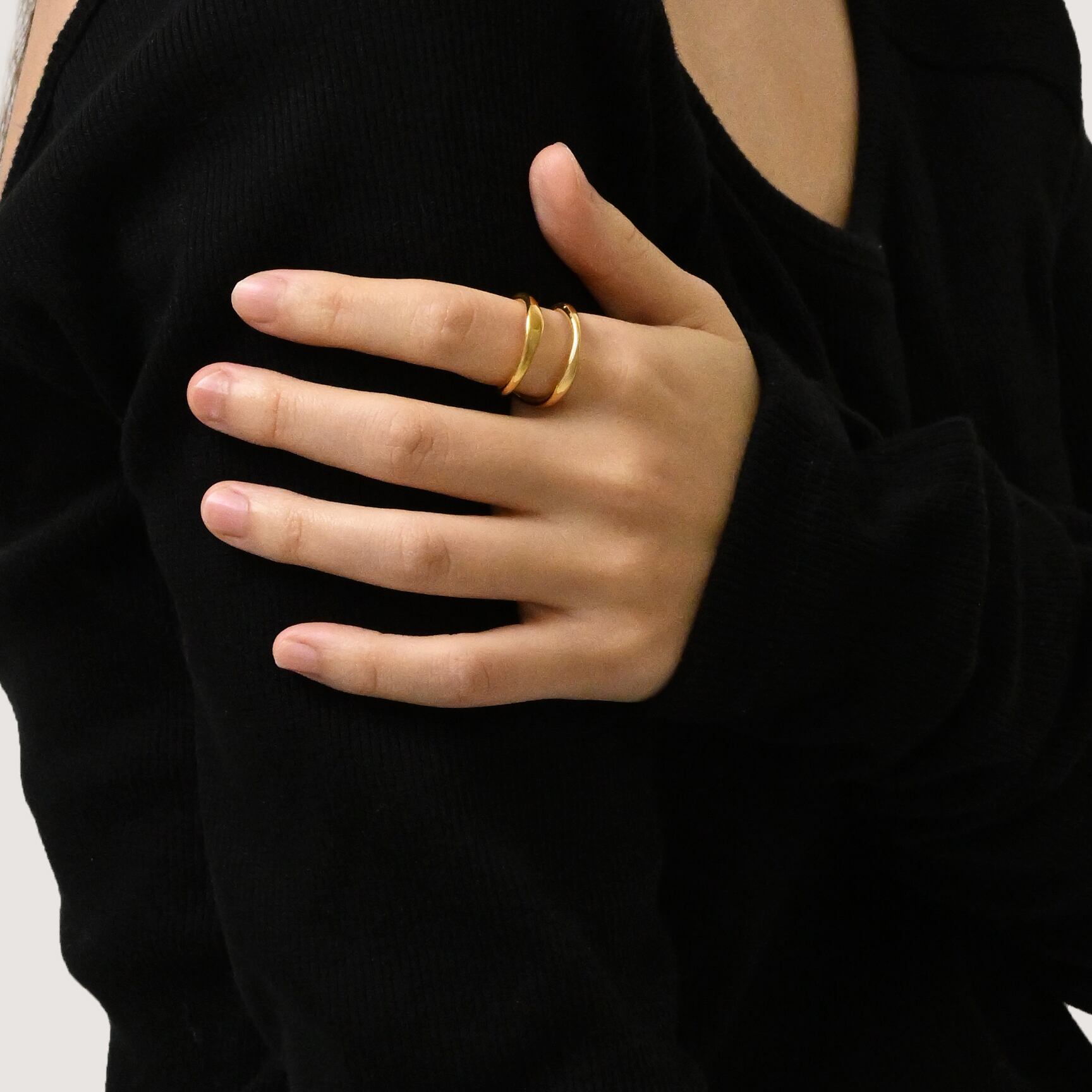 シンプルなエレガントさが魅力のダブルオープンリング。