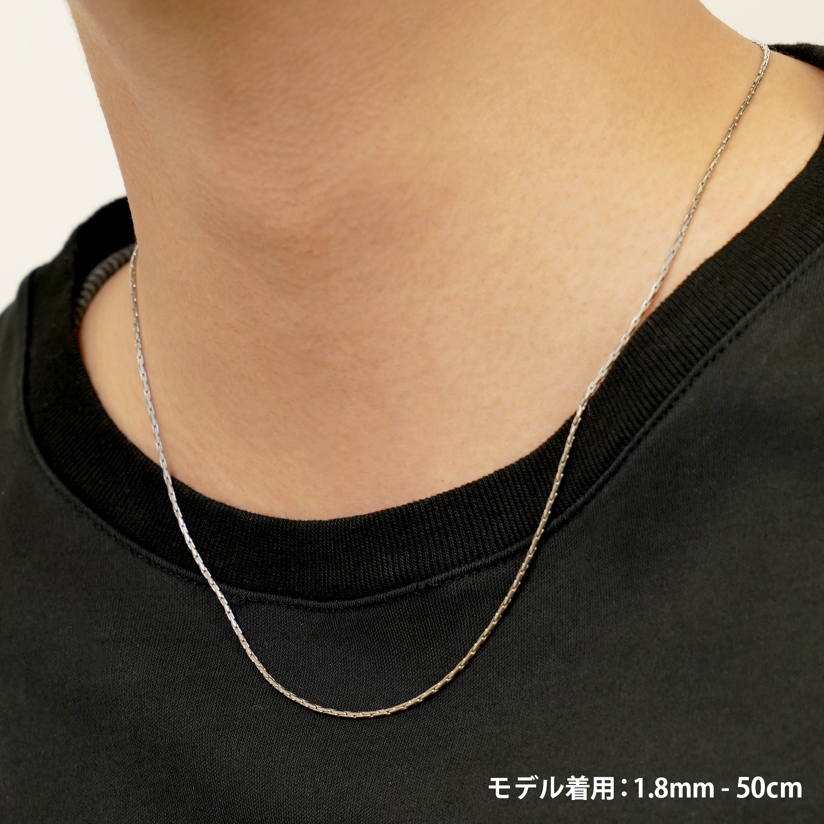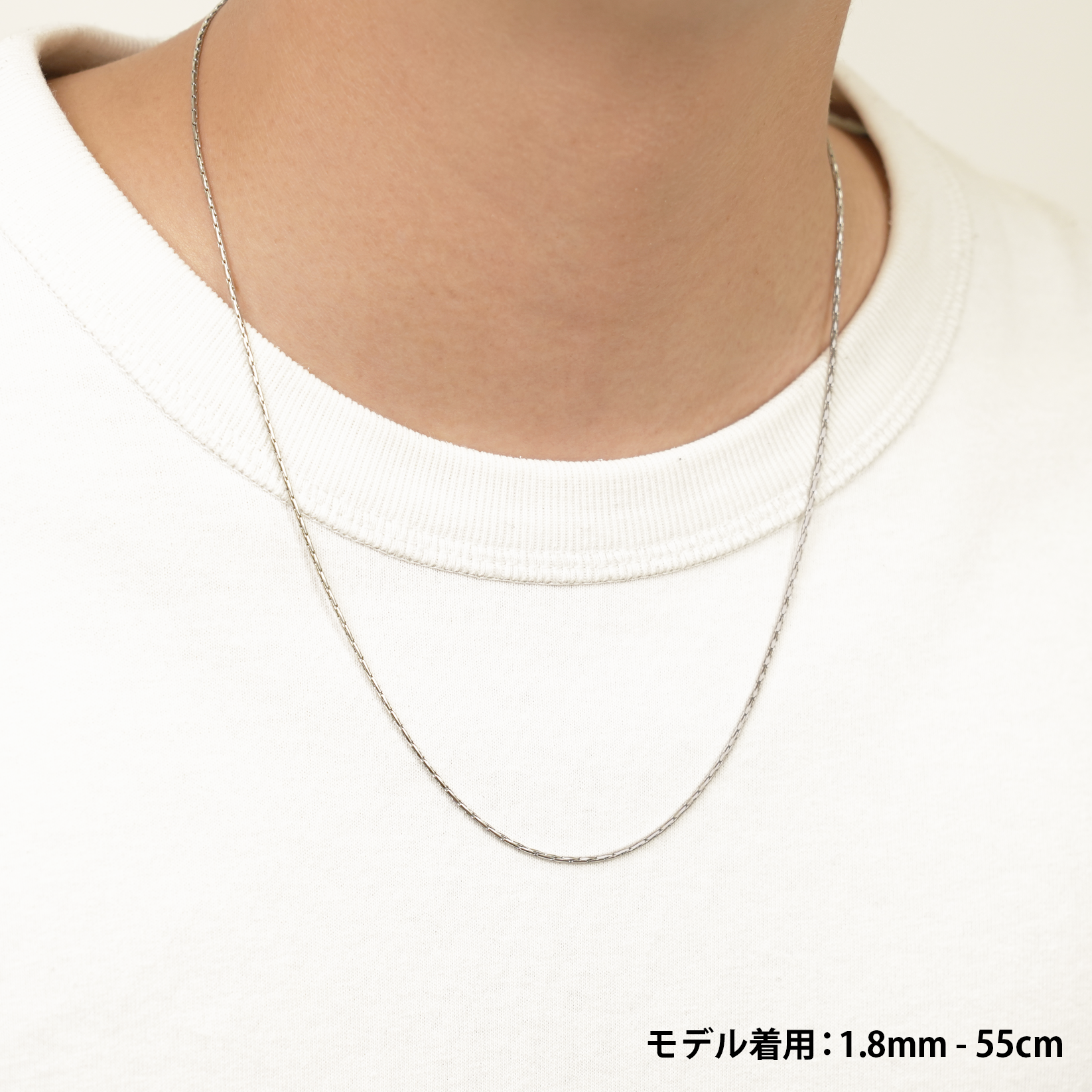 シンプルながらもひとクセあるデザインのチェーンネックレス。