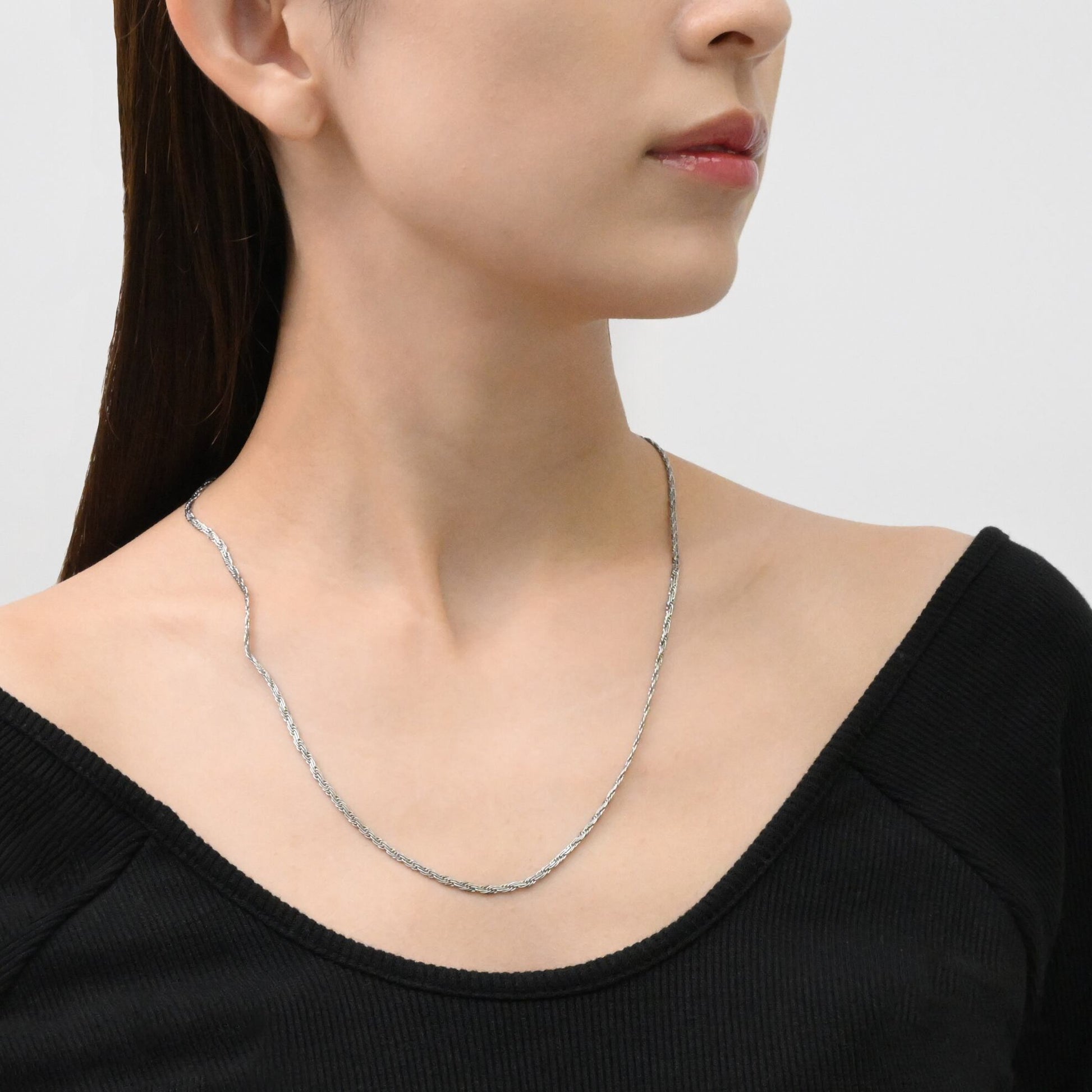 シンプルでモダンなデザインが魅力のフラットロープチェーンネックレス。