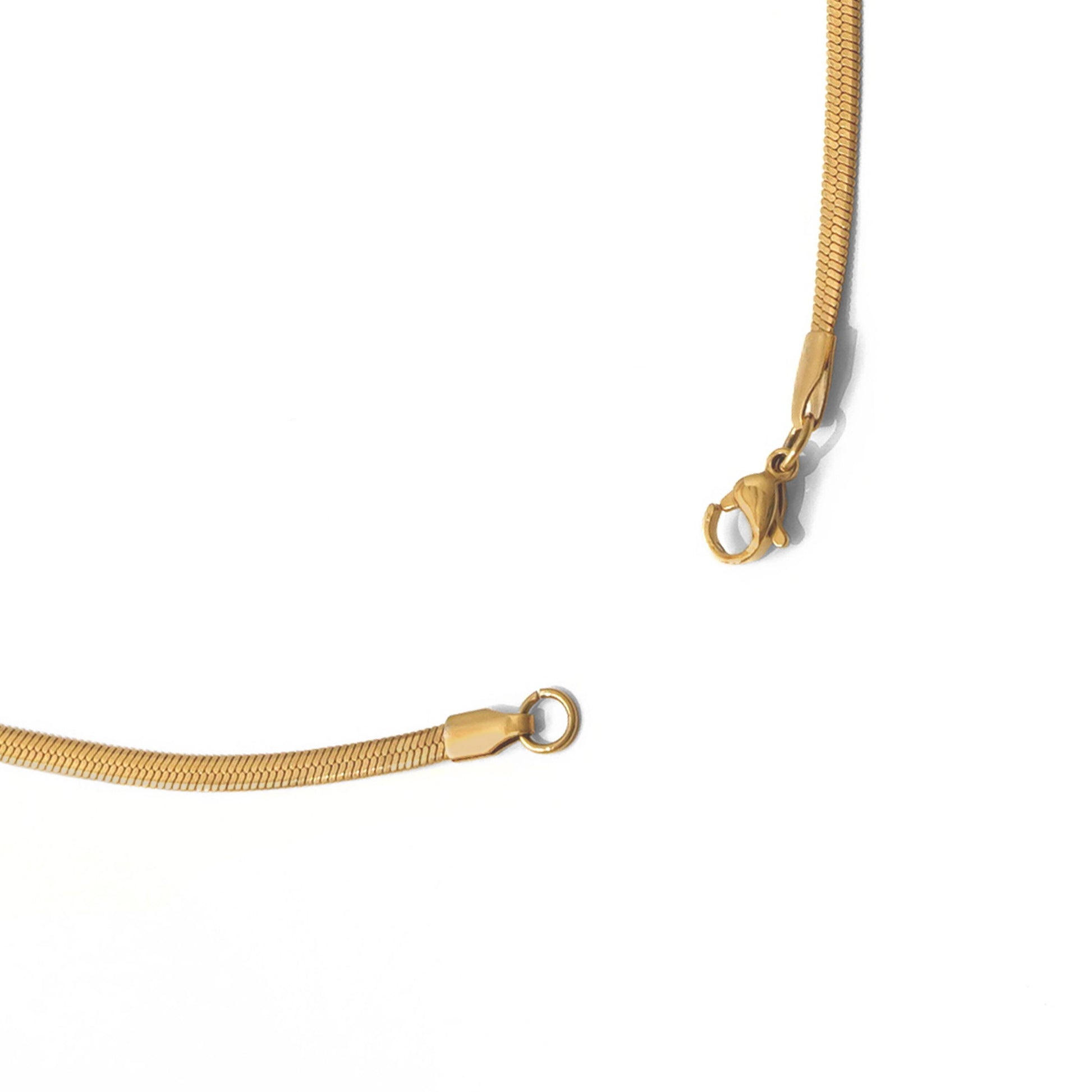 シンプルですが、フラットなスネークチェーンが滑らかにフィットして程よい存在感があります。