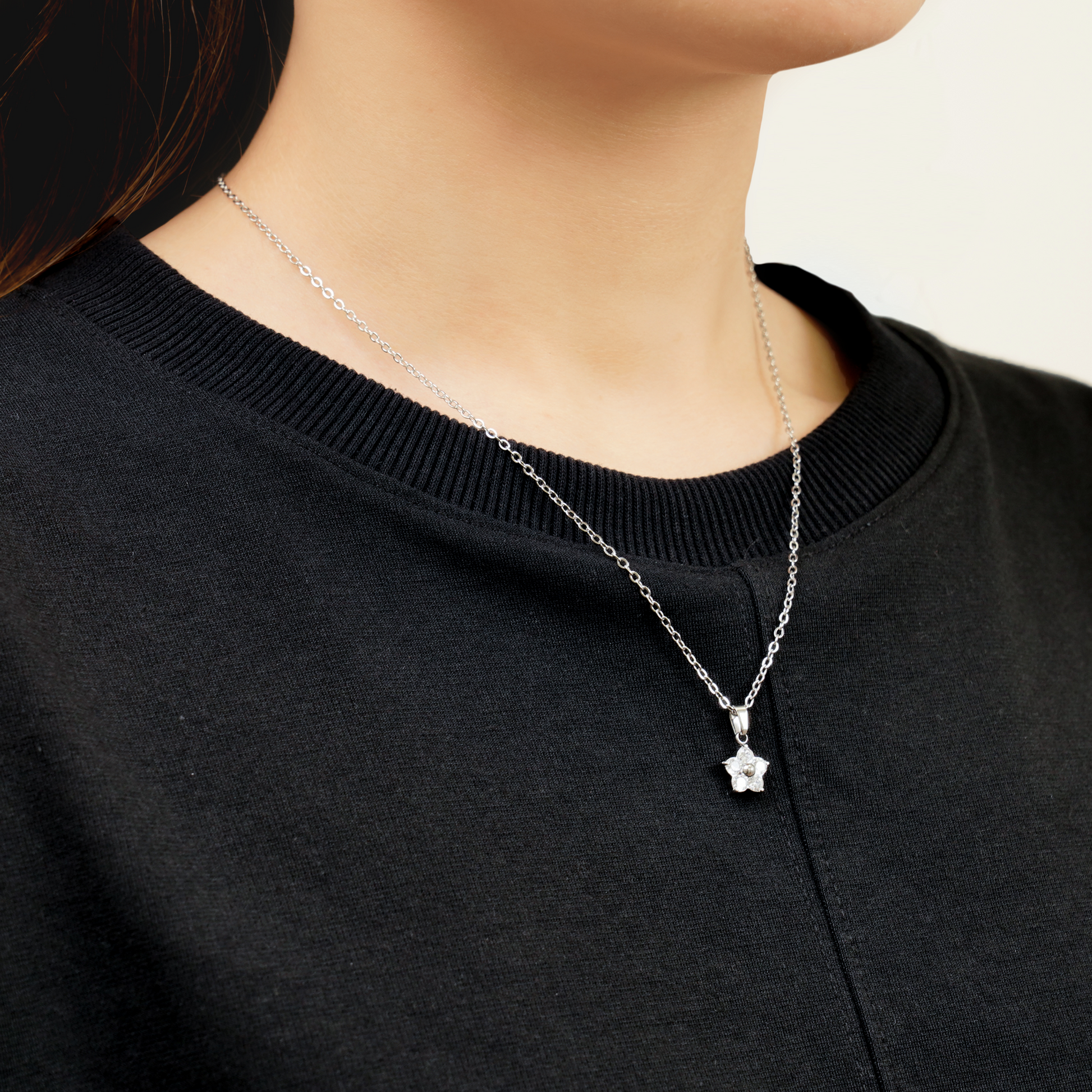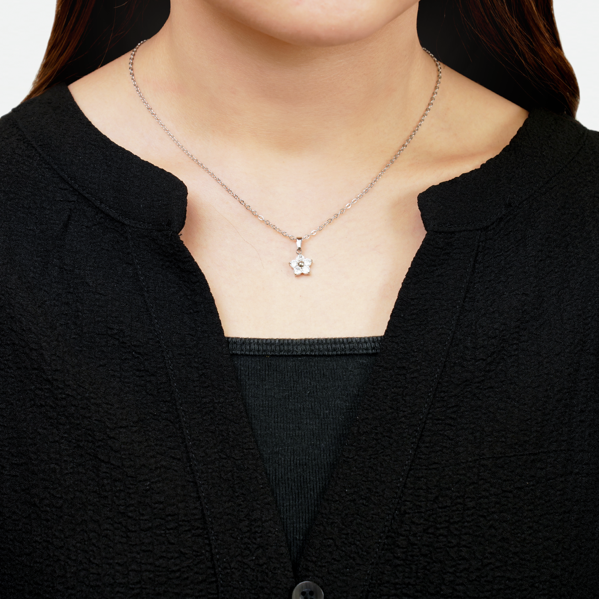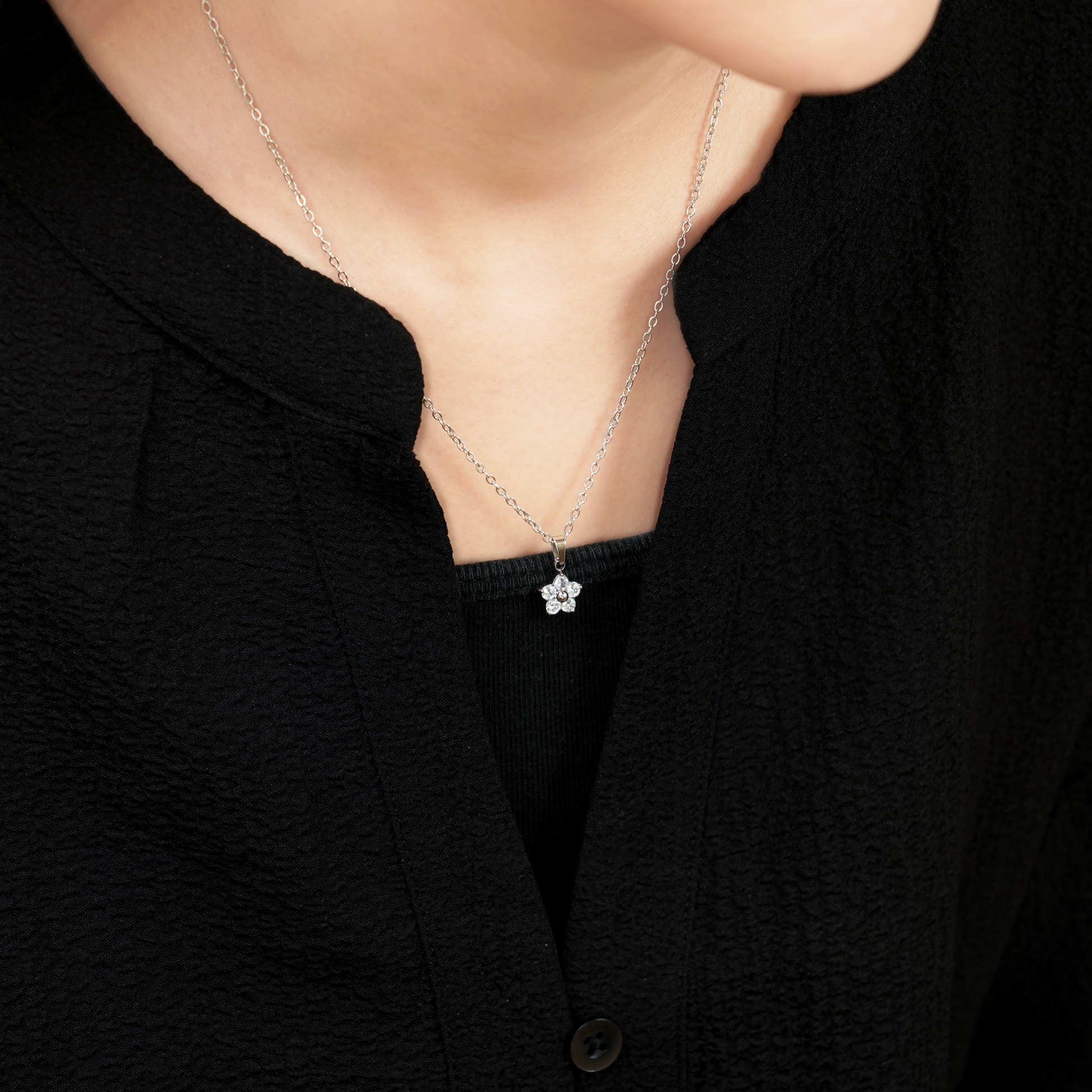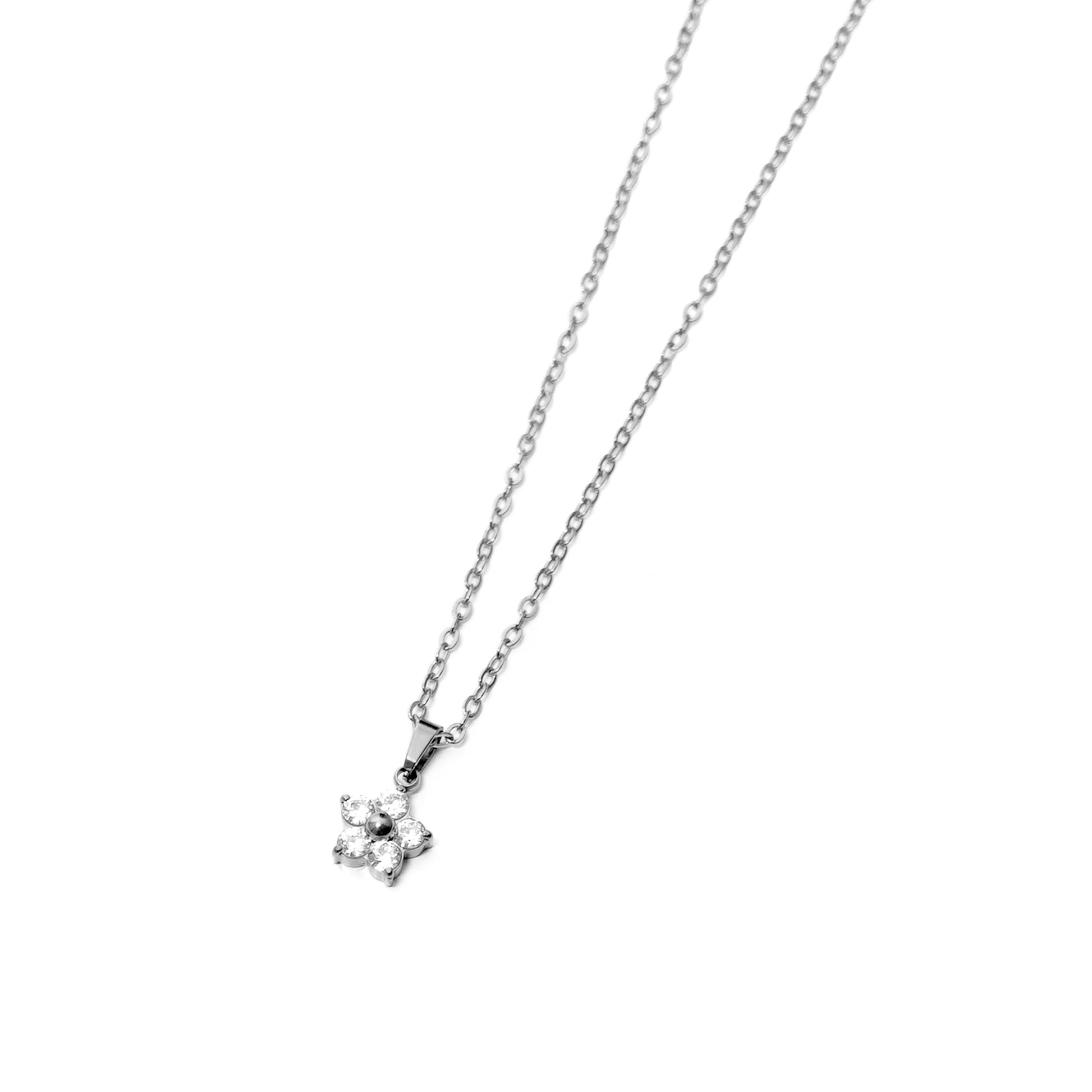 キラリと輝くジルコニアが可愛いフラワーモチーフのネックレス。