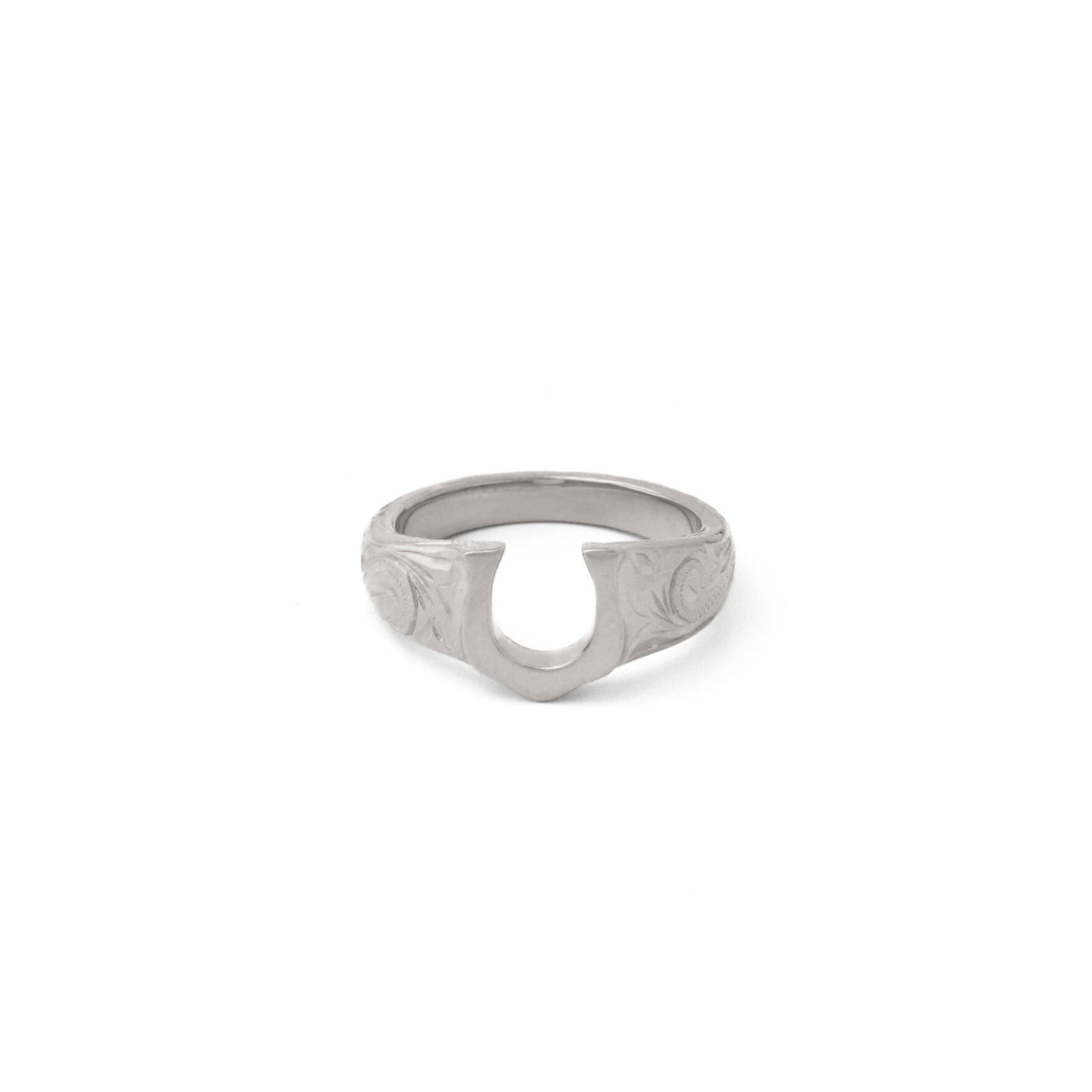 ホースシューリングにハワイアンジュエリーの模様を彫金したリング。