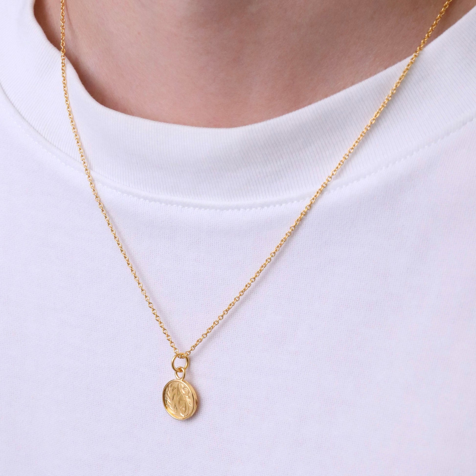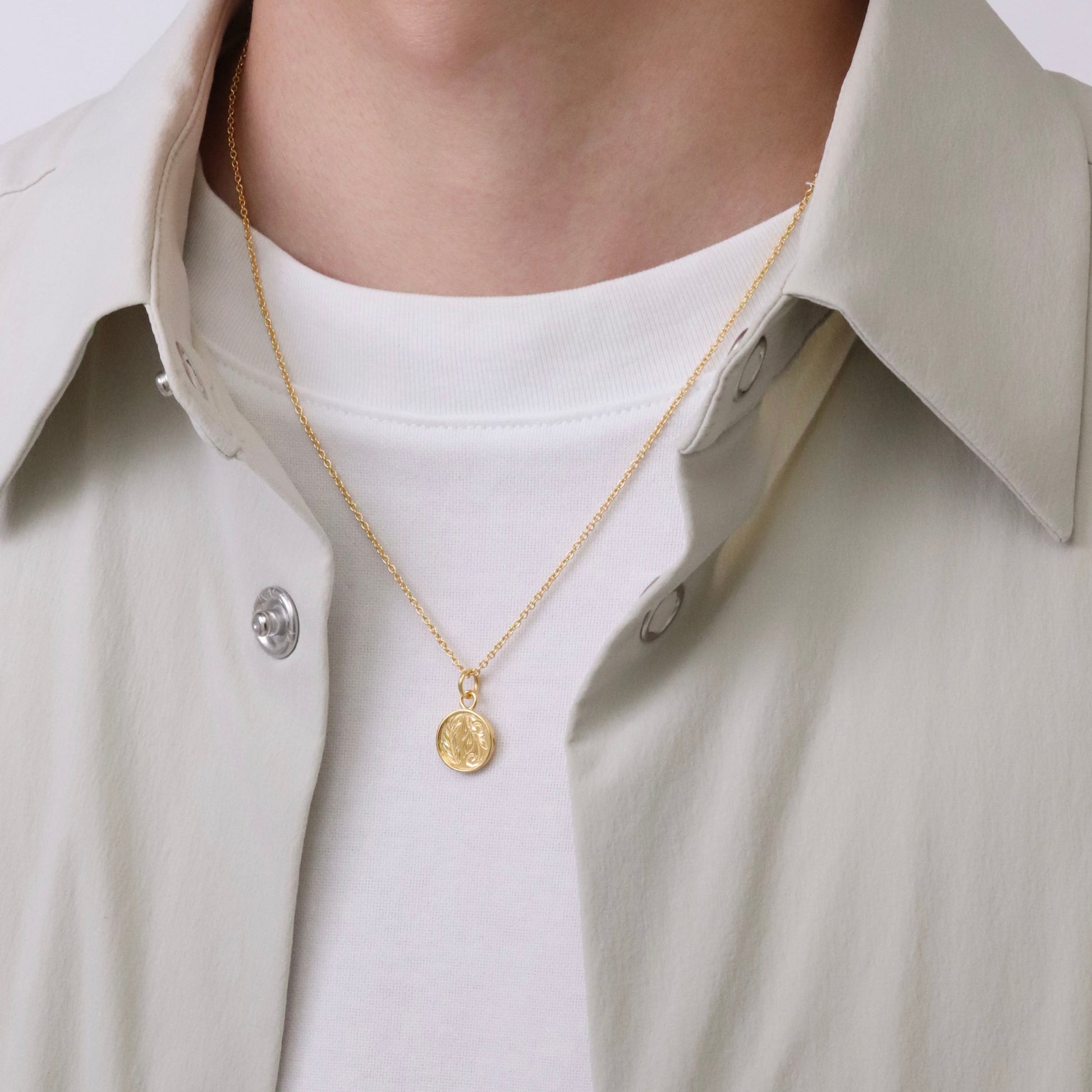 コインにヘリテイジ柄を彫金したハワイの美しい自然を感じる程よいサイズのミニコインネックレス。