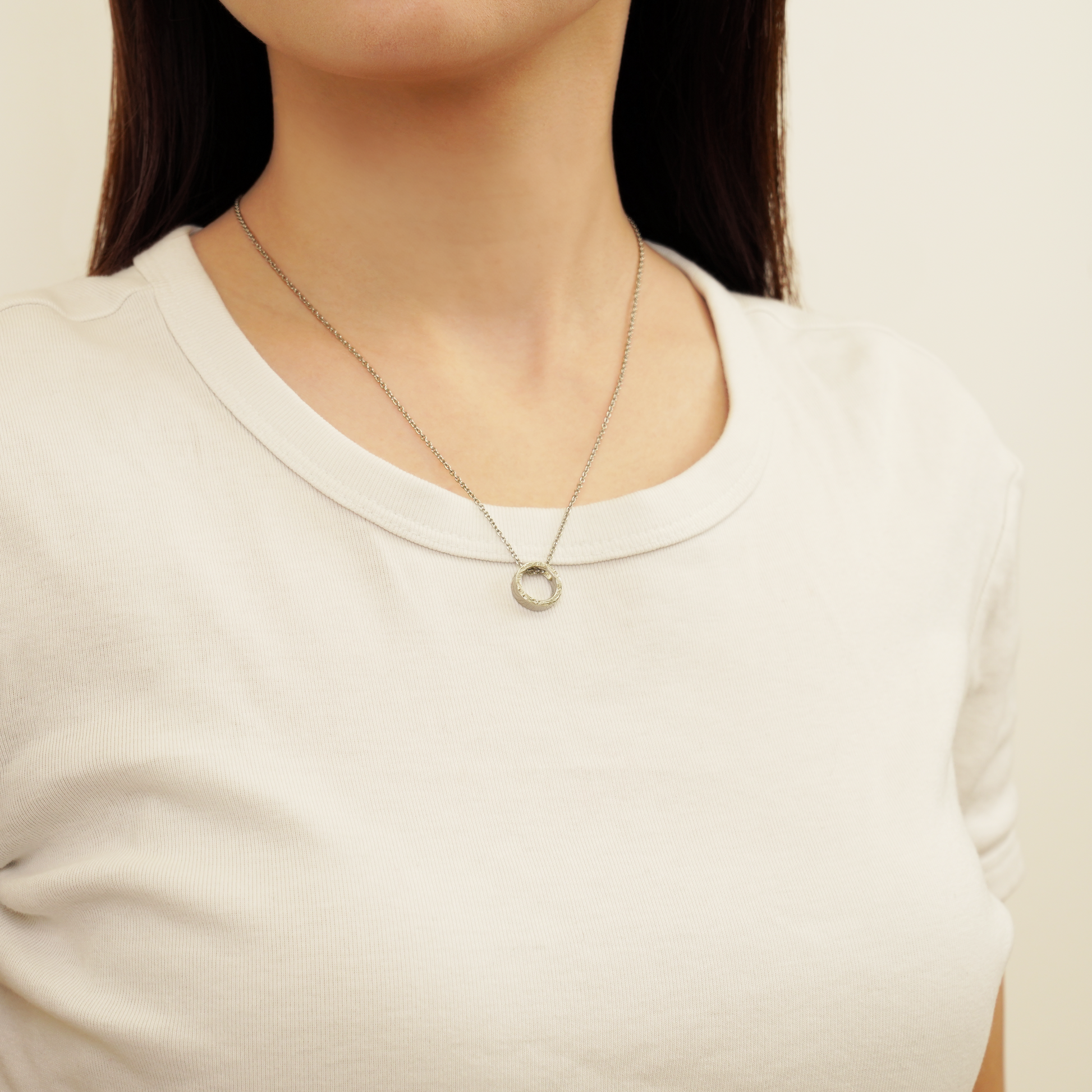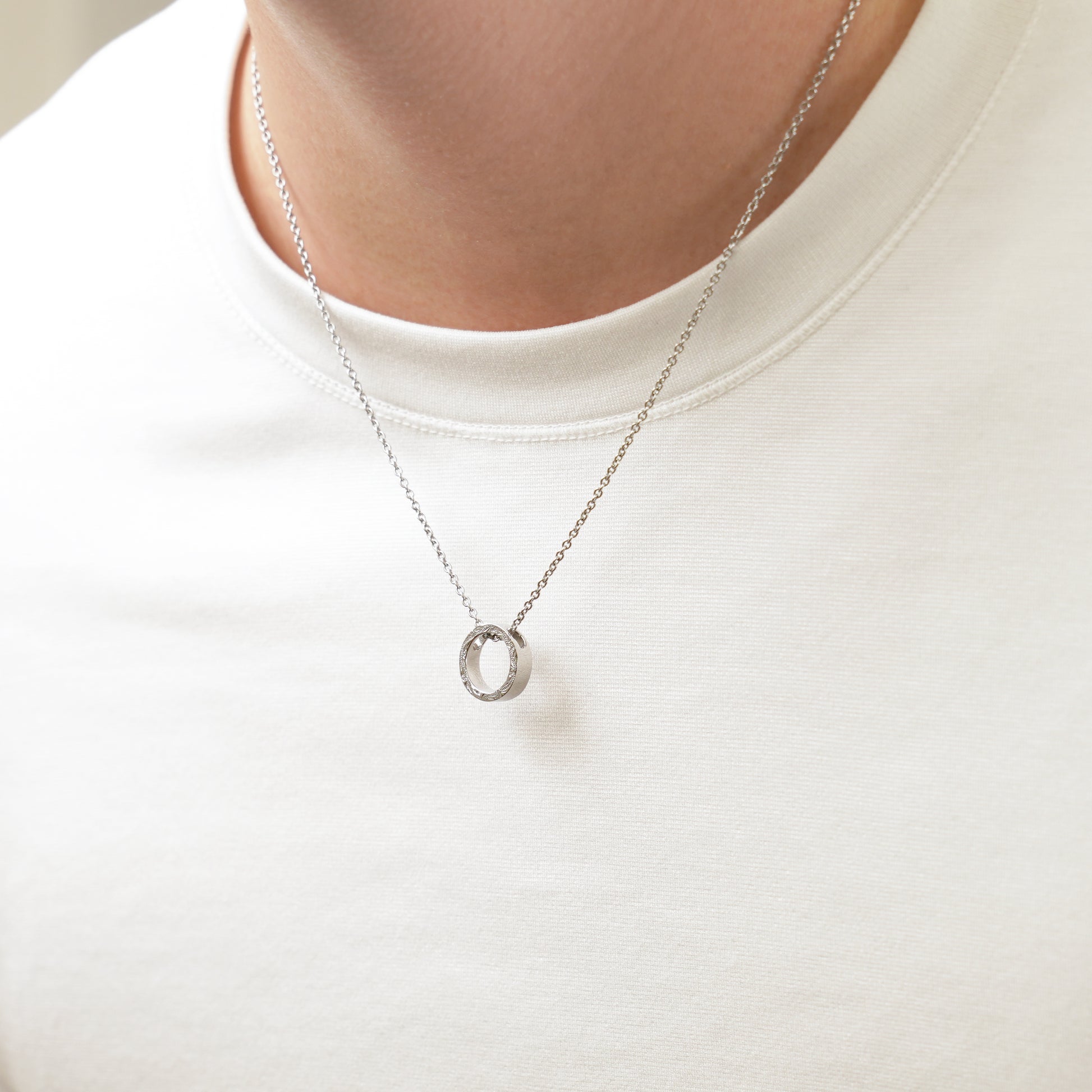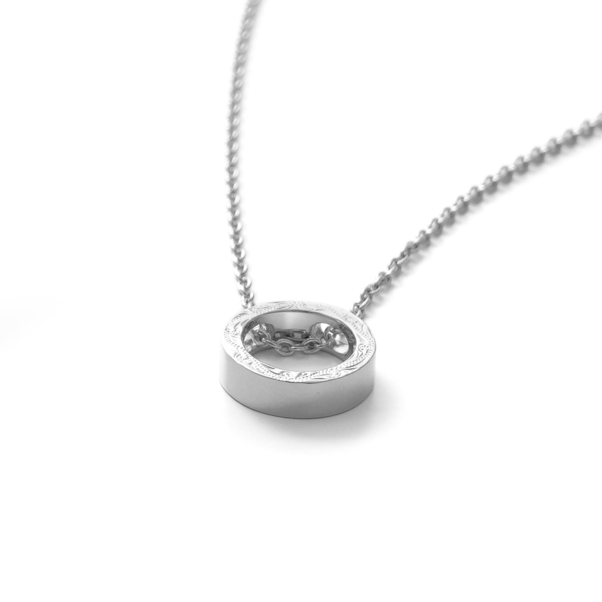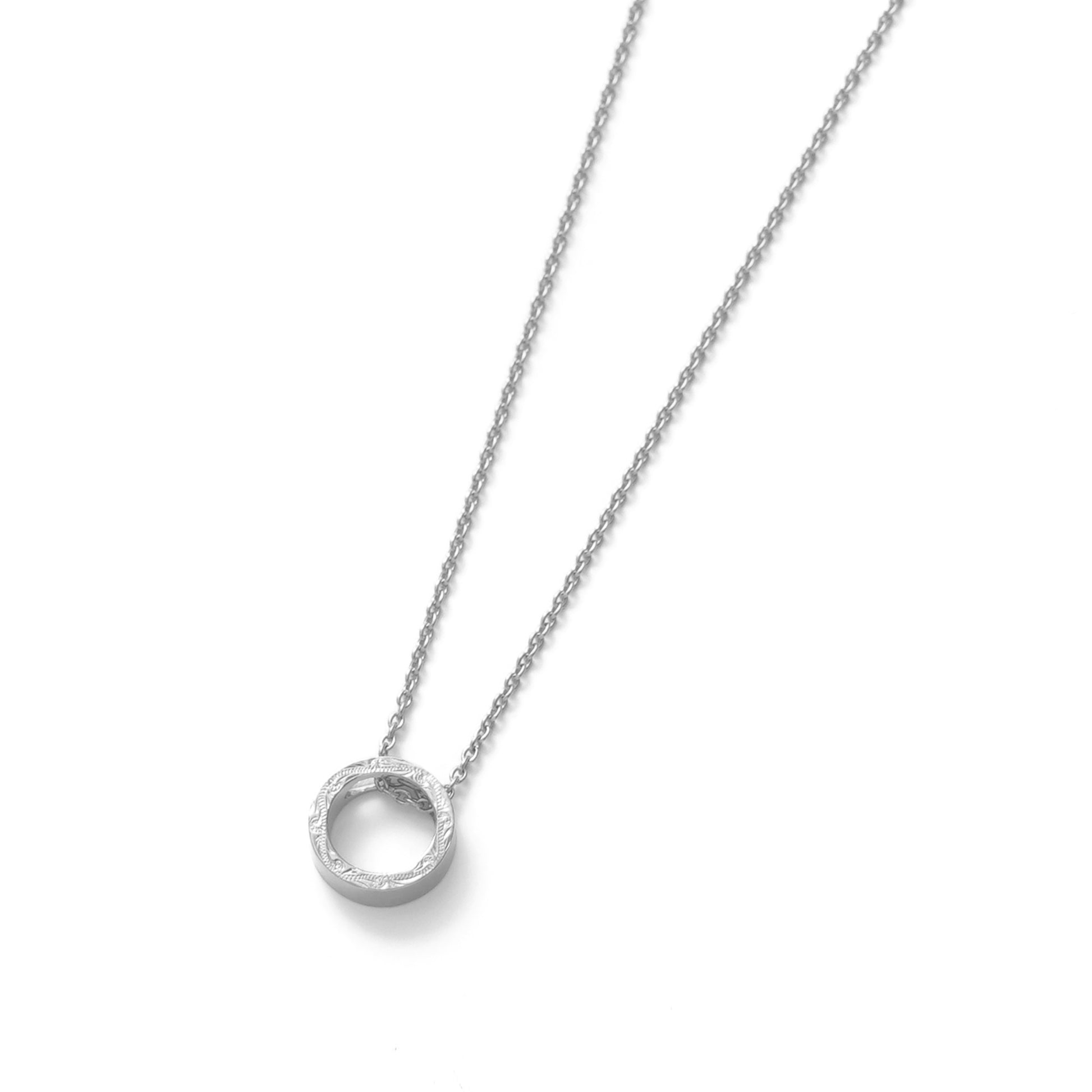 リングの側面にスクロール(波)を彫金したハワイの美しい自然を感じるネックレス。