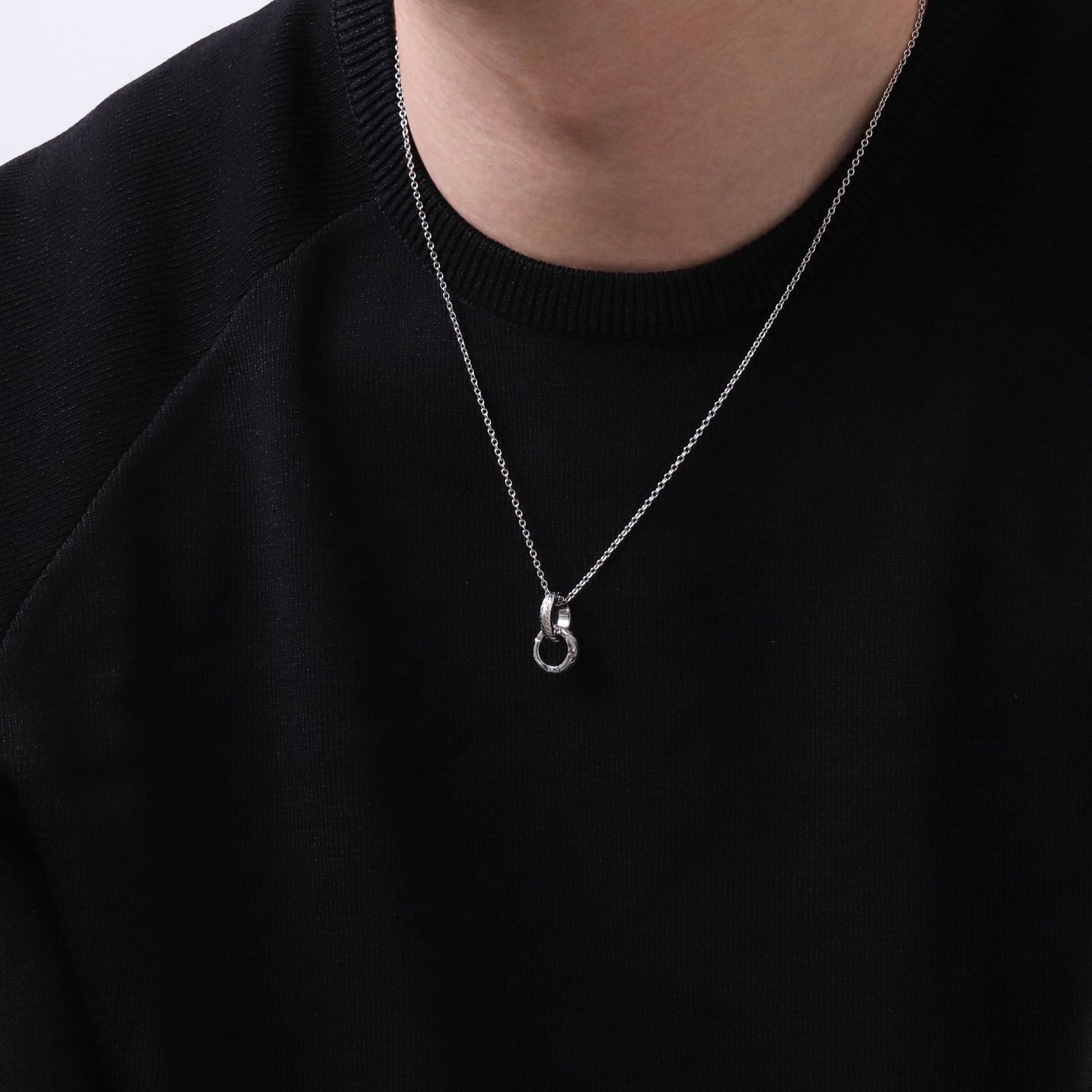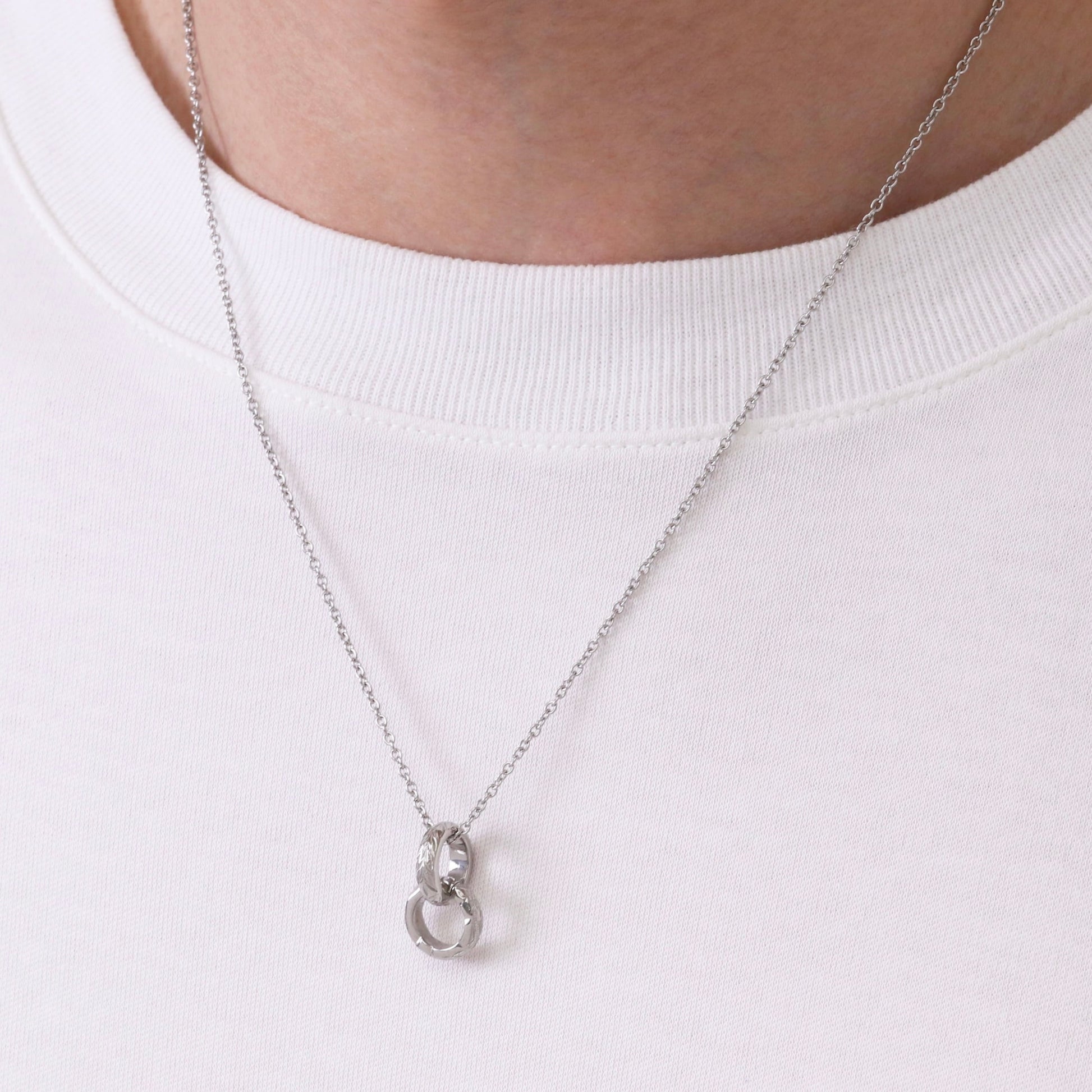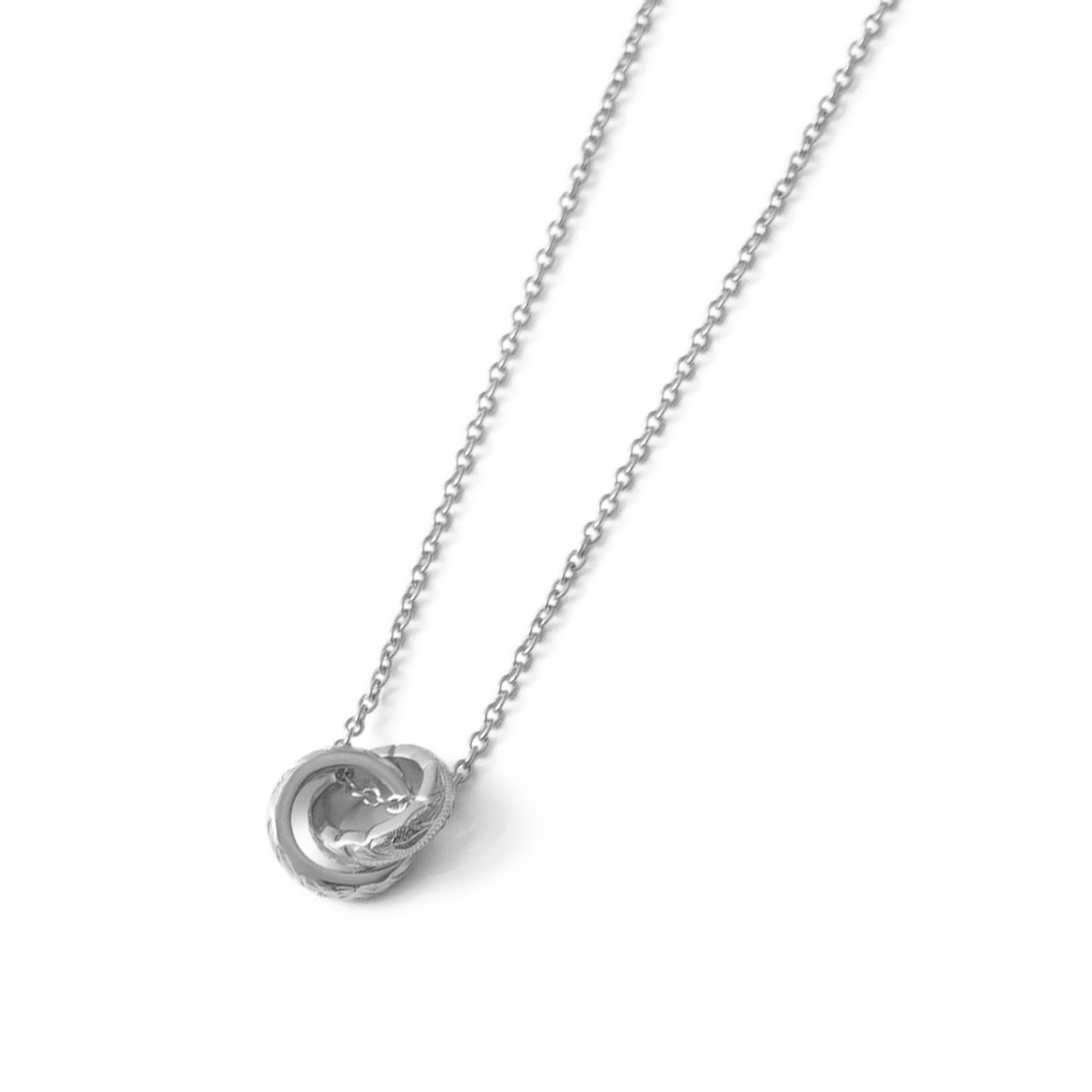 ハワイアンのデザインを落とし込むこんだデザインリングのデザインが異なる2連リングネックレス。程よいサイズ感ながら存在感のある仕上がりです。
