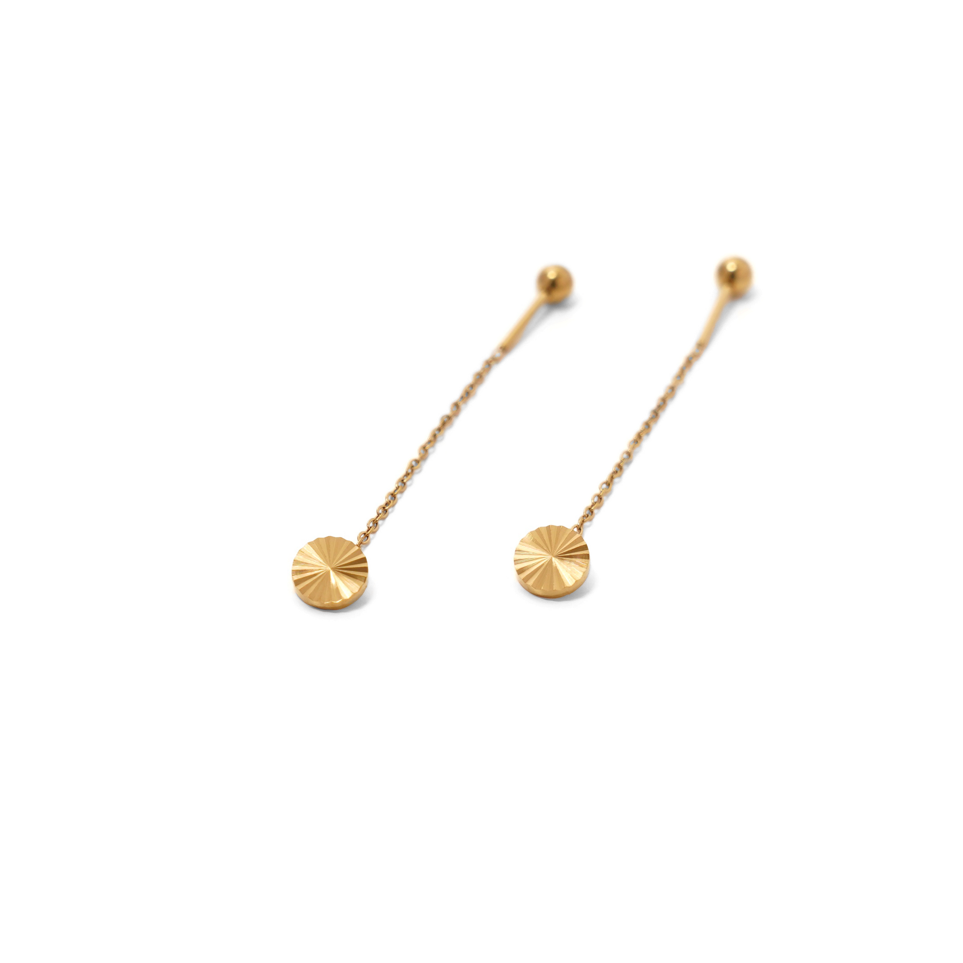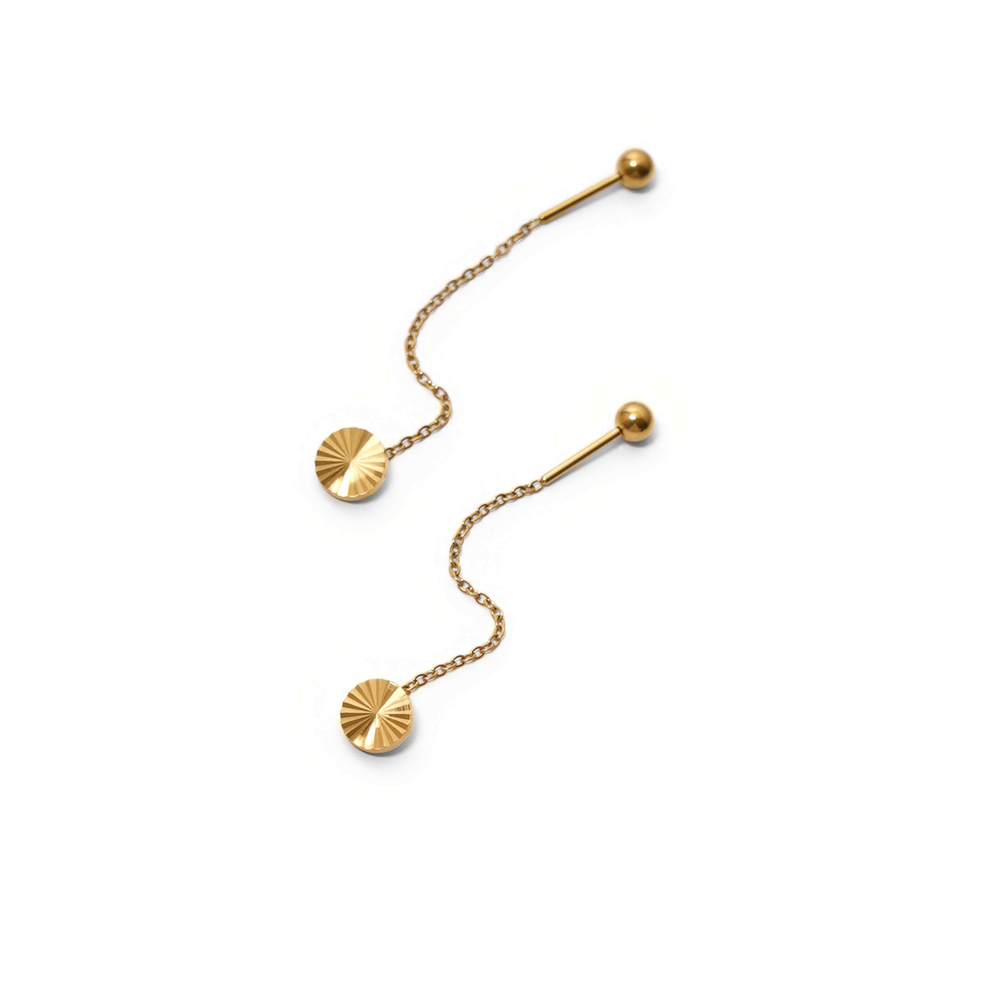 繊細なディテールのサークルとロングチェーンが魅力的なピアス。