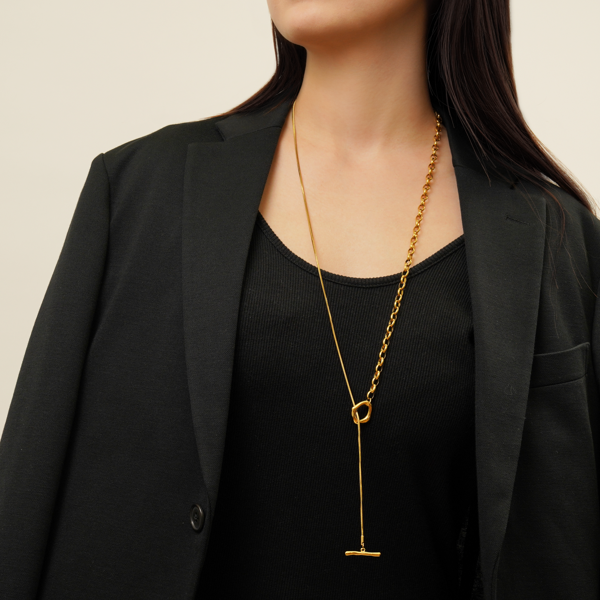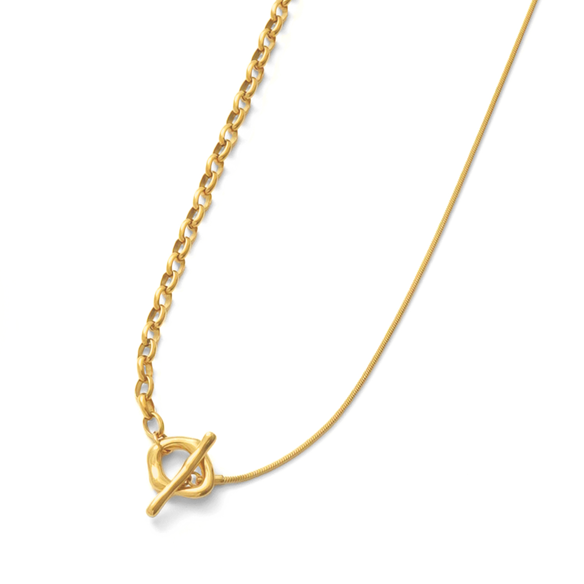 シンプルながらも存在感のある留め具がアクセントとなり1点投入で一気にこなれ感が漂います。クロスジュエリアのチェーンコレクションはクラシックでモダンなユニセックス・スタイルです。