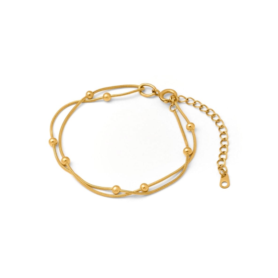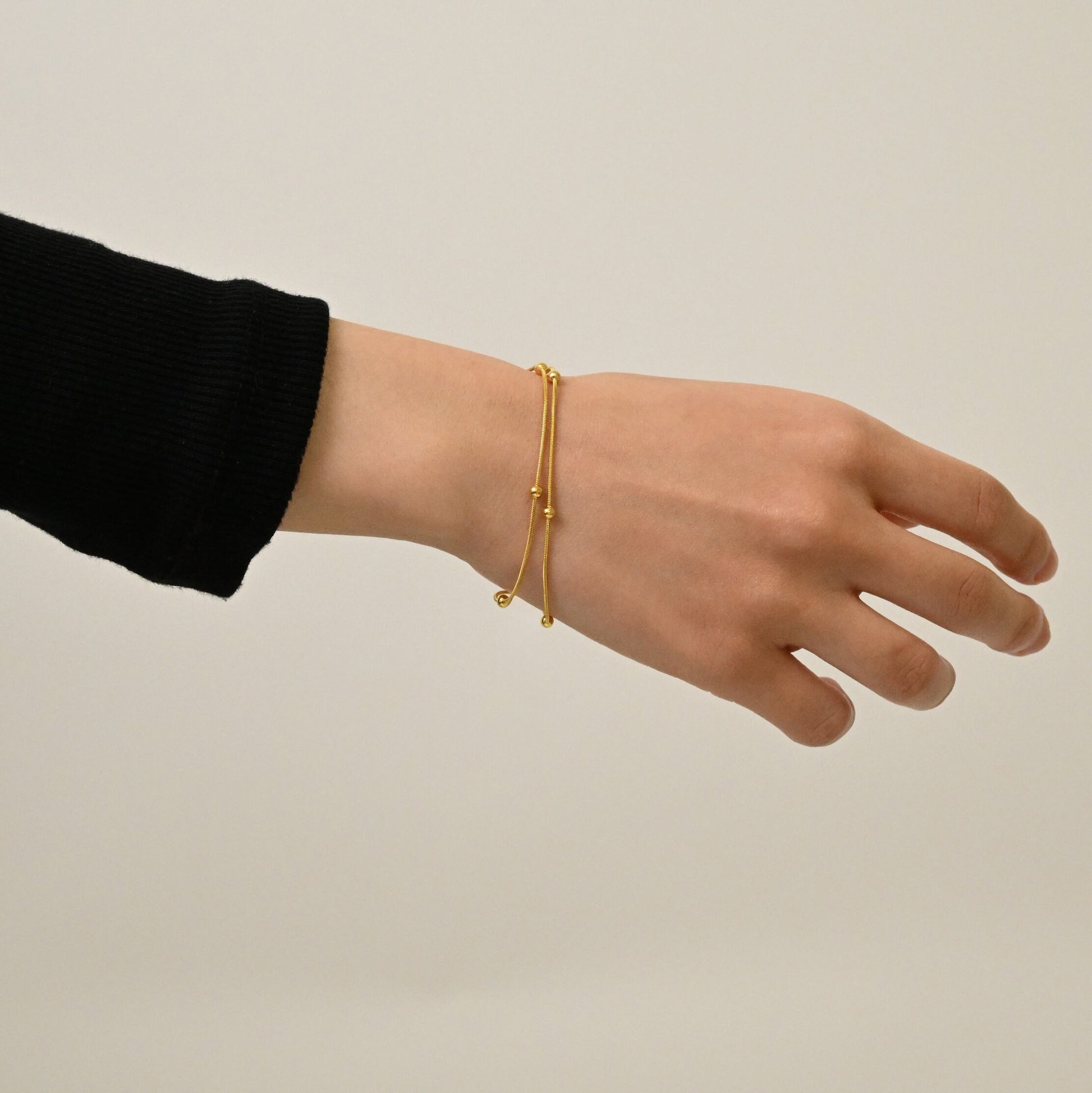 華奢な2本のチェーンに、散りばめたボールがアクセントのブレスレット。