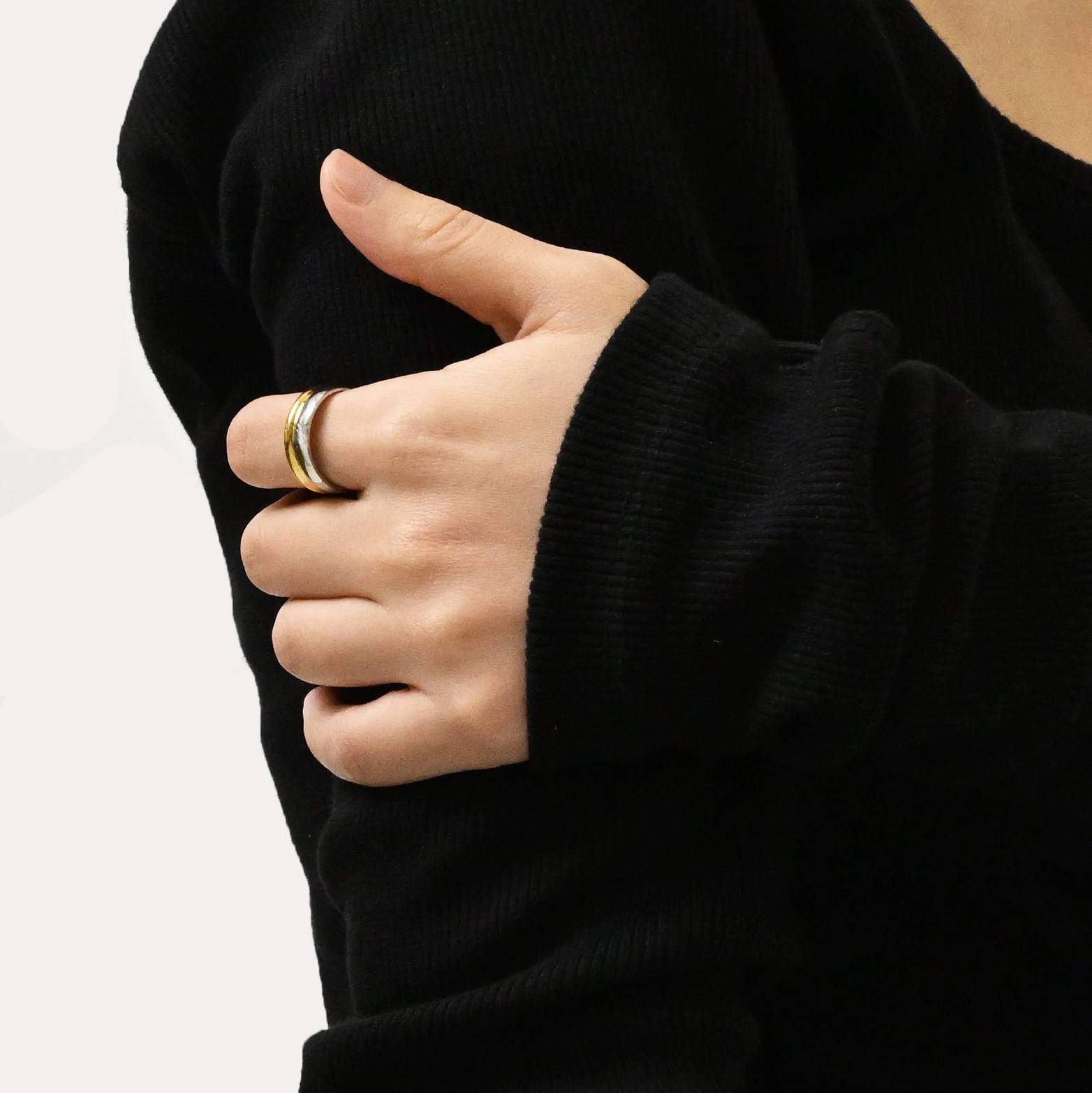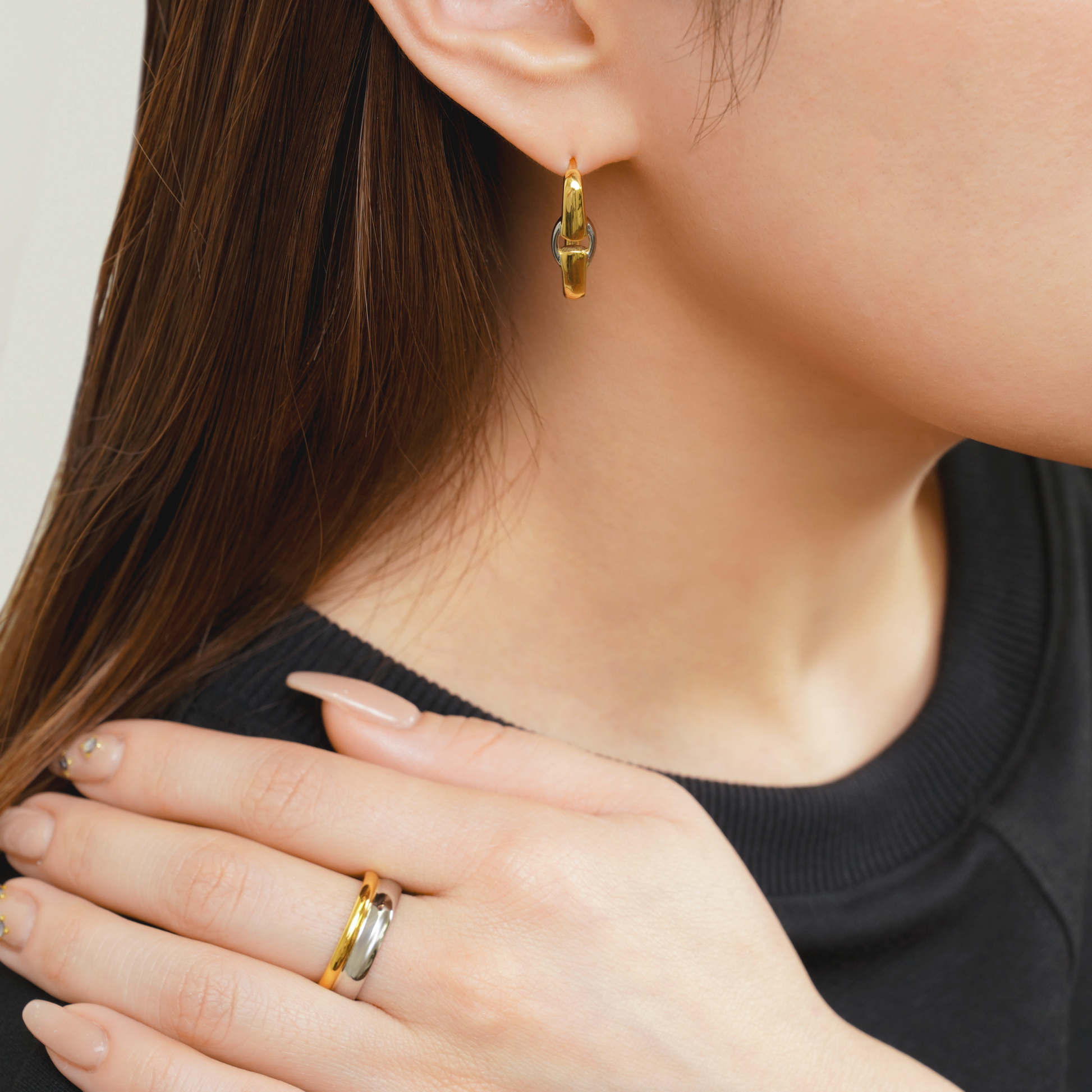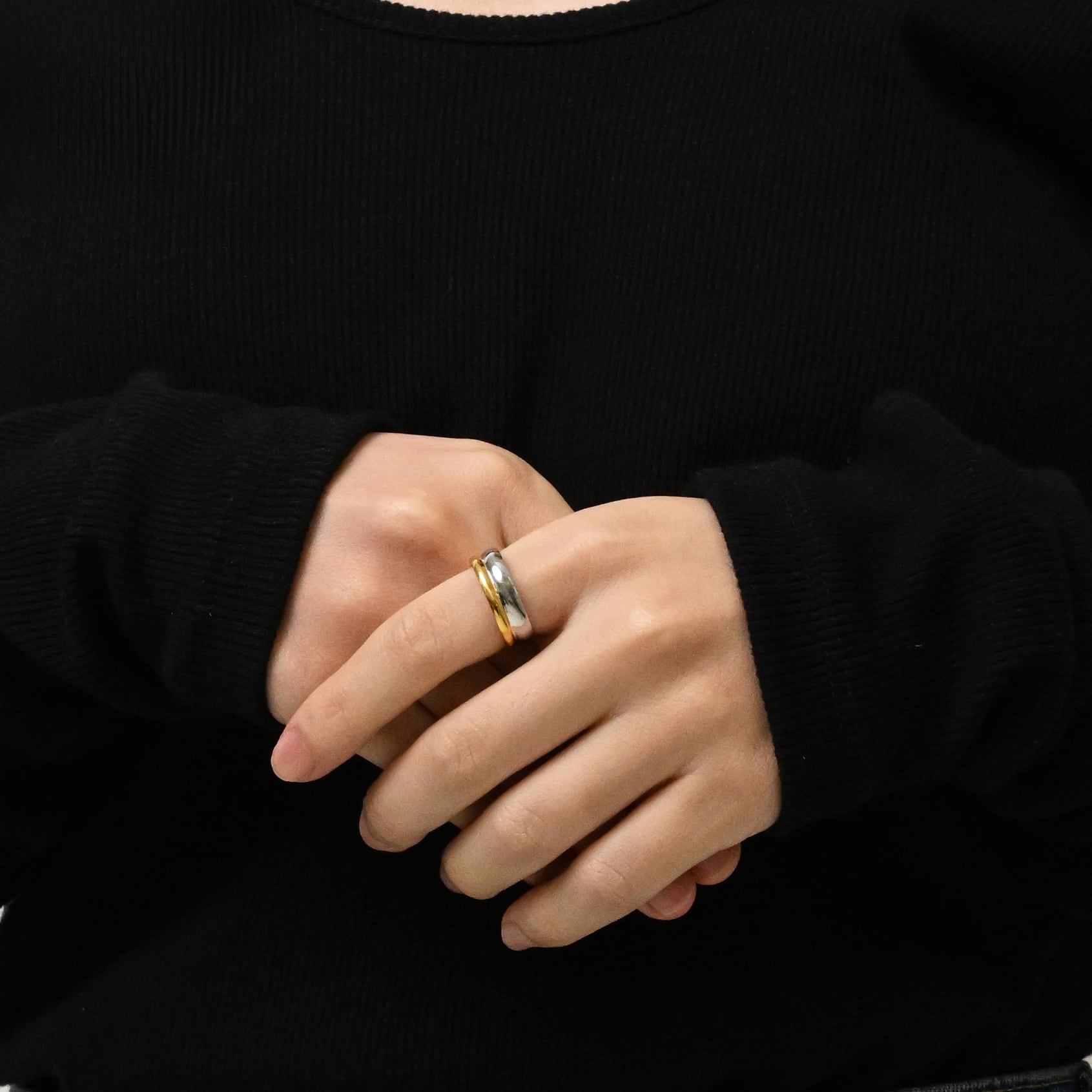 シルバーとゴールドの配色が洗練された印象のバイカラーダブルフープリング。