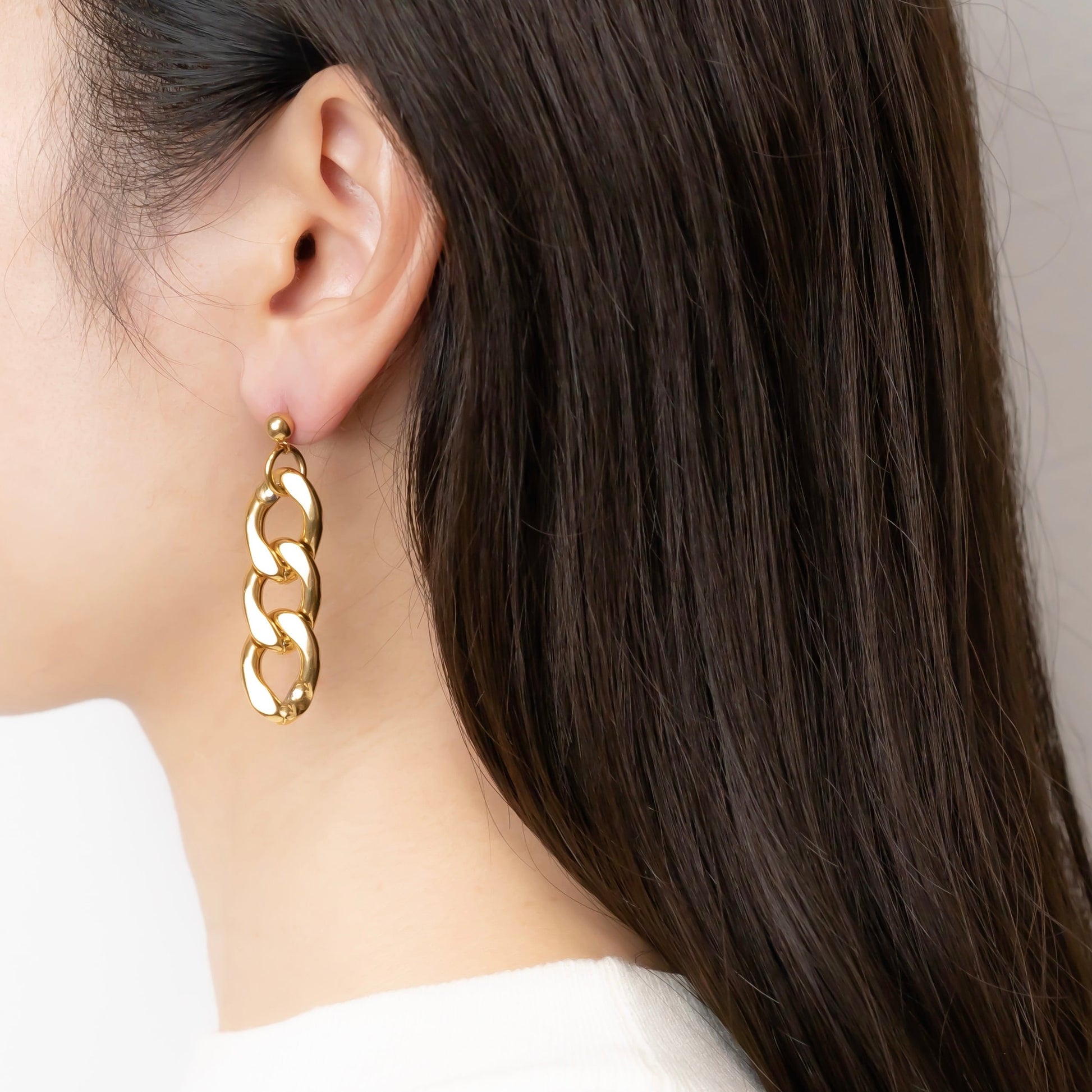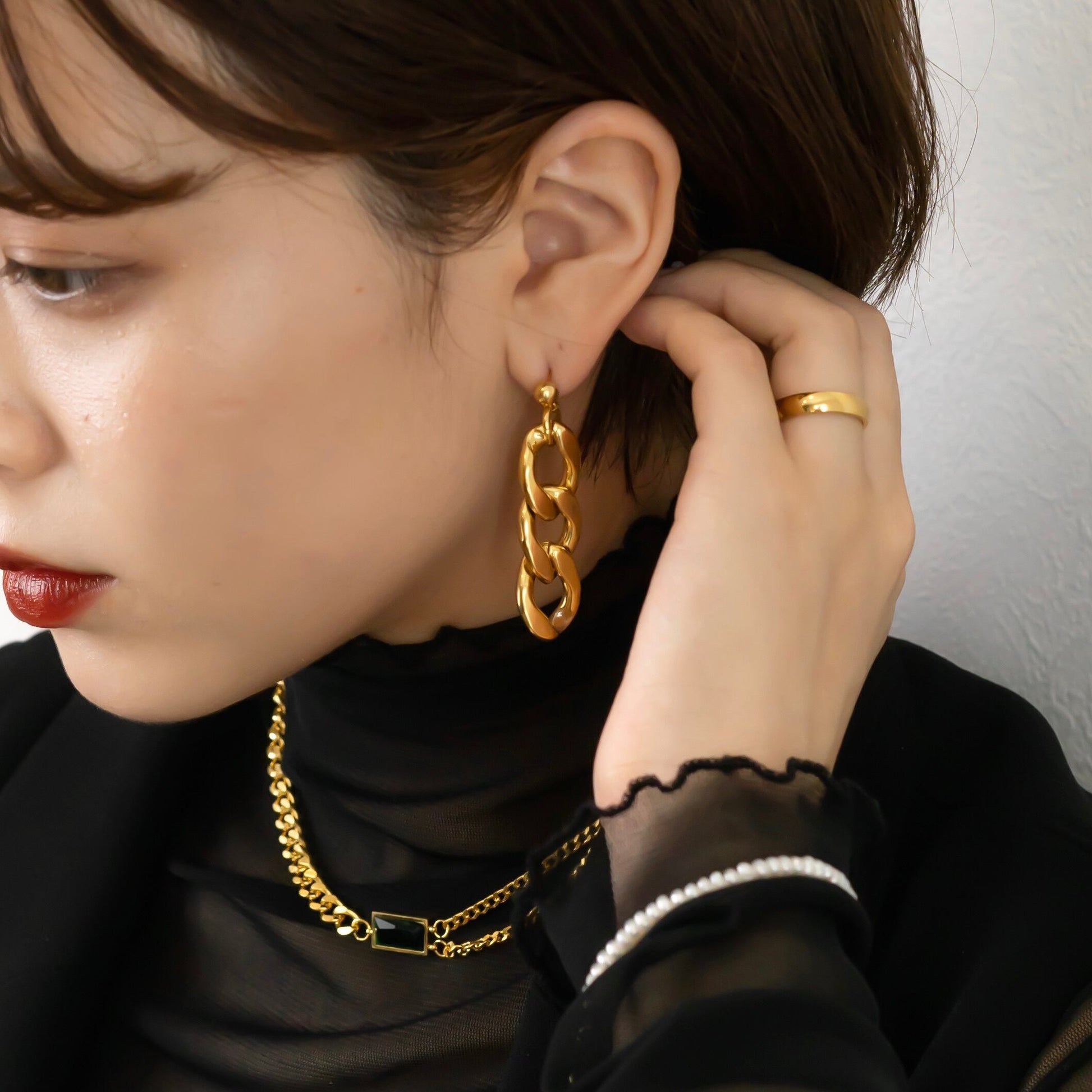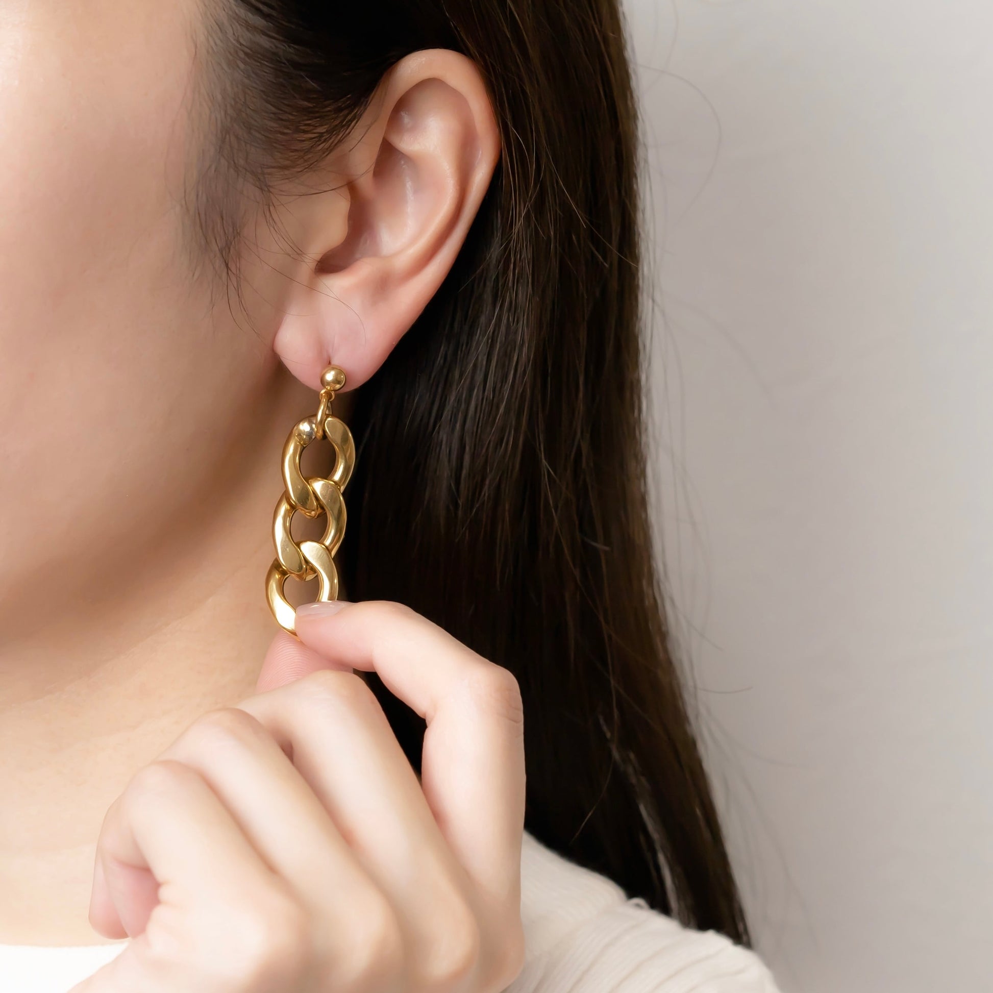 耳元で揺れるたびに、繊細な輝きを放つチェーンピアス。