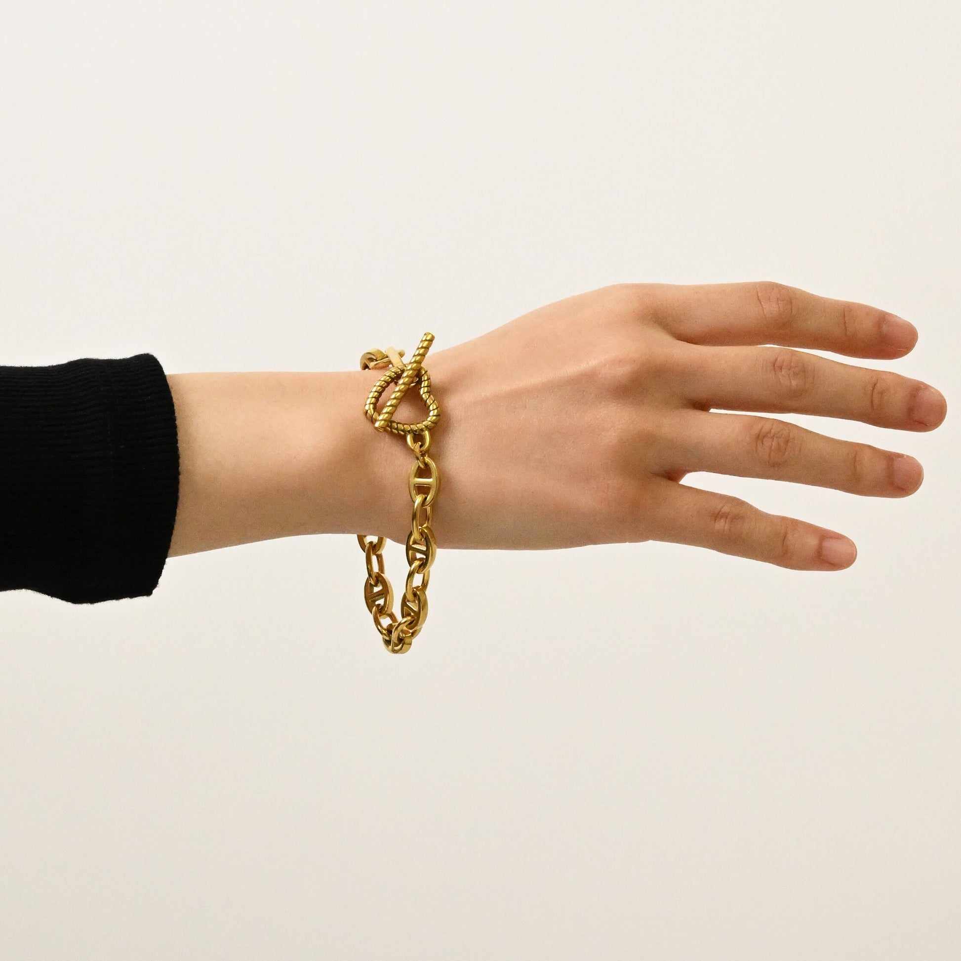 力強さと可愛らしさが融合したデザインが魅力のハートアンカーチェーンブレスレット。