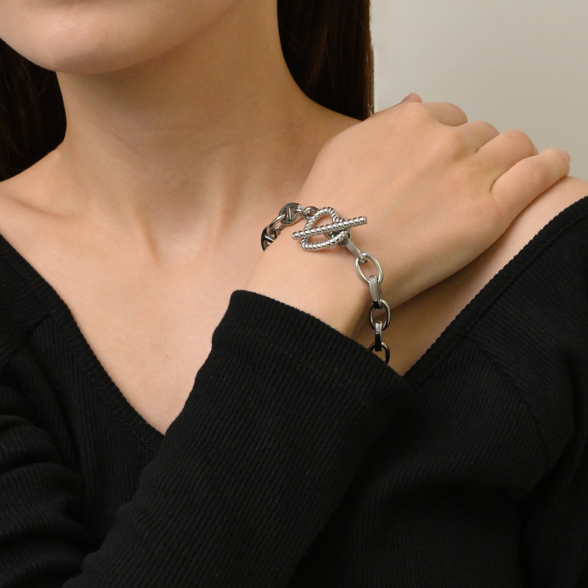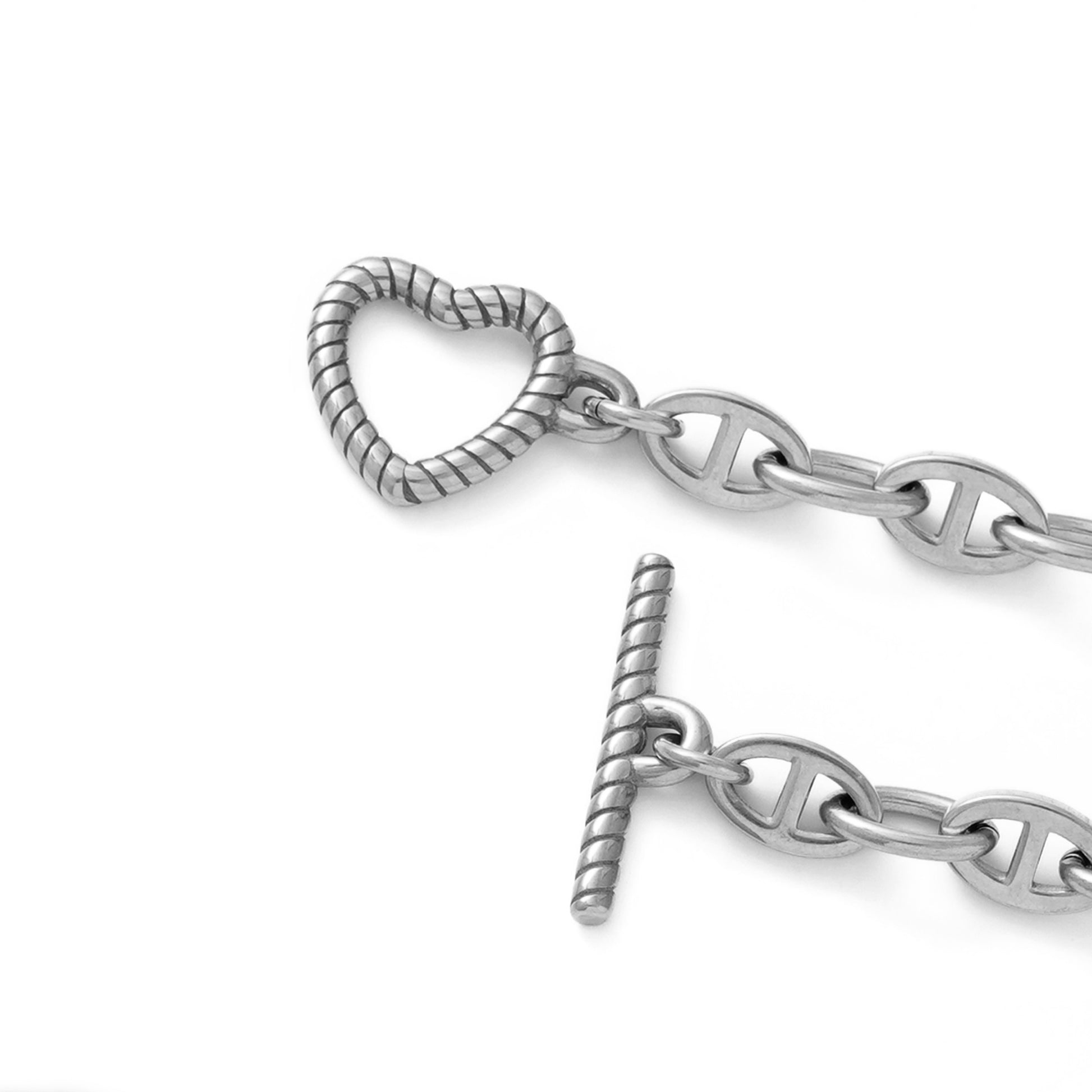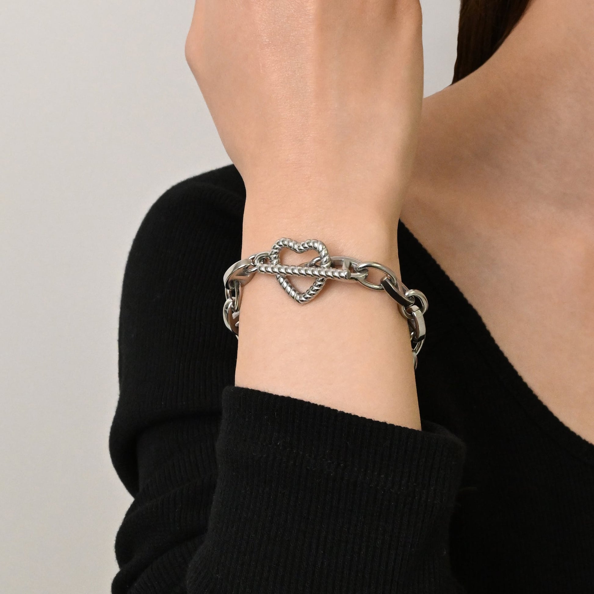 力強さと可愛らしさが融合したデザインが魅力のハートアンカーチェーンブレスレット。