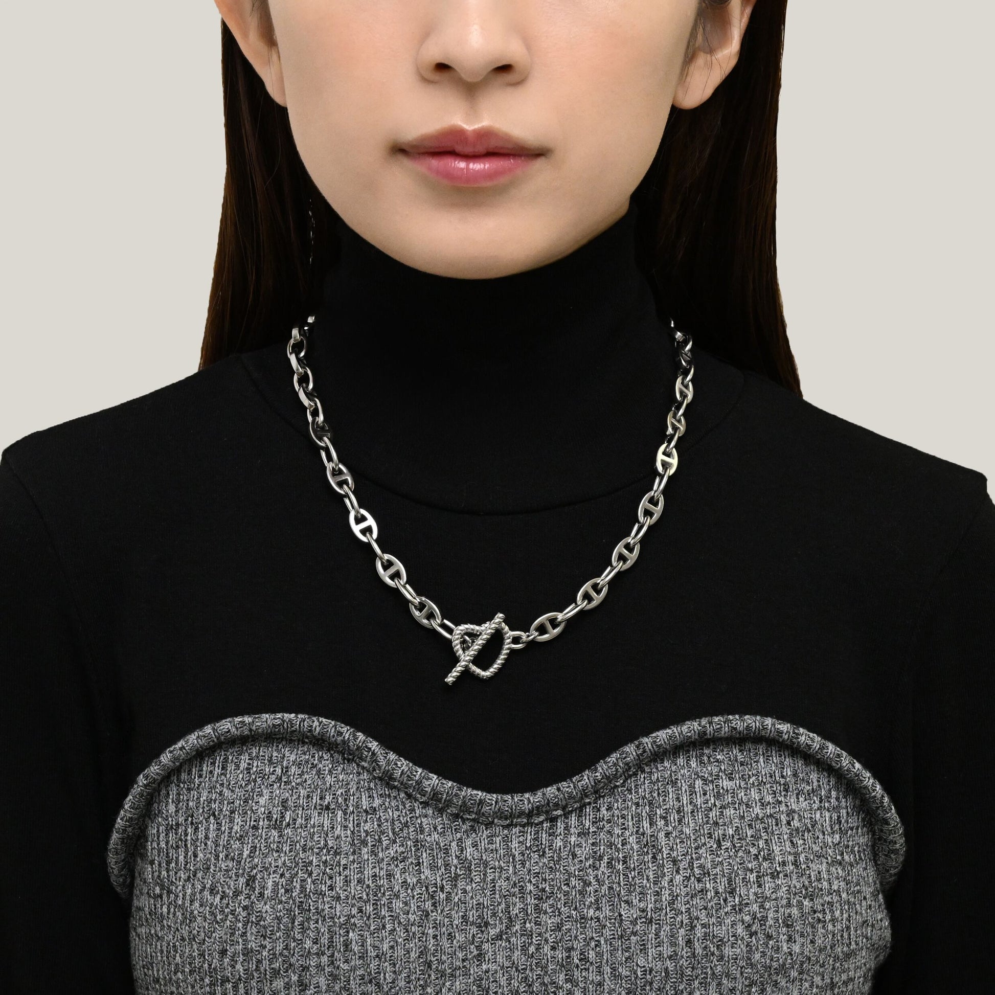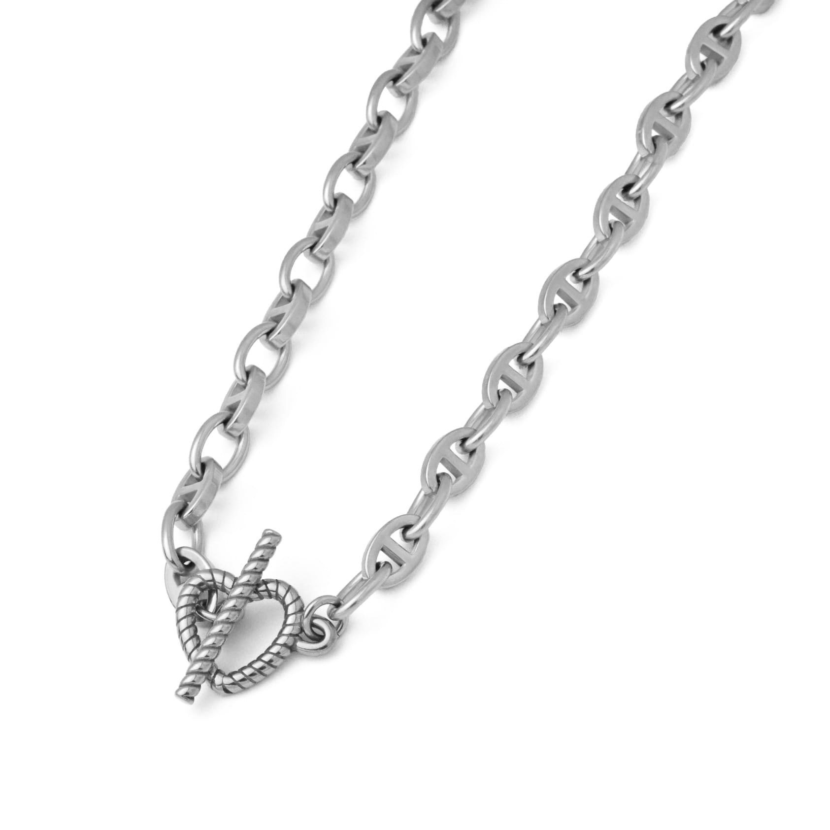 力強さと可愛らしさが融合したデザインが魅力のハートアンカーチェーンネックレス。