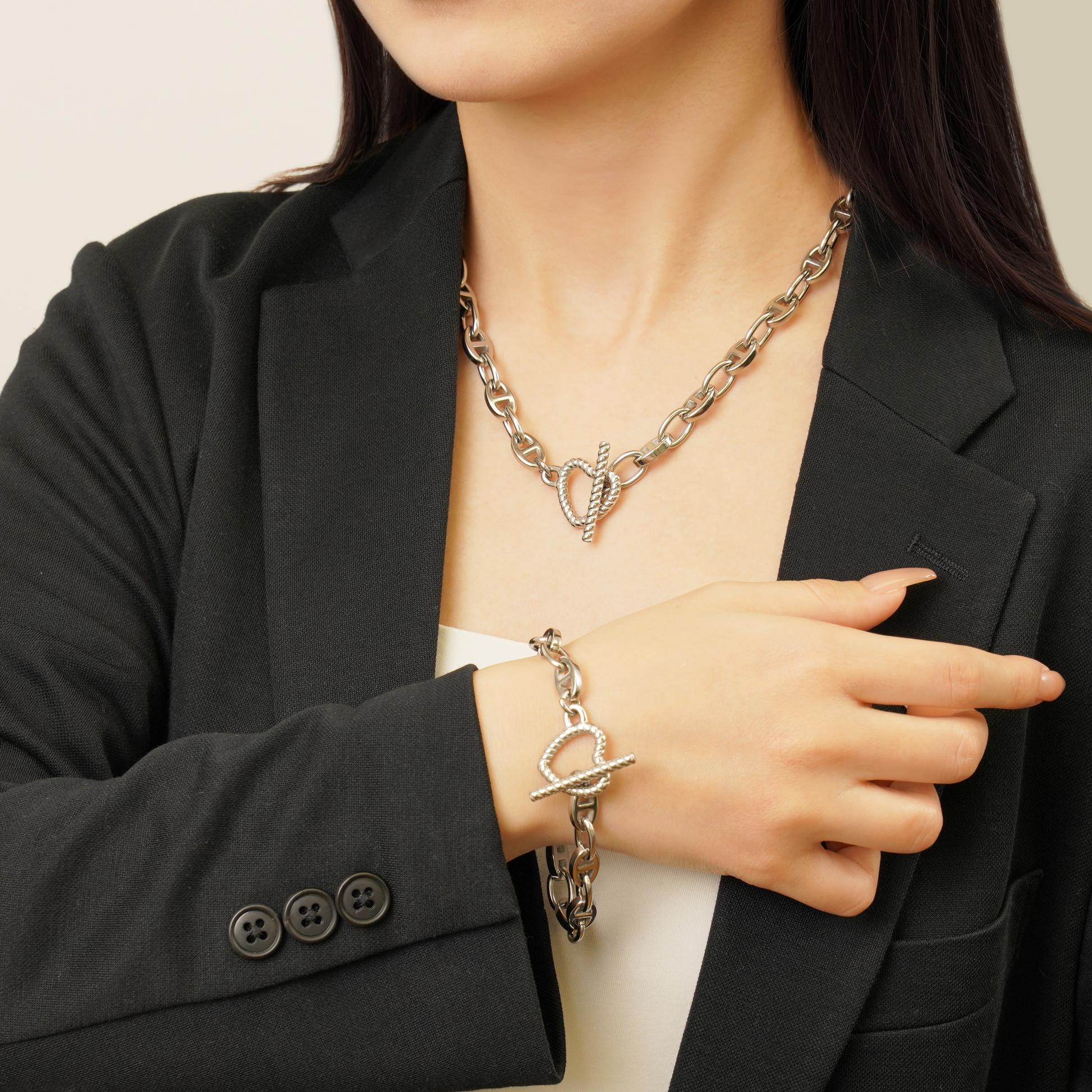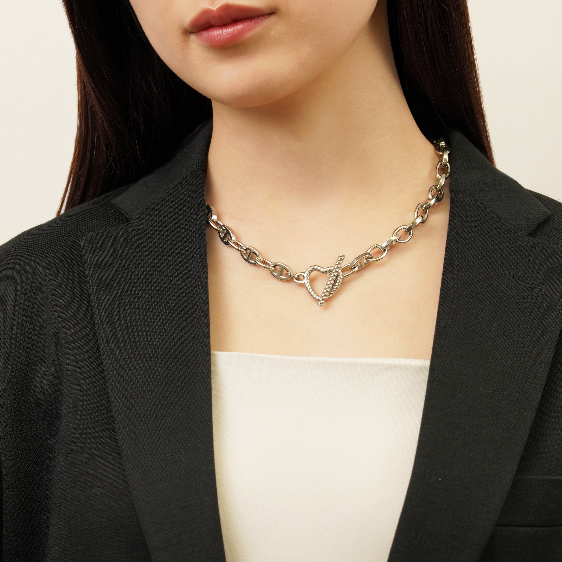 心をアンカーで繋げるような意味を込めたハートのチェーンが、装いに華やかさをプラスしてくれます。