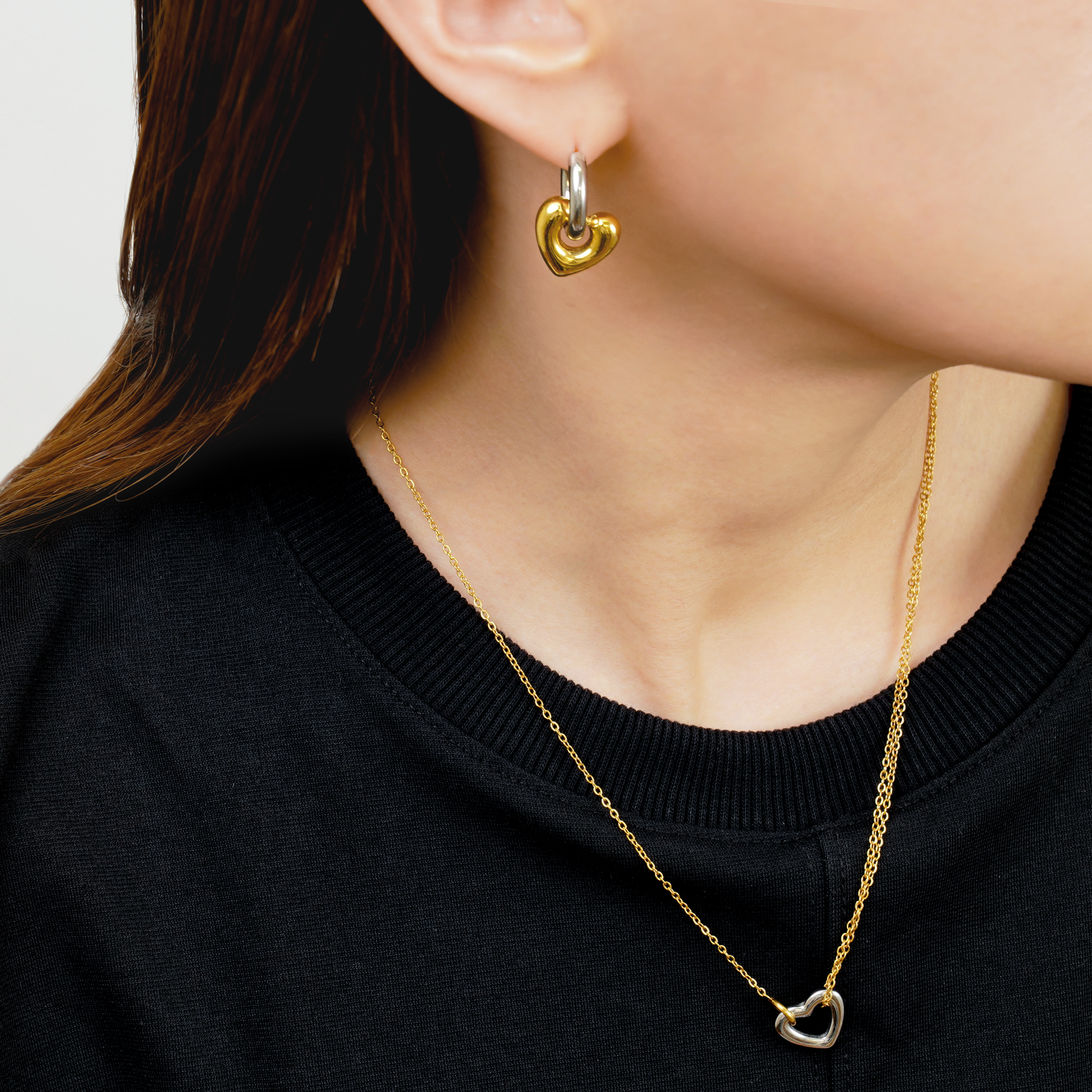 ハートのチャームは取り外し可能なので、シンプルなフープピアスとしても使える2wayピアスです。