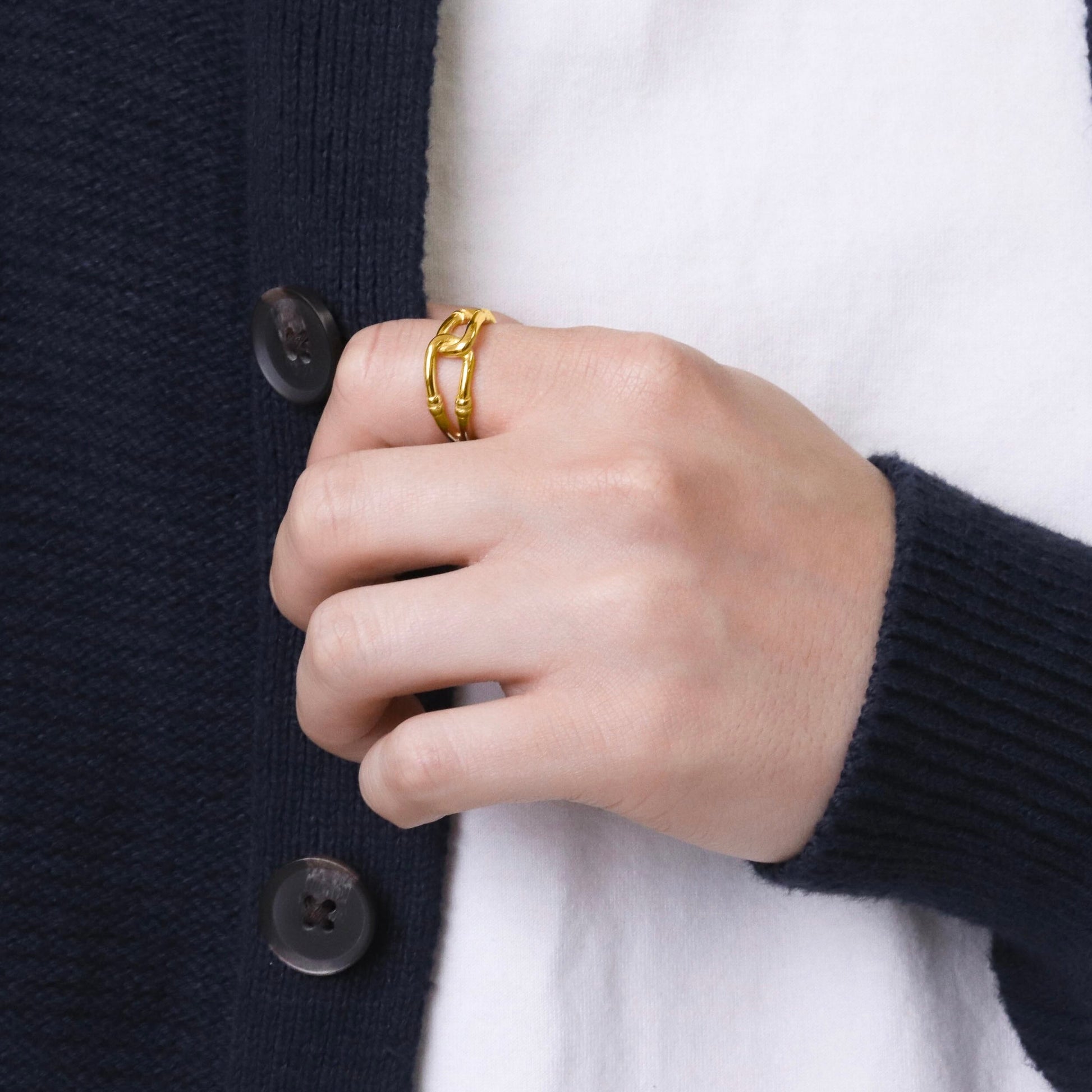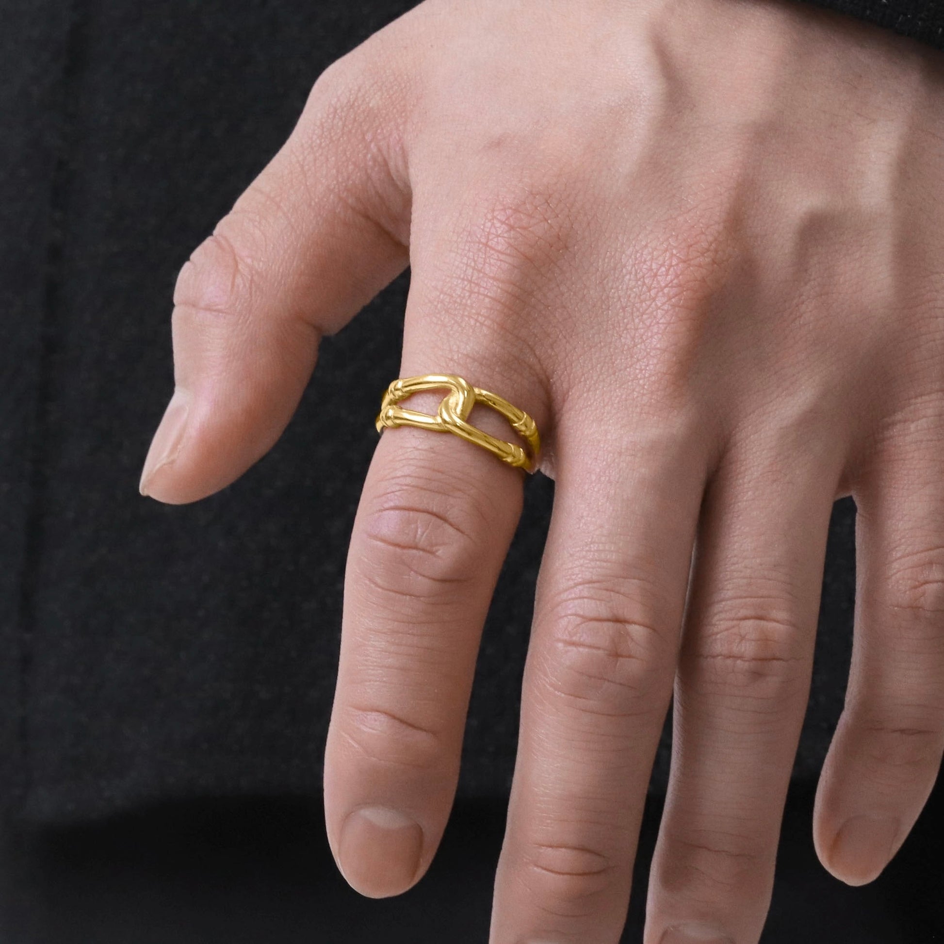 ホースシューのデザインを落とし込んだ特徴的なリングです。