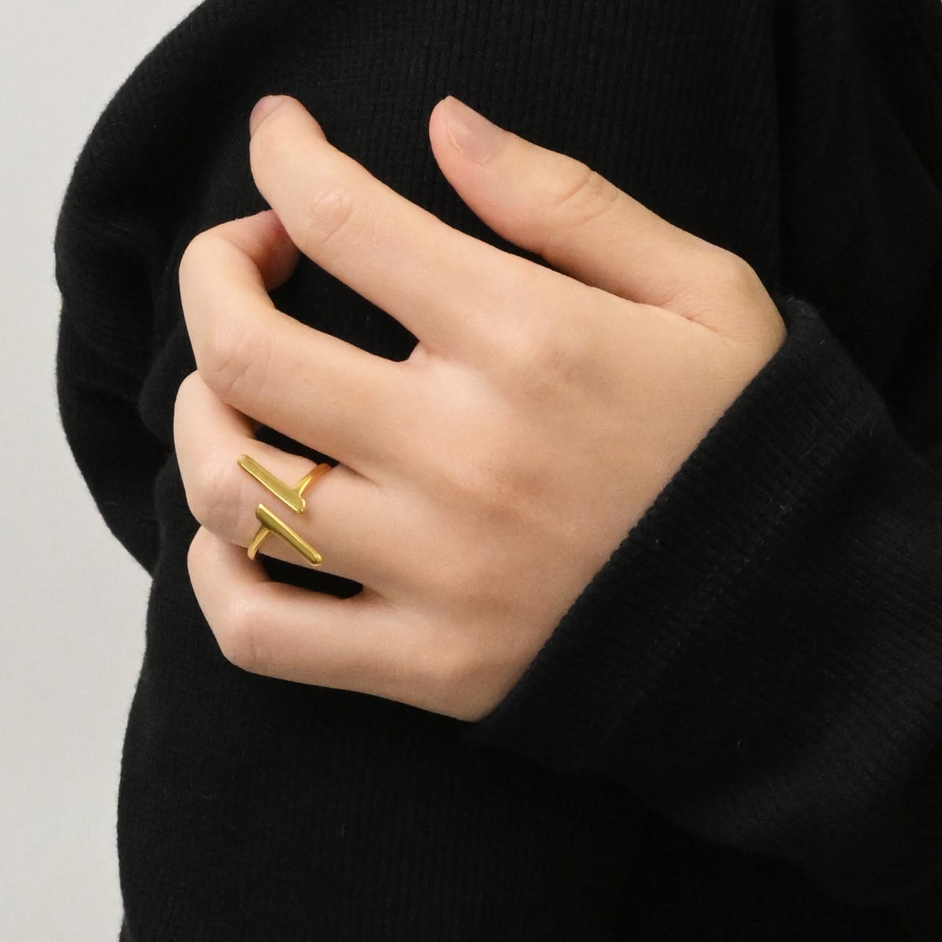 シンプルで洗練されたデザインのイニシャルリング。