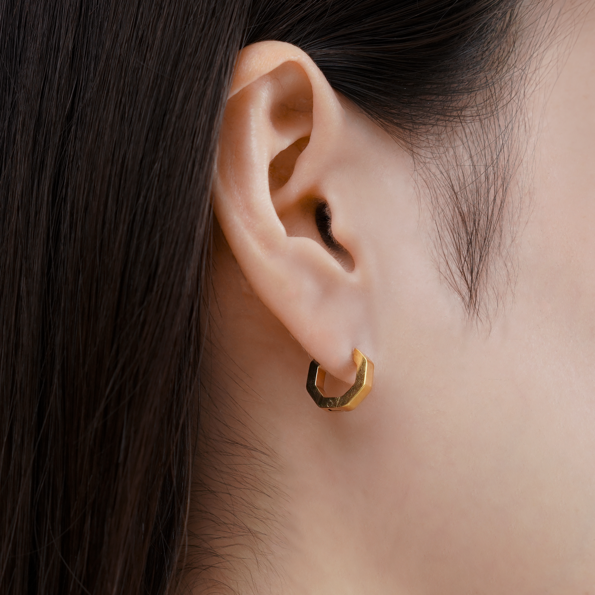 多面カットのデザインが、横顔をシャープな雰囲気に導きます。