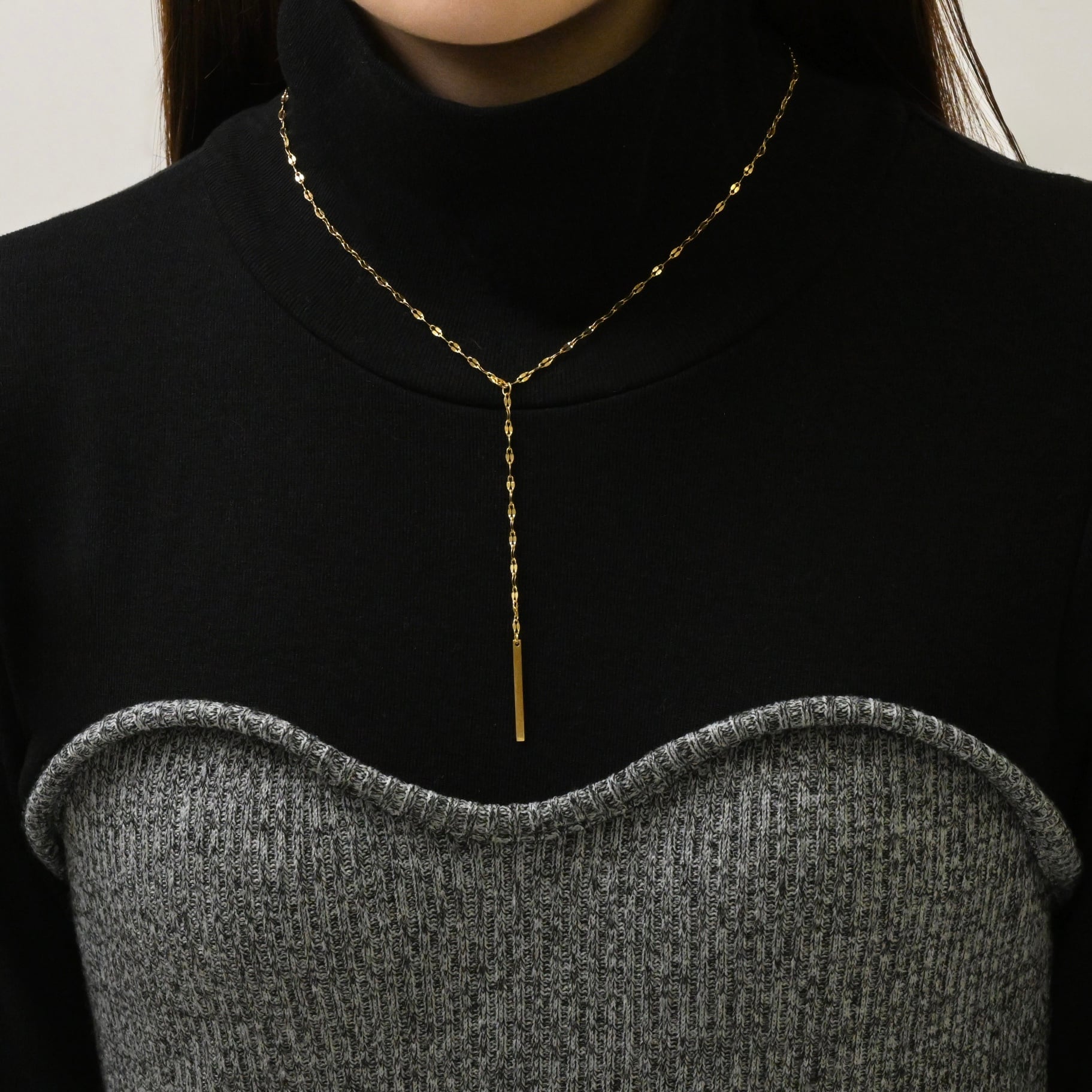 縦長のラインがスタイルアップ効果をもたらしてくれる、ペンタルロングチェーンネックレス。