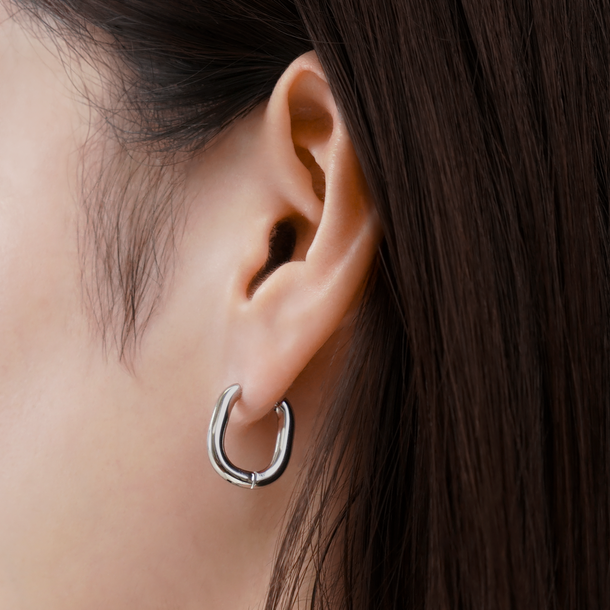 どんなコーディネートにも自然に馴染む、洗練されたフープピアス。