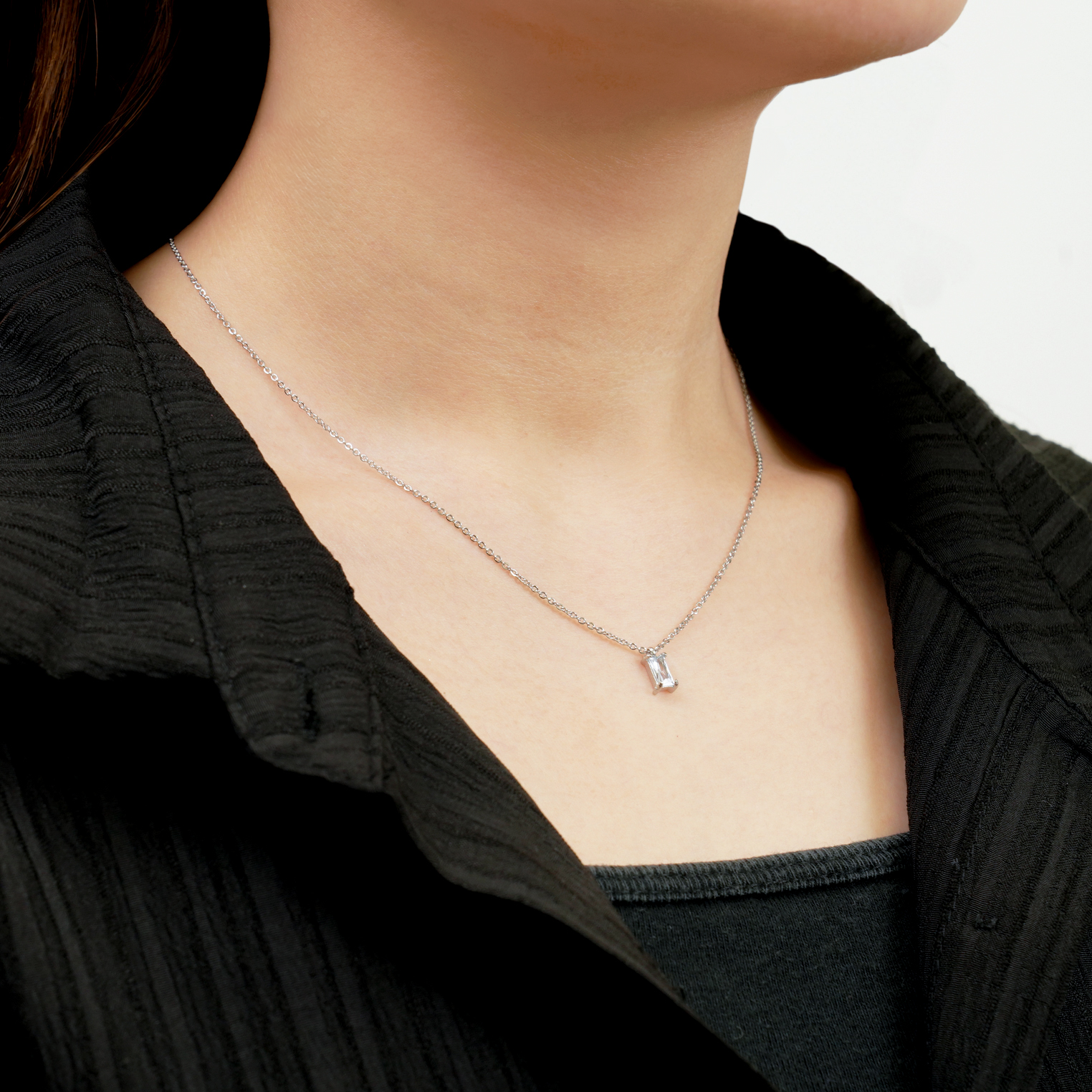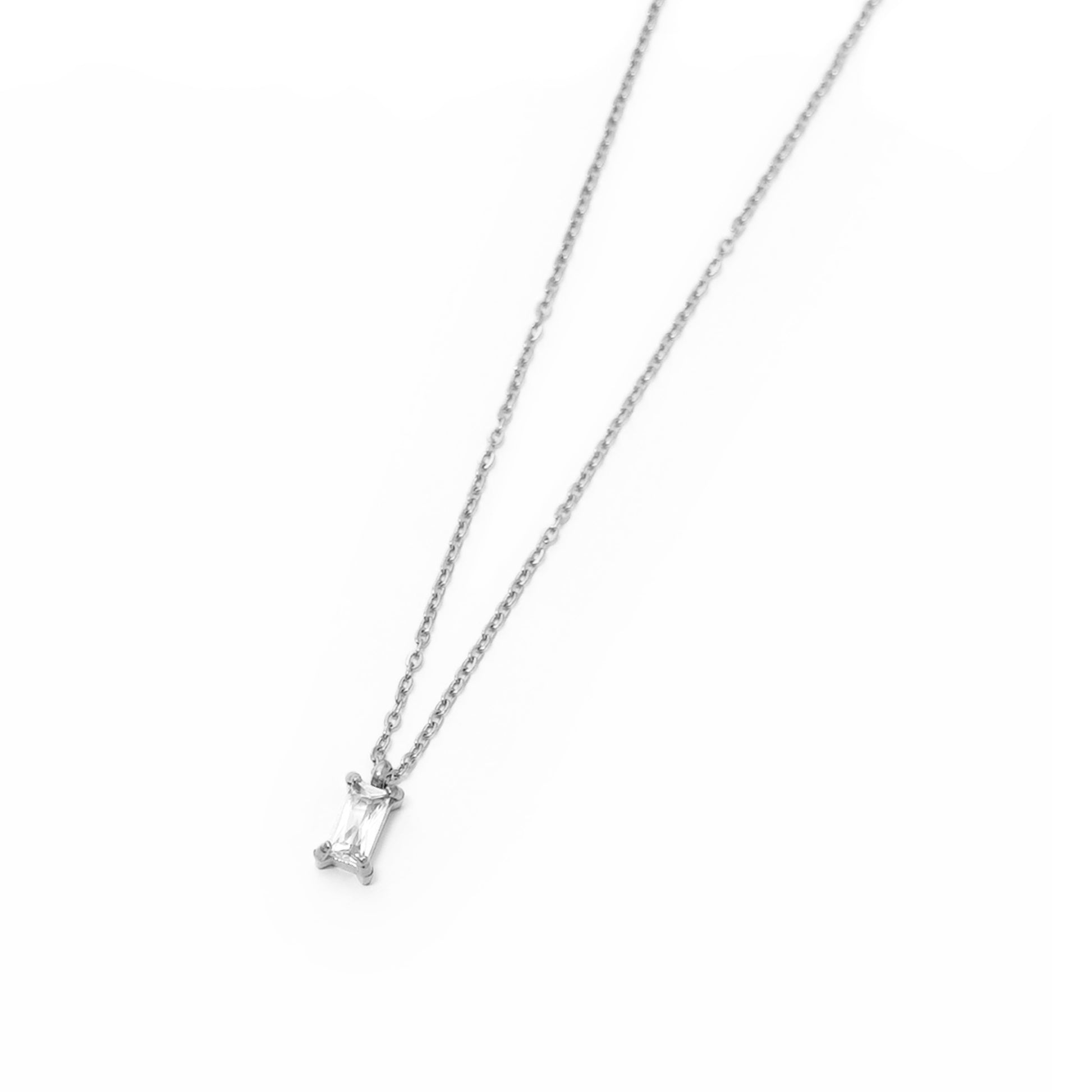 スクエアカットのジルコニアが胸元にすっきりとした印象を与えてくれるネックレス。