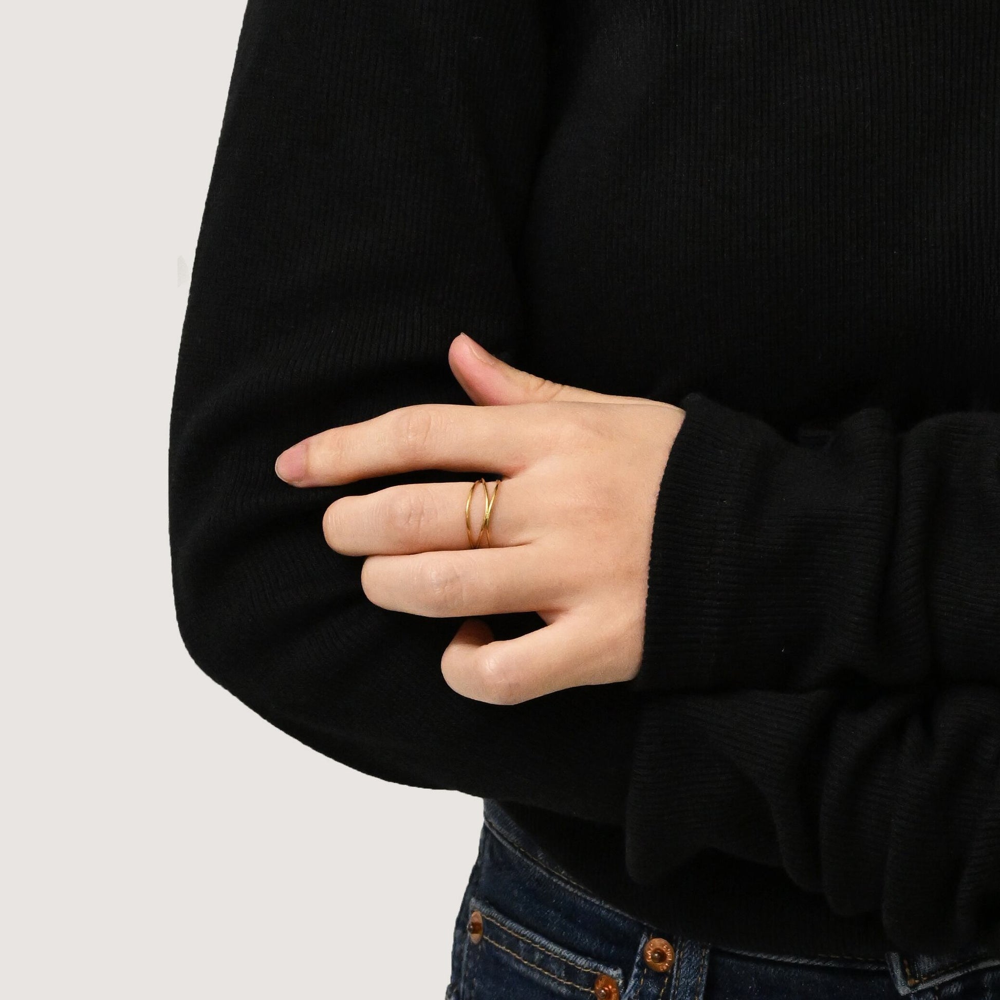 3本のラインが織りなす繊細なデザインが魅力的なリング。