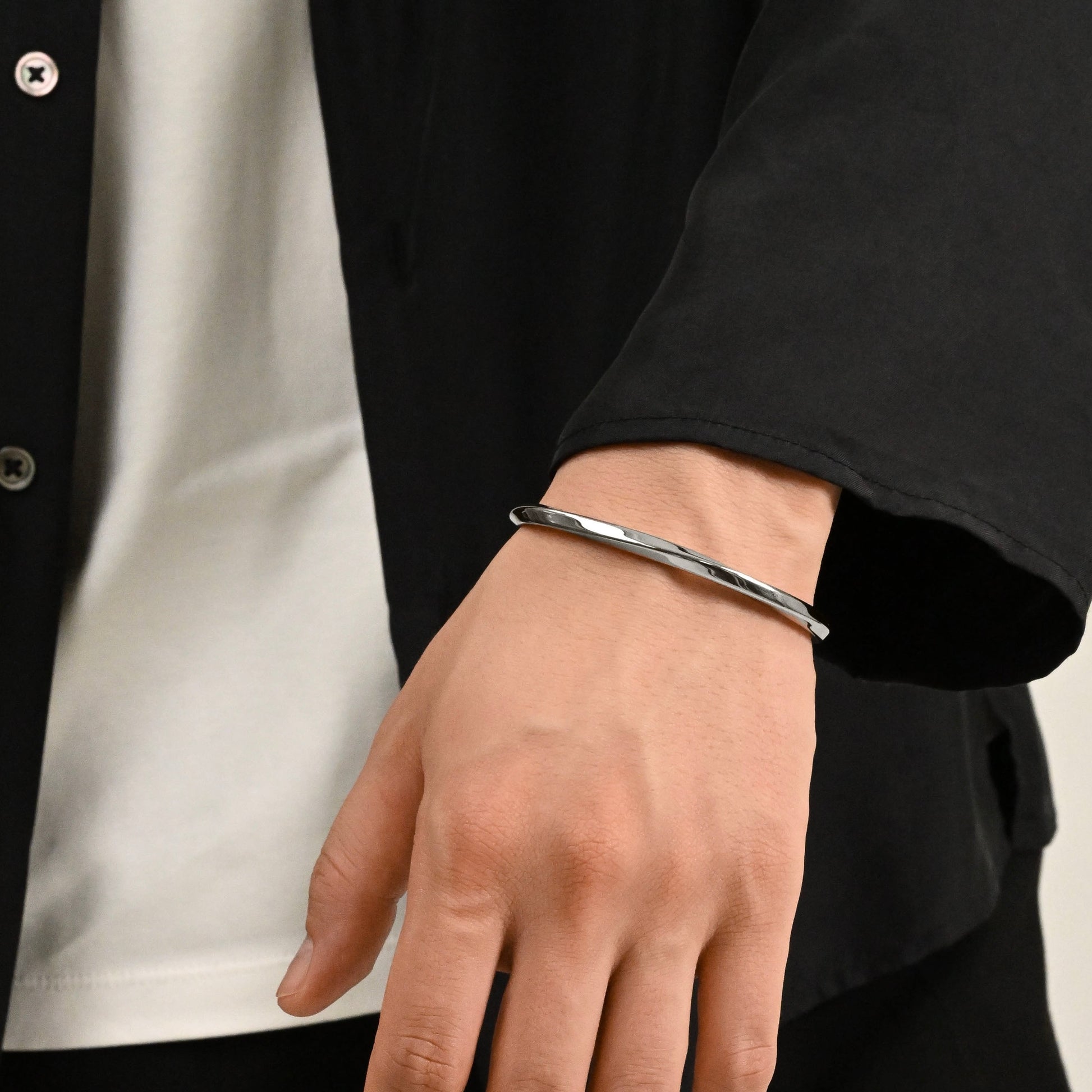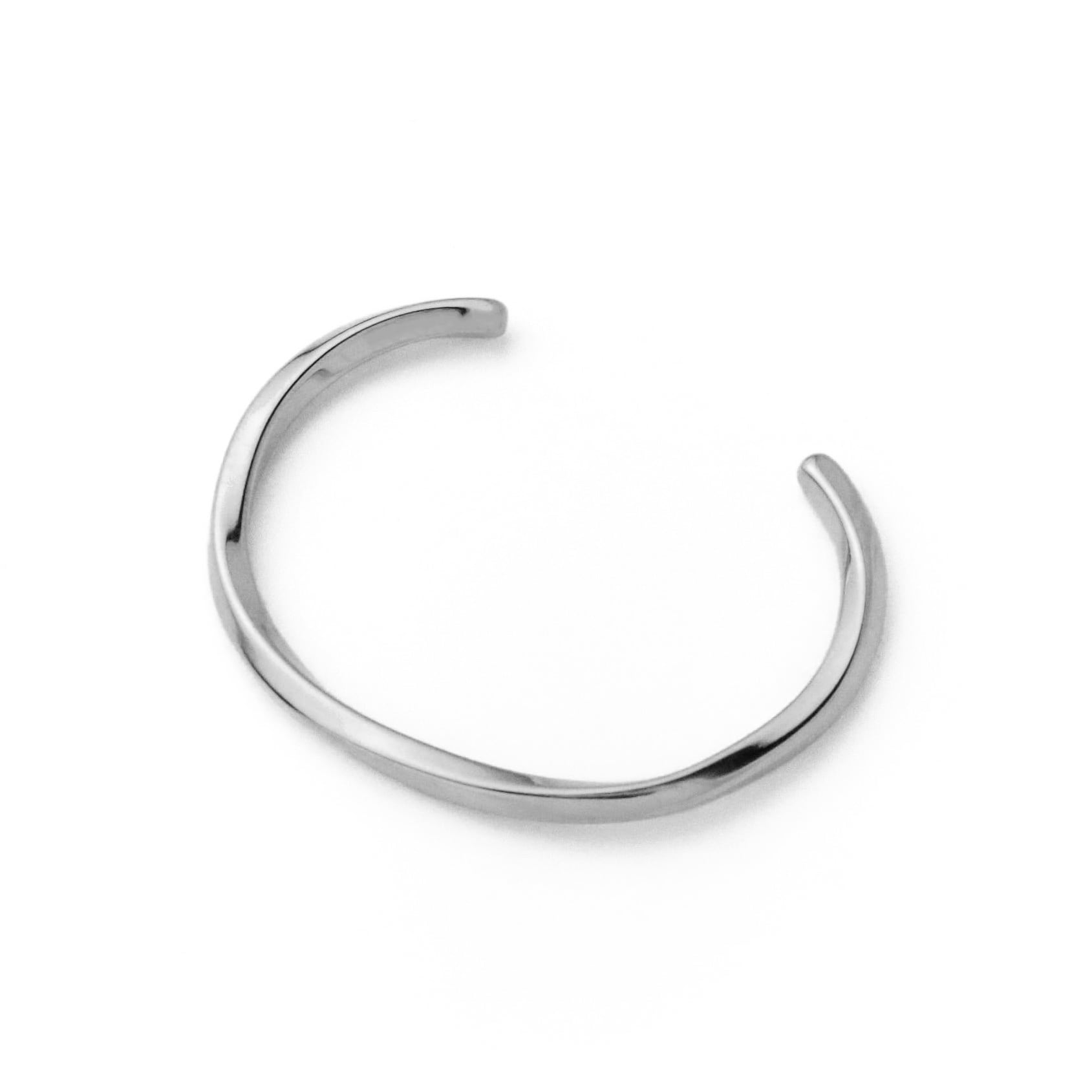 柔らかなツイストを施しねじれたメビウスの形にインスパイアされた、ミニマルで彫刻的なバングルです。手首周りをスッキリかつ上品に魅せてくれるデザイン。