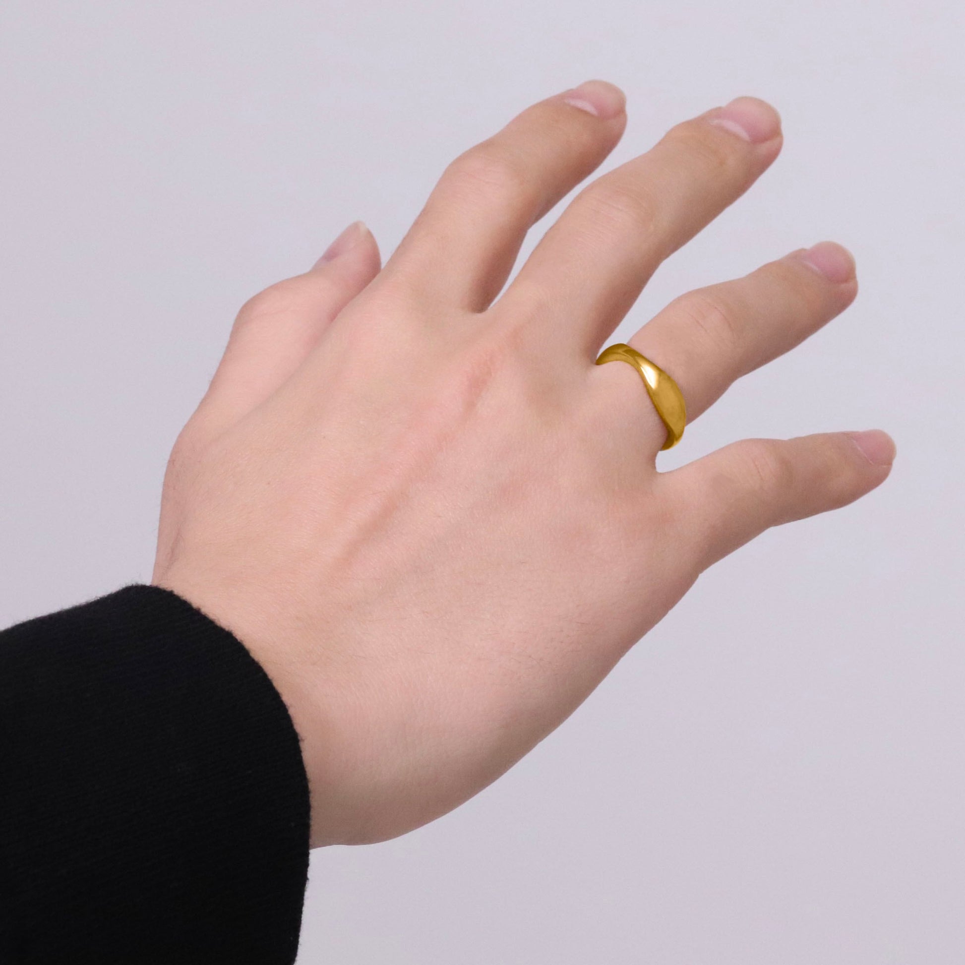 ツヤ感たっぷりのフォルムがアクセントのリング。鏡面と丸みのある滑らかな曲線が美しいデザイン。内側部分に柔らかいカーブで丸みを持たせる作りの「内甲丸仕上げ」を施しており、密着した指には角が立たないので、圧迫感が少なく、なめらかな着け心地です。