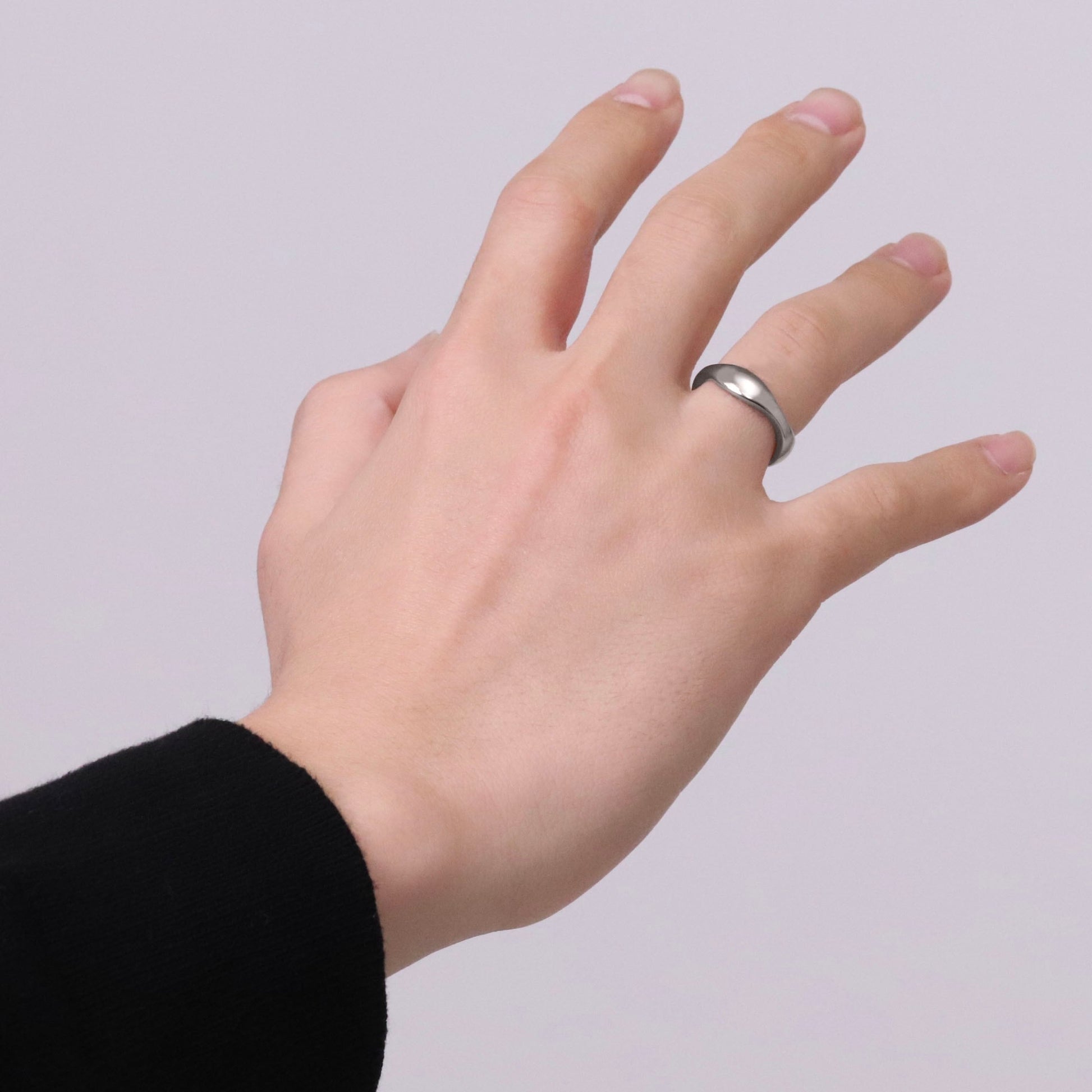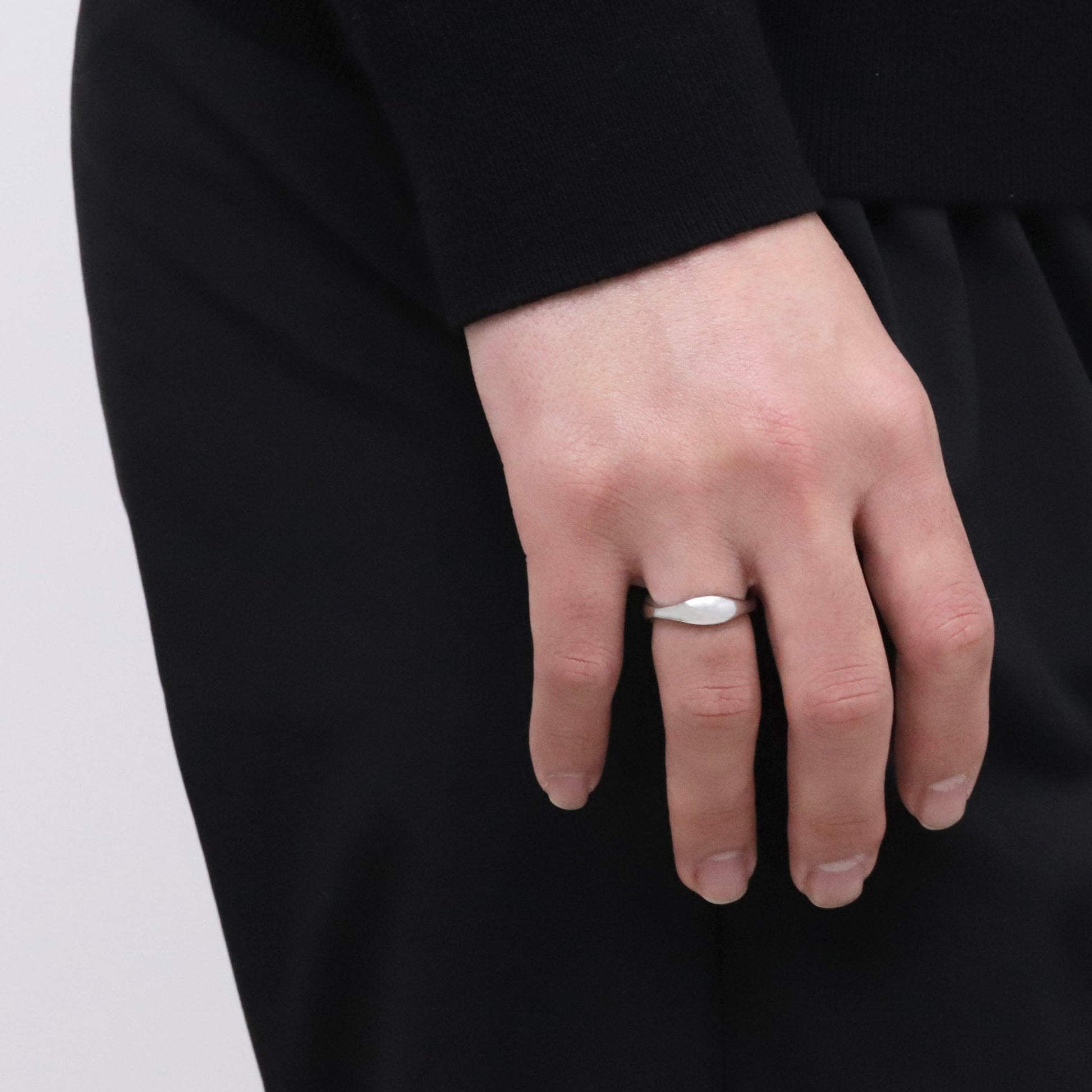 ツヤ感たっぷりのフォルムがアクセントのリング。鏡面と丸みのある滑らかな曲線が美しいデザイン。内側部分に柔らかいカーブで丸みを持たせる作りの「内甲丸仕上げ」を施しており、密着した指には角が立たないので、圧迫感が少なく、なめらかな着け心地です。