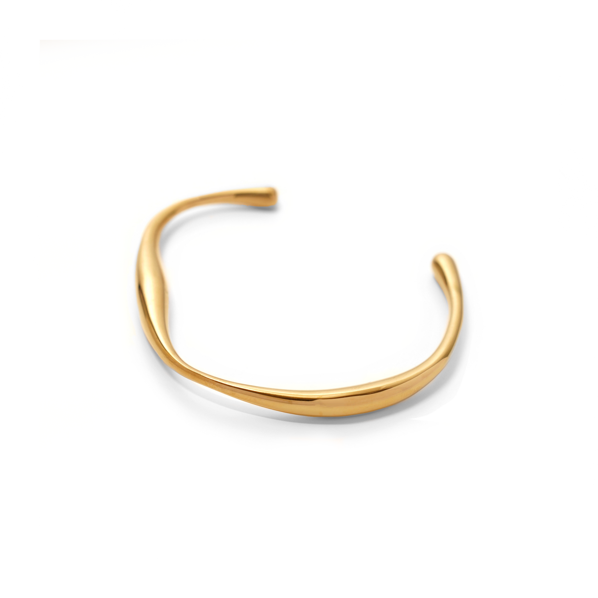 柔らかなウェーブラインが手元に上品なアクセントを加え、シンプルながらも存在感のあるバングル。