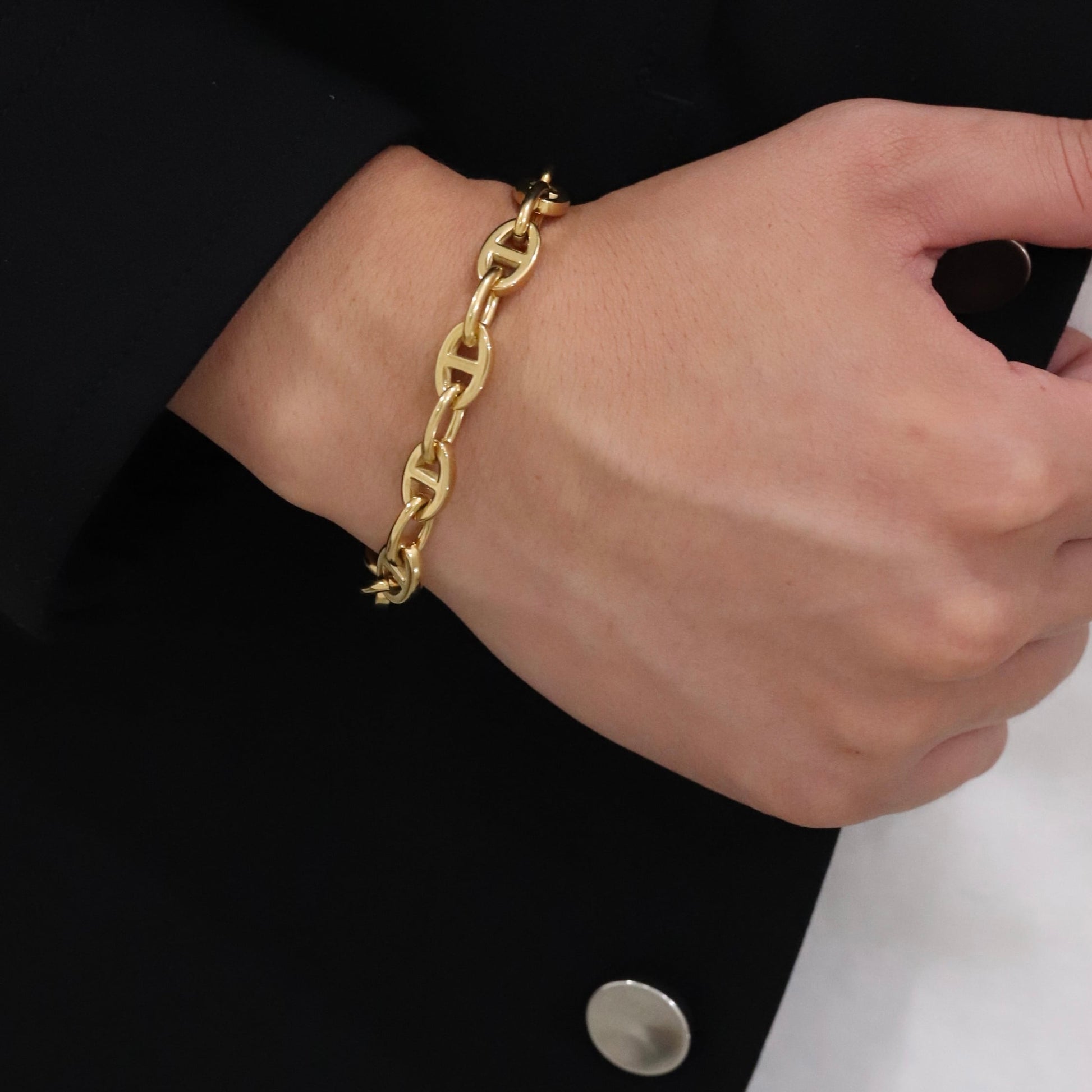 丁寧に研磨されたチェーンはツヤ感たっぷりで腕回りが高見えします。