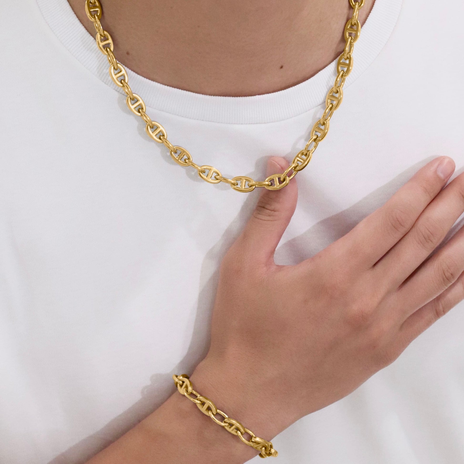 クロスジュエリアのチェーンコレクションはクラシックでモダンなユニセックス・スタイルです。単体でも、また他のブレスレットやコレクションと組み合わせてもお使いいただけます。