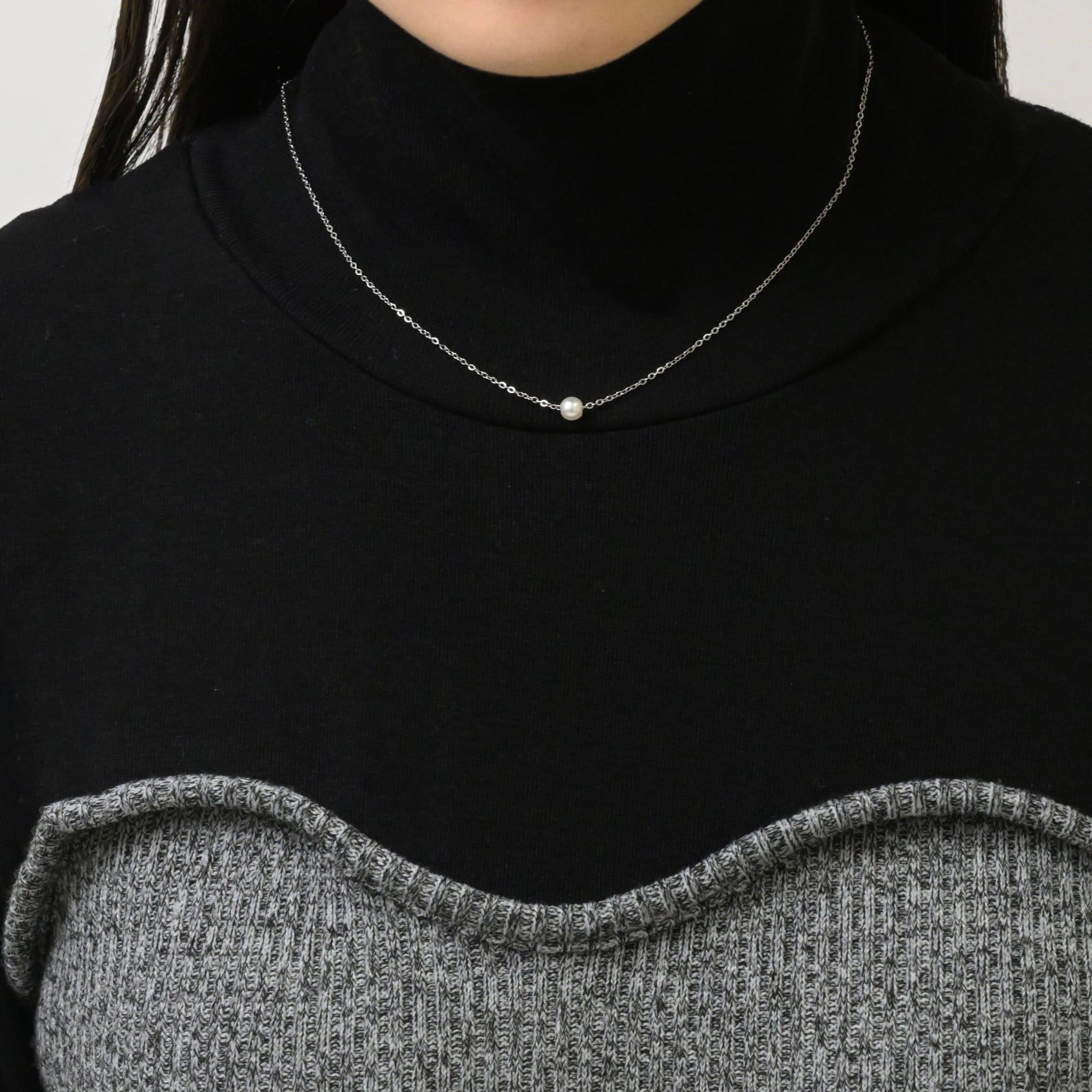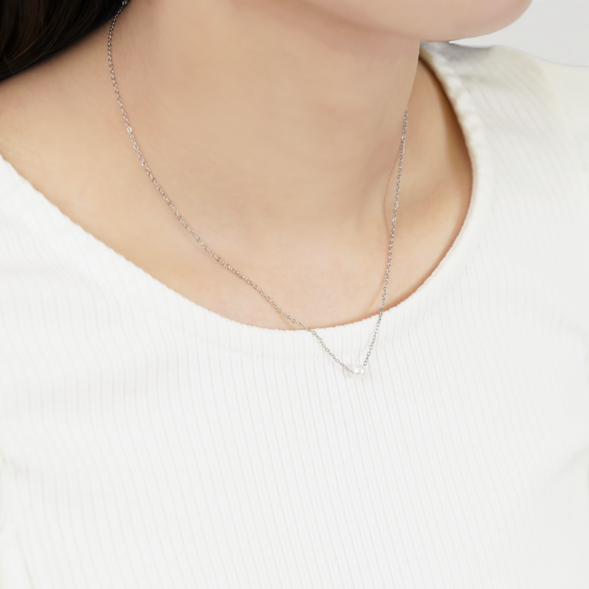 一粒のパールが首元で上品に輝くシングルパールネックレス。