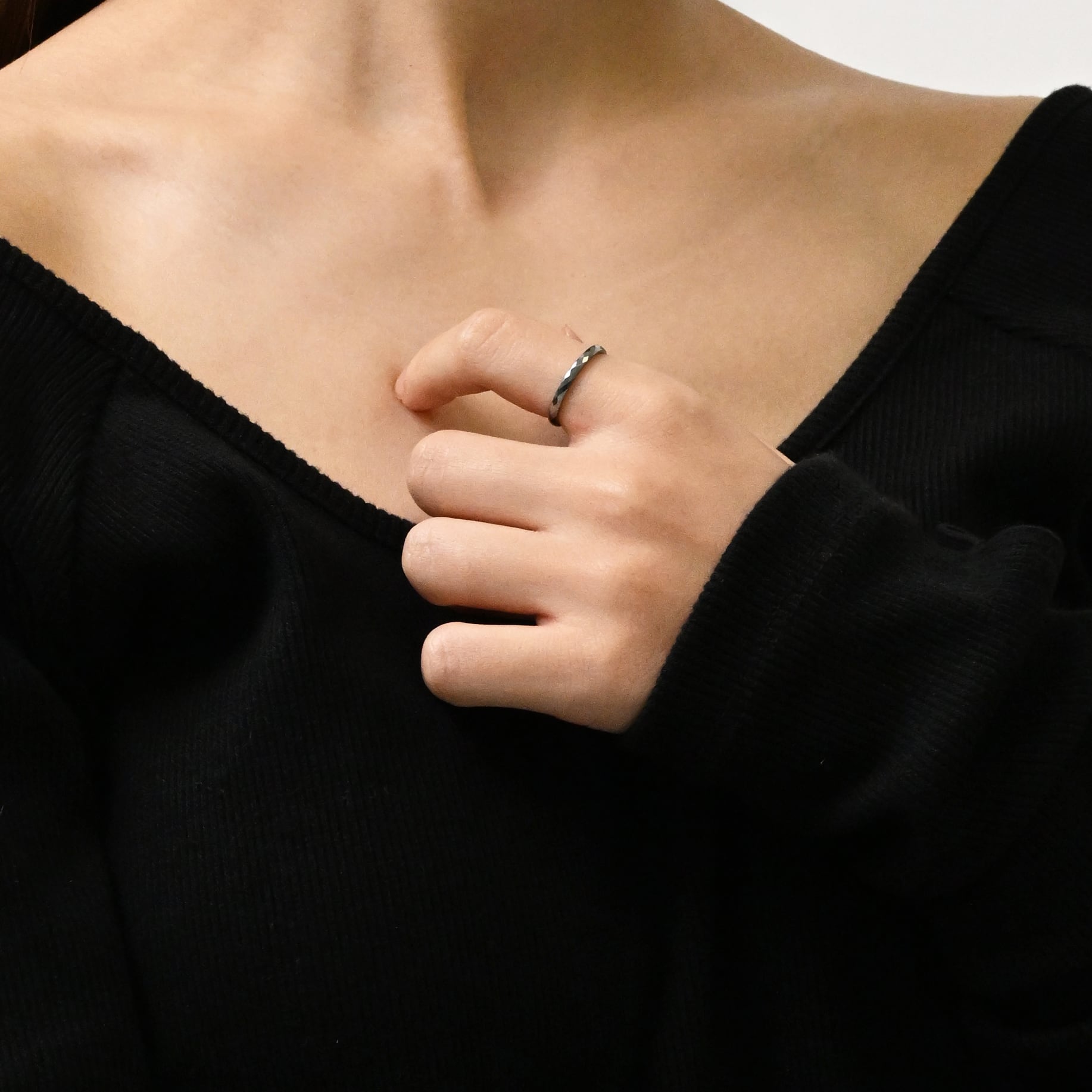 華奢ながらも存在感があり、単体使いはもちろん、他のリングとの重ね付けにもぴったりです。