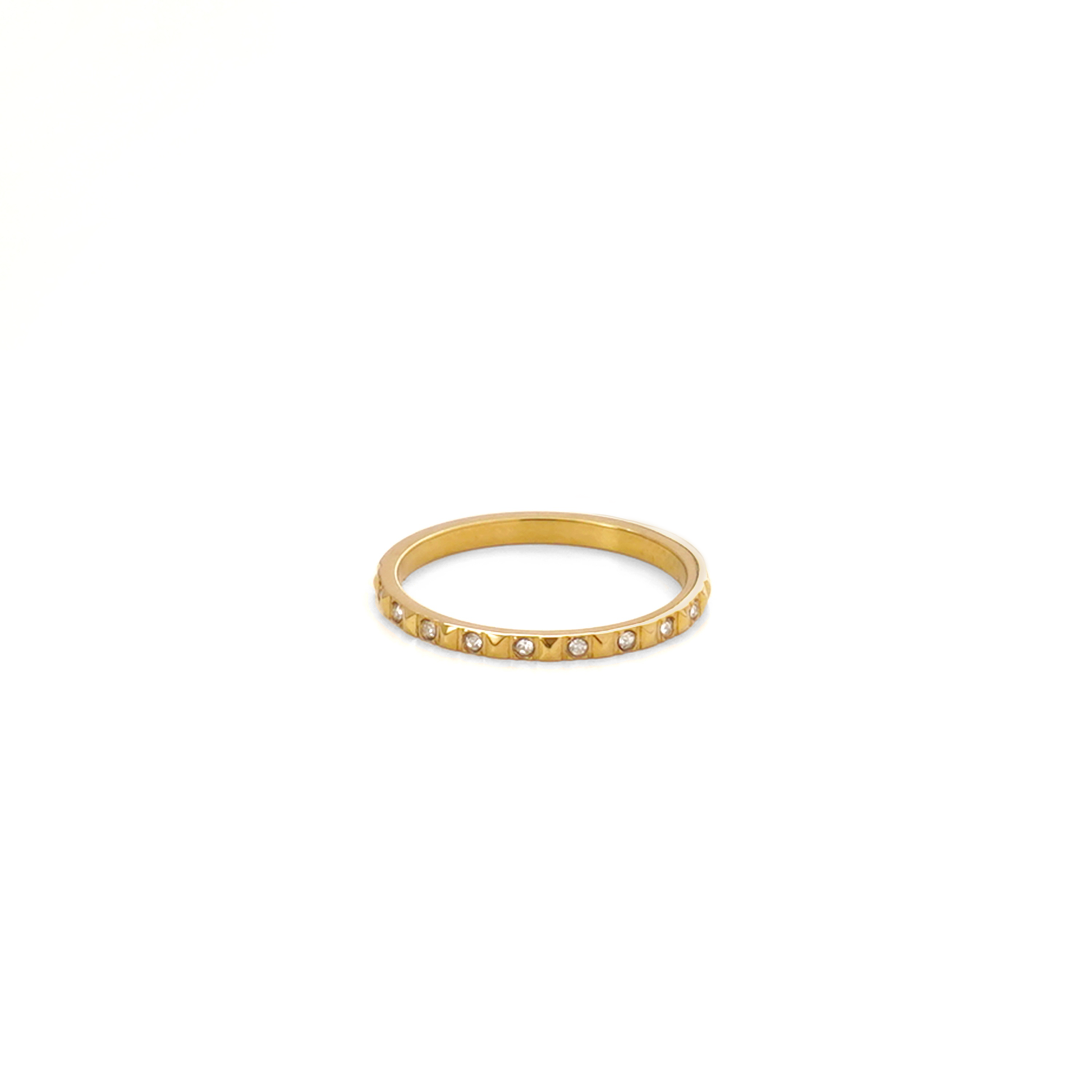 サイドにそっとあしらわれたジルコニアがさりげなく輝くリング。