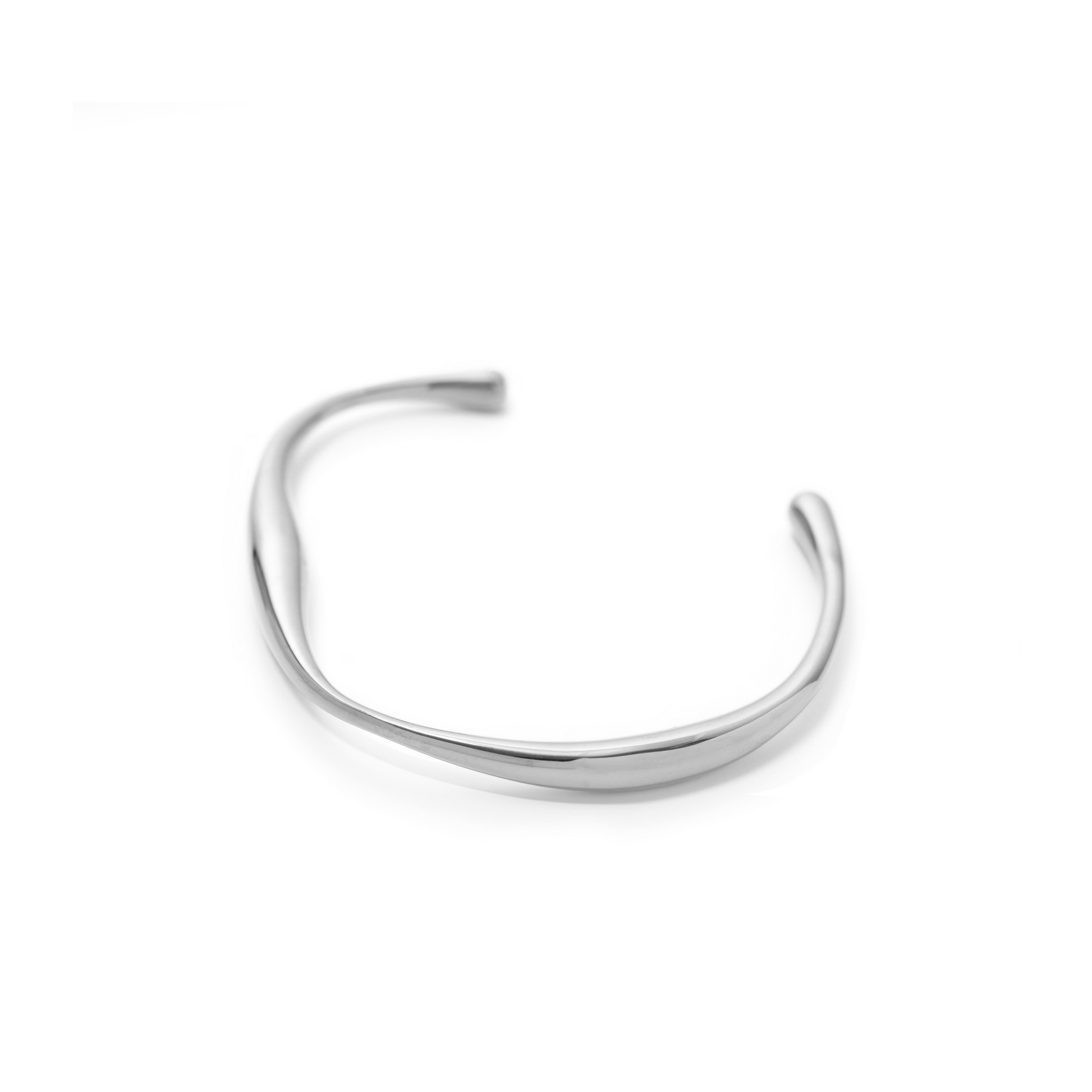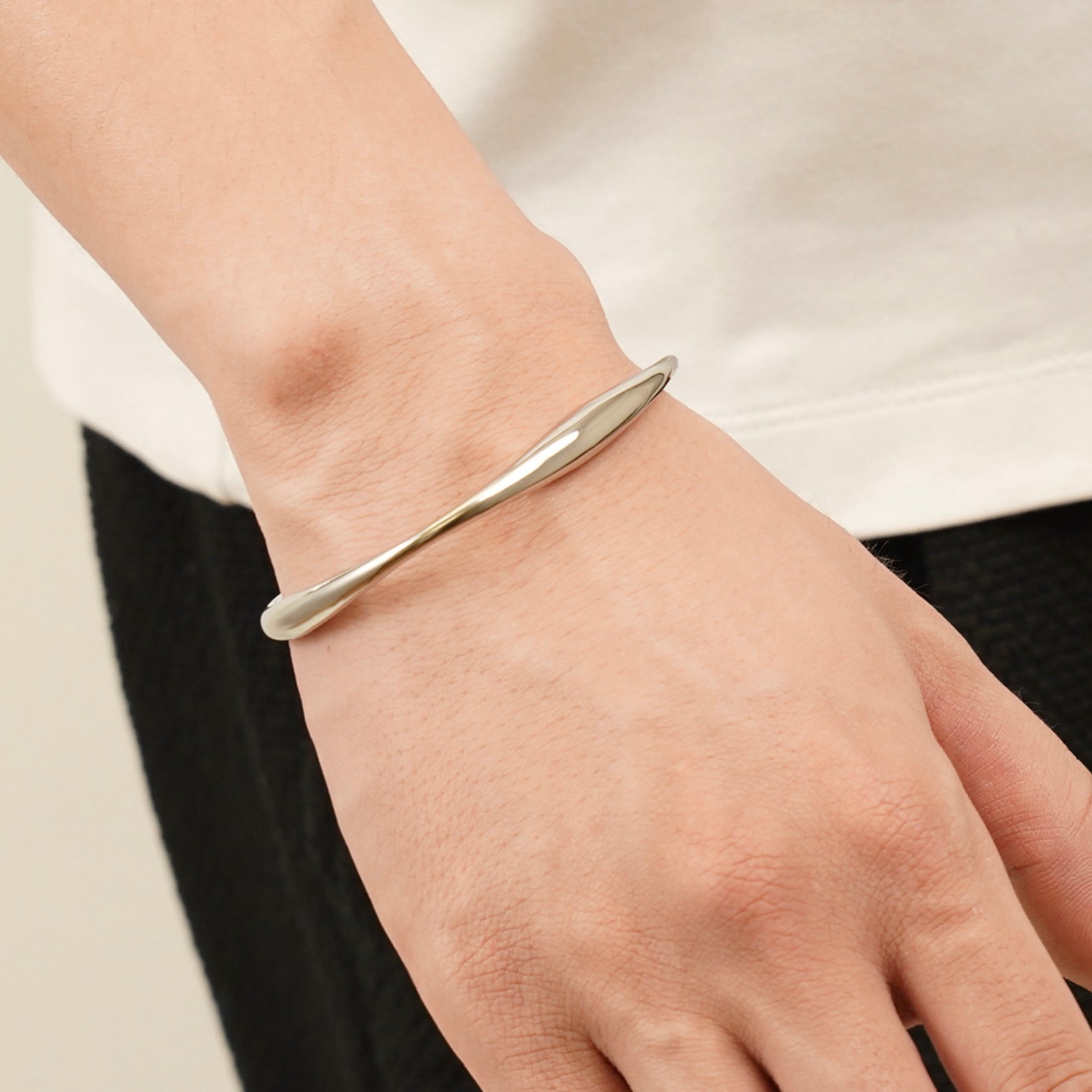 柔らかなウェーブラインが手元に上品なアクセントを加え、シンプルながらも存在感のあるバングル。